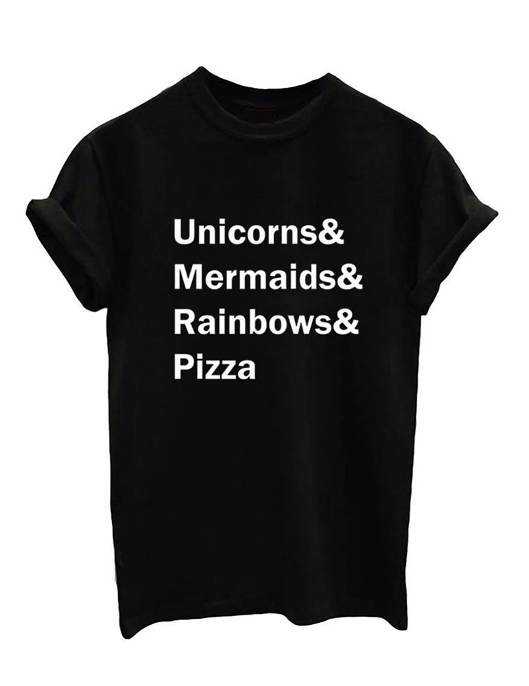 Letters Printed Solid Color Short Sleeve T-shirts