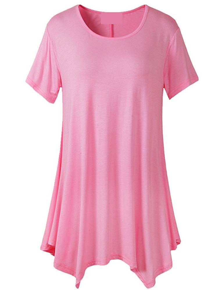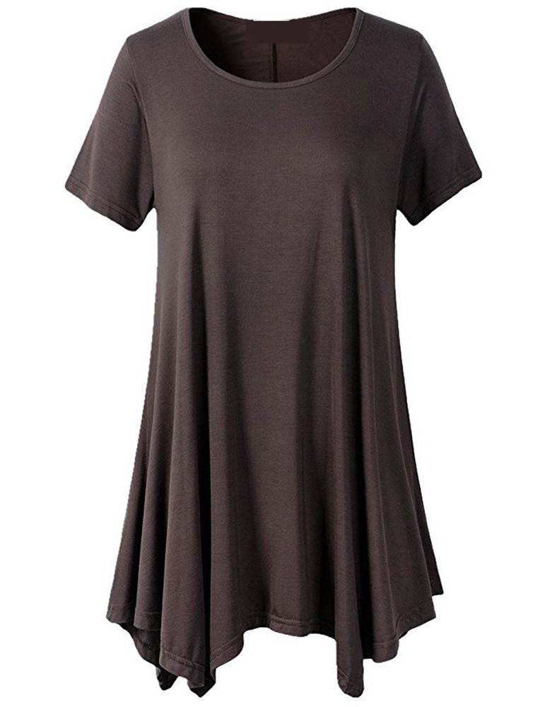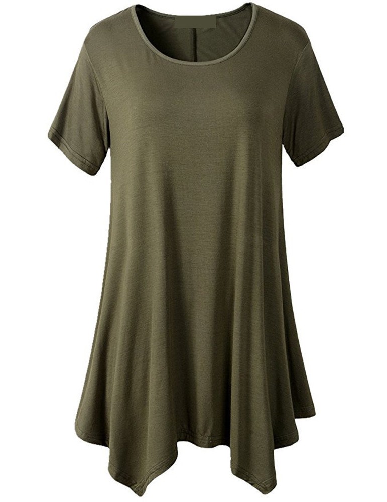 Casual Women Short Sleeve Irregular Hem Pure Color T-shirts