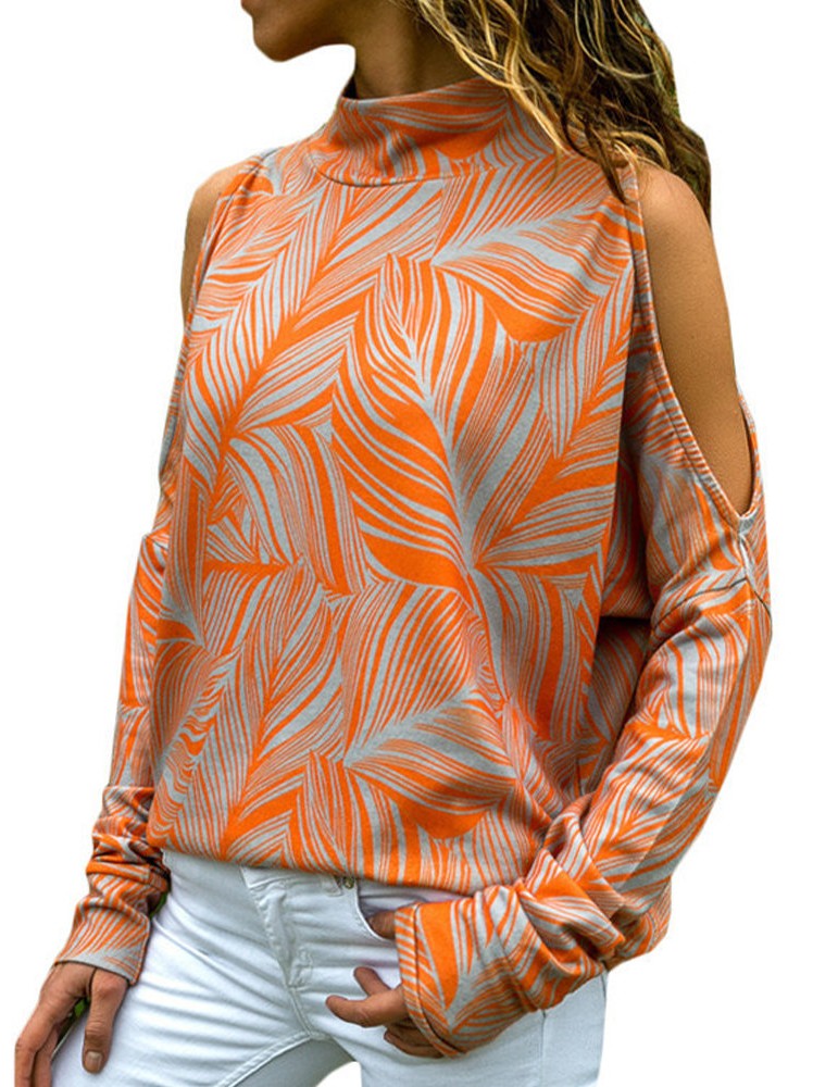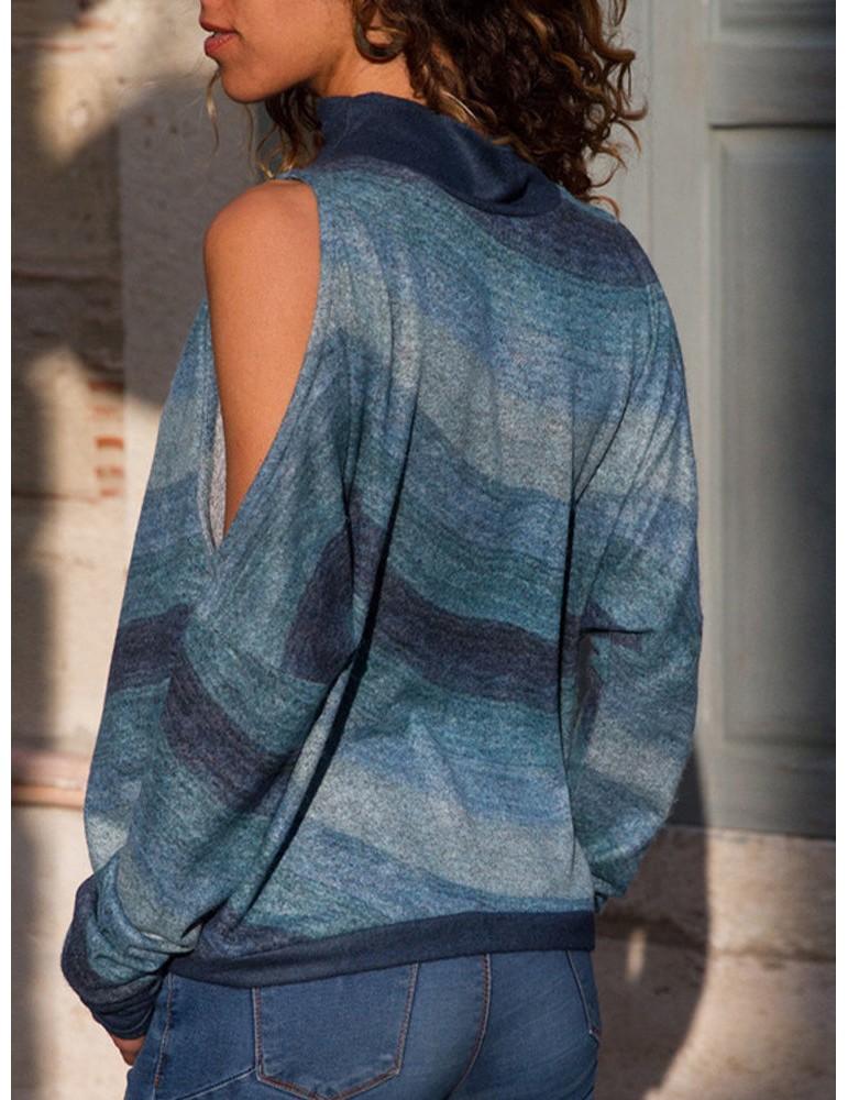 Cold Shoulder Stripe Turtleneck Long Sleeve Blouse For Women