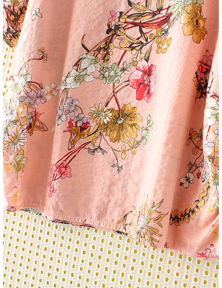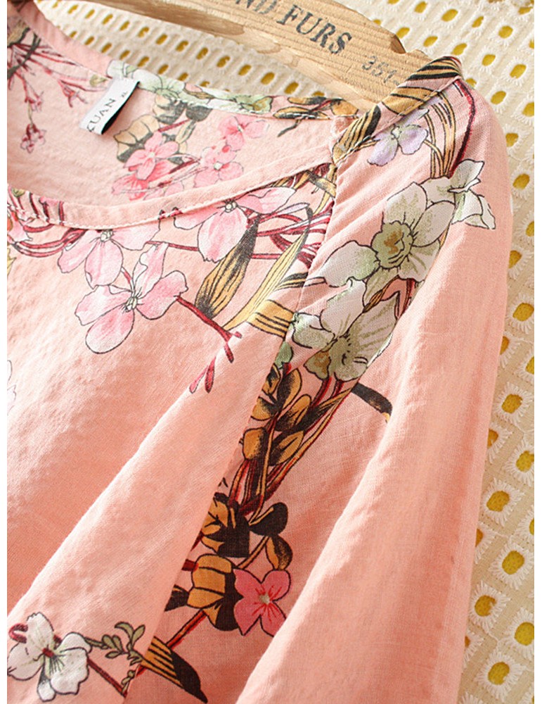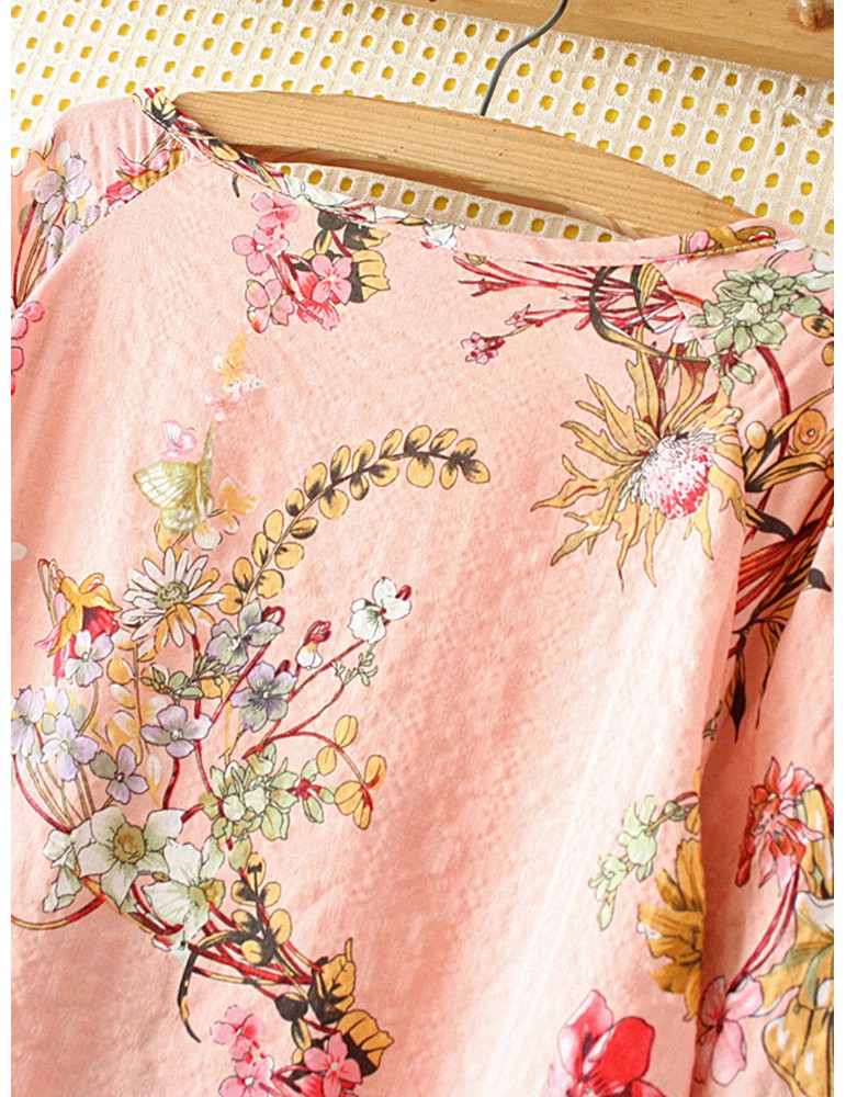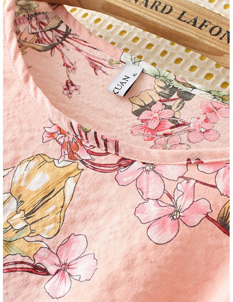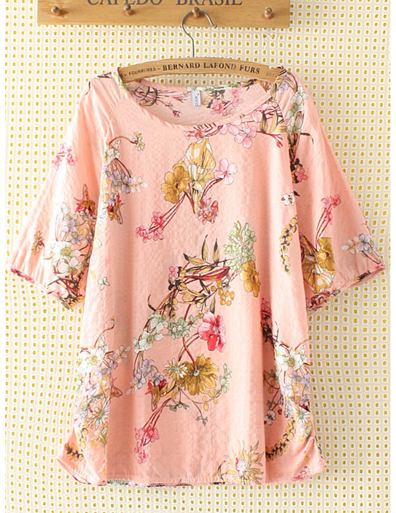 Casual Print Flower Crew Neck Short Sleeve T-Shirt