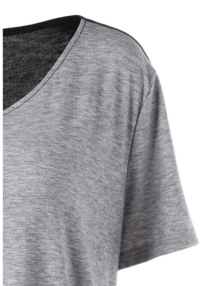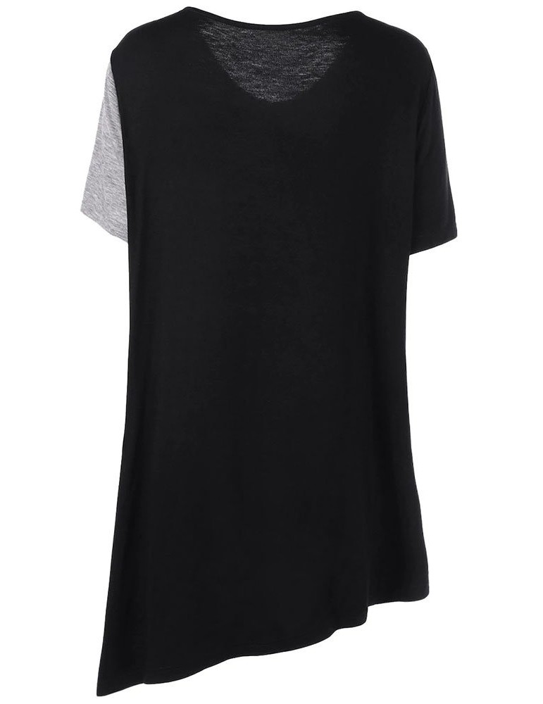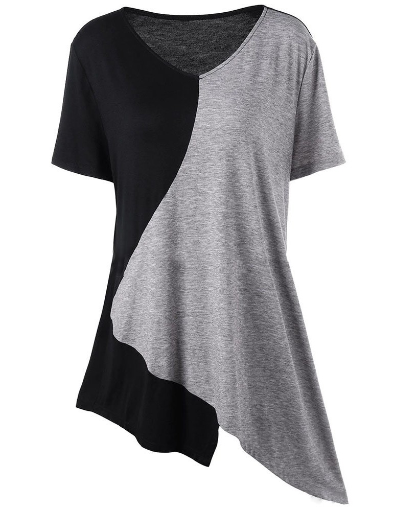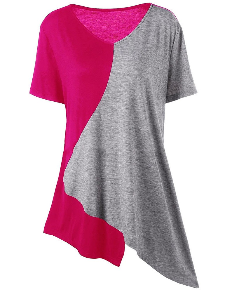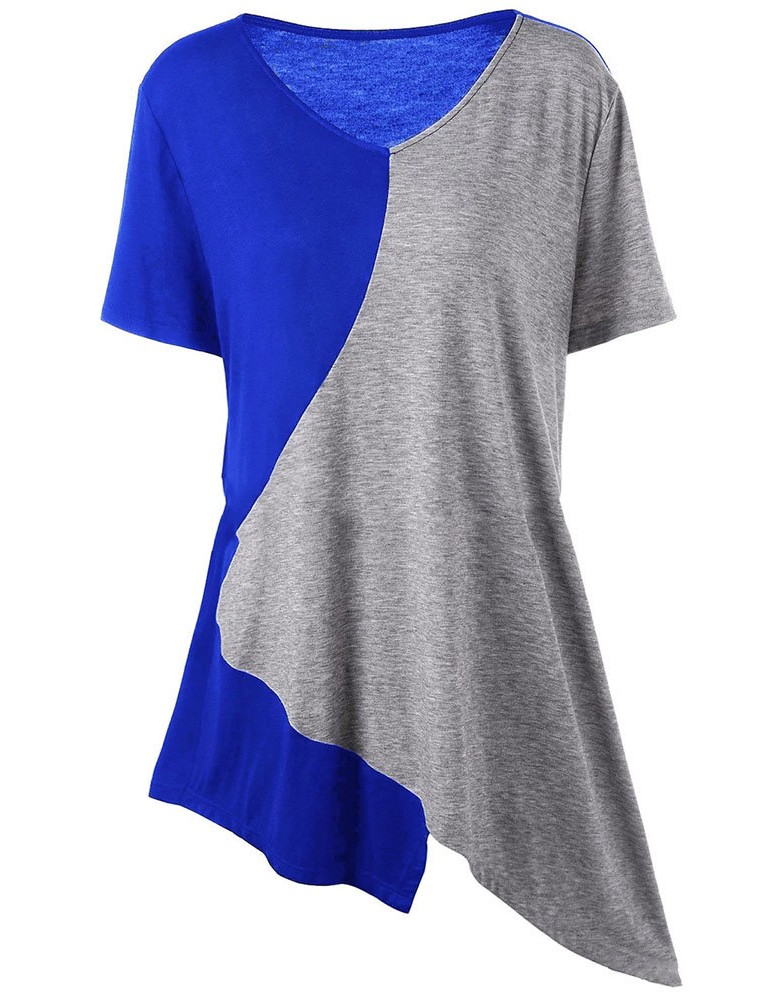 Casual Irregular Patchwork Short Sleeve V-neck Women T-shirts