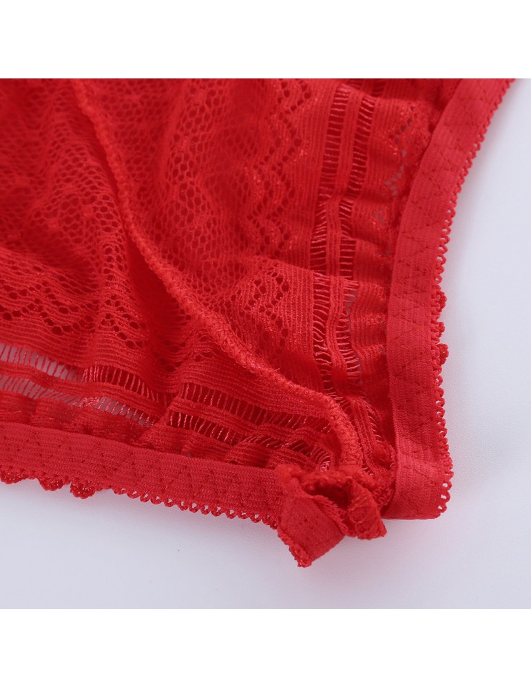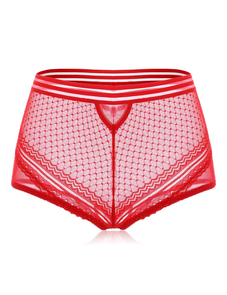 Plus Size High Waist Tummy Control Hollow Lace Panties