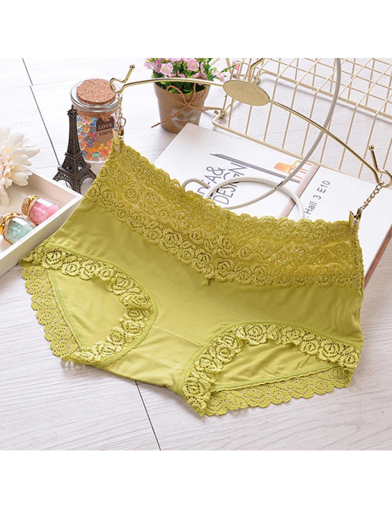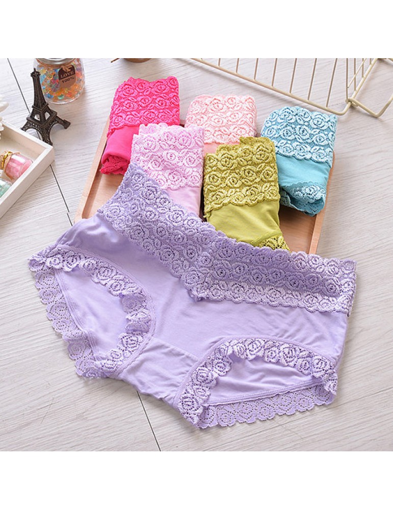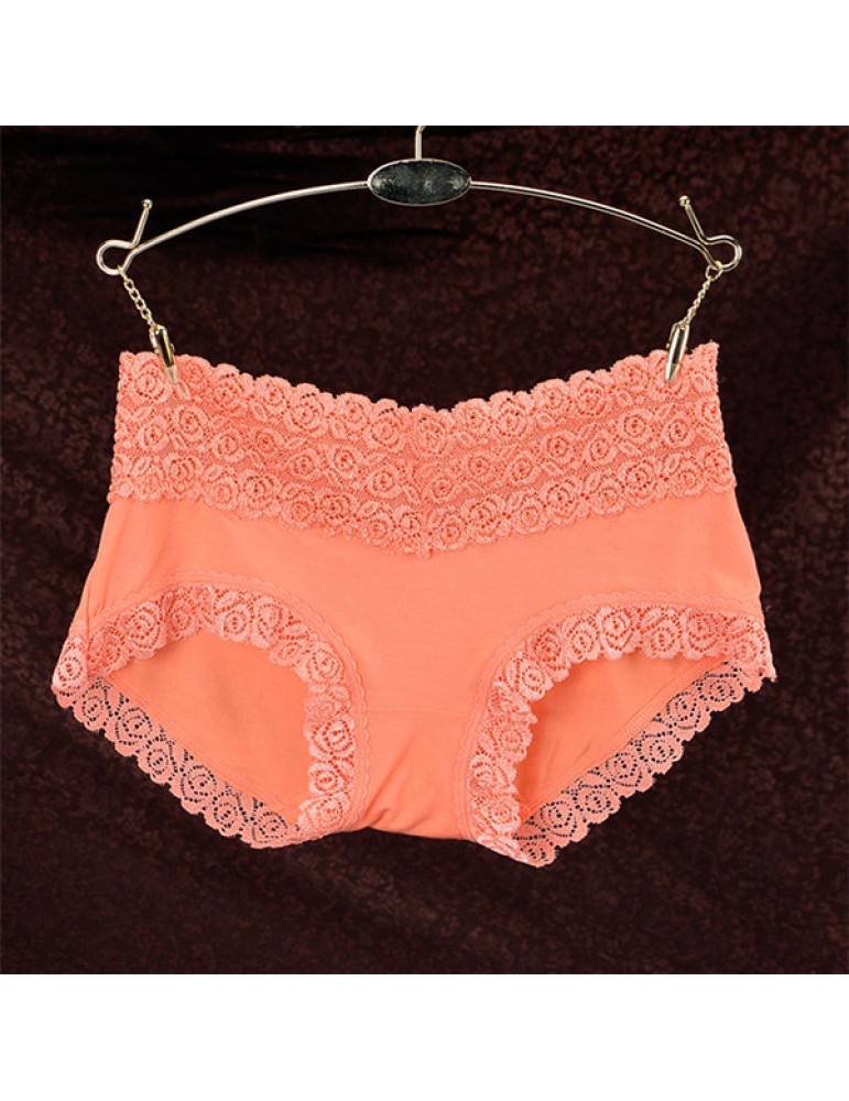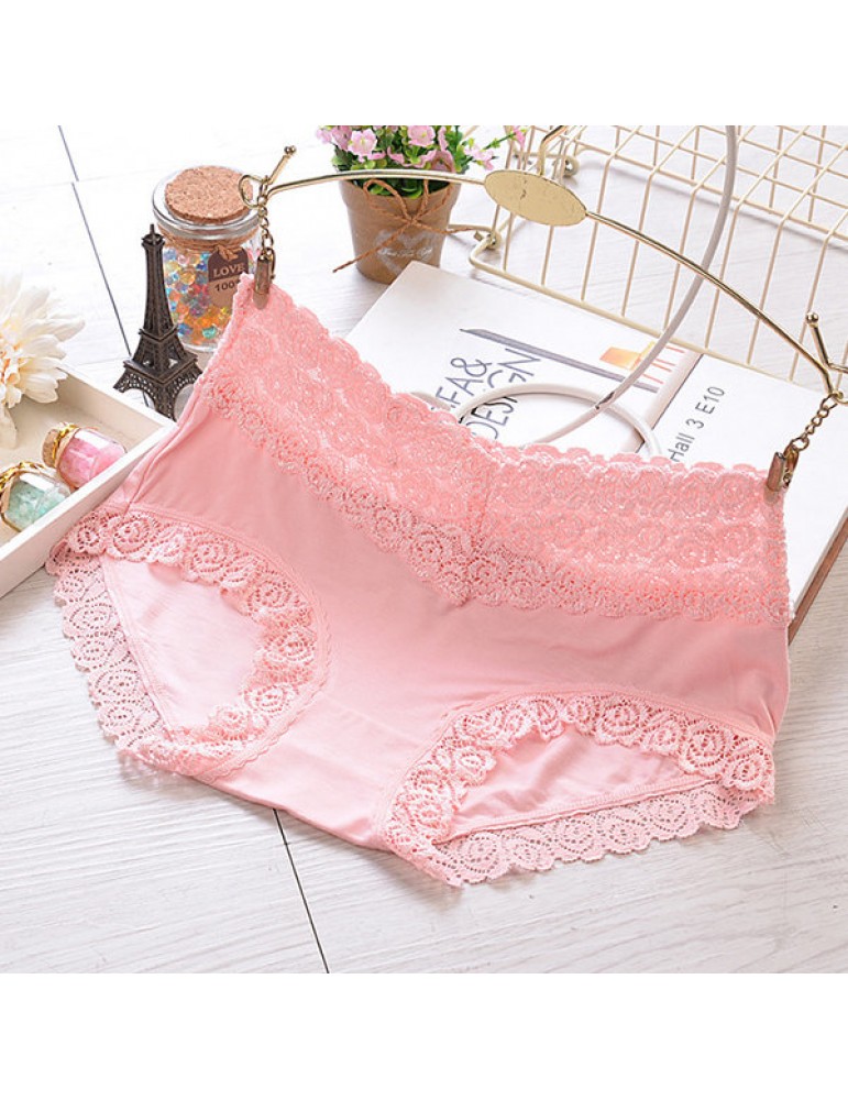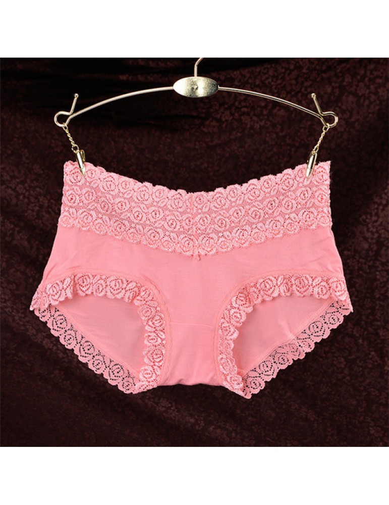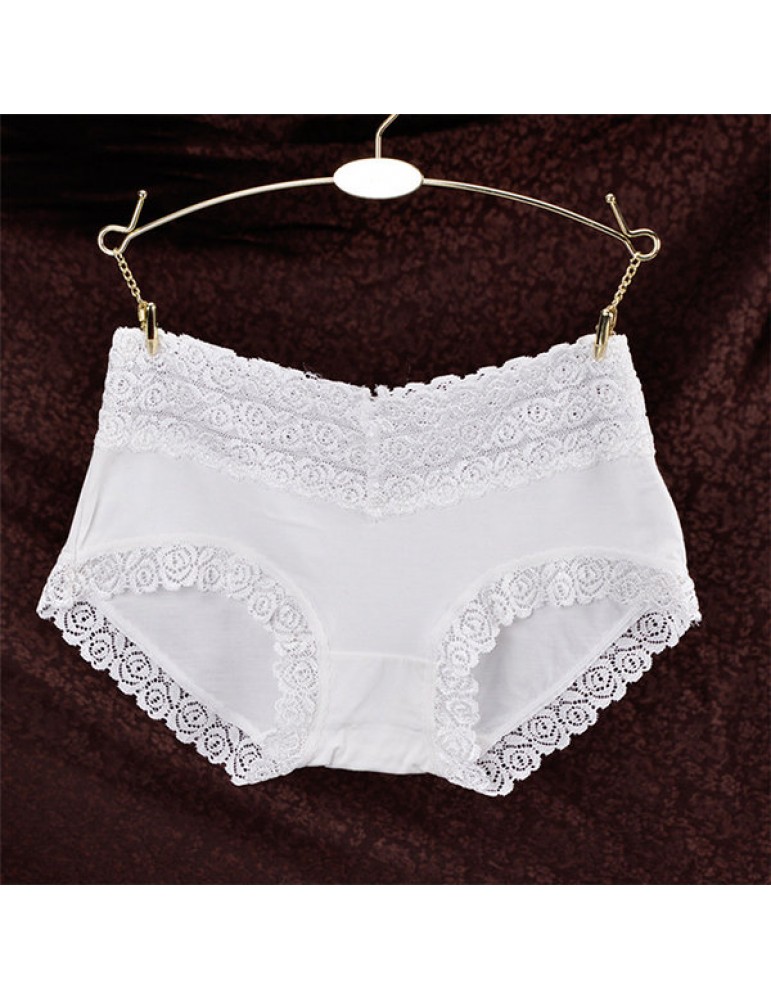 Breathable Lace-trim Hip Lifting Modal Mid Waist Panties