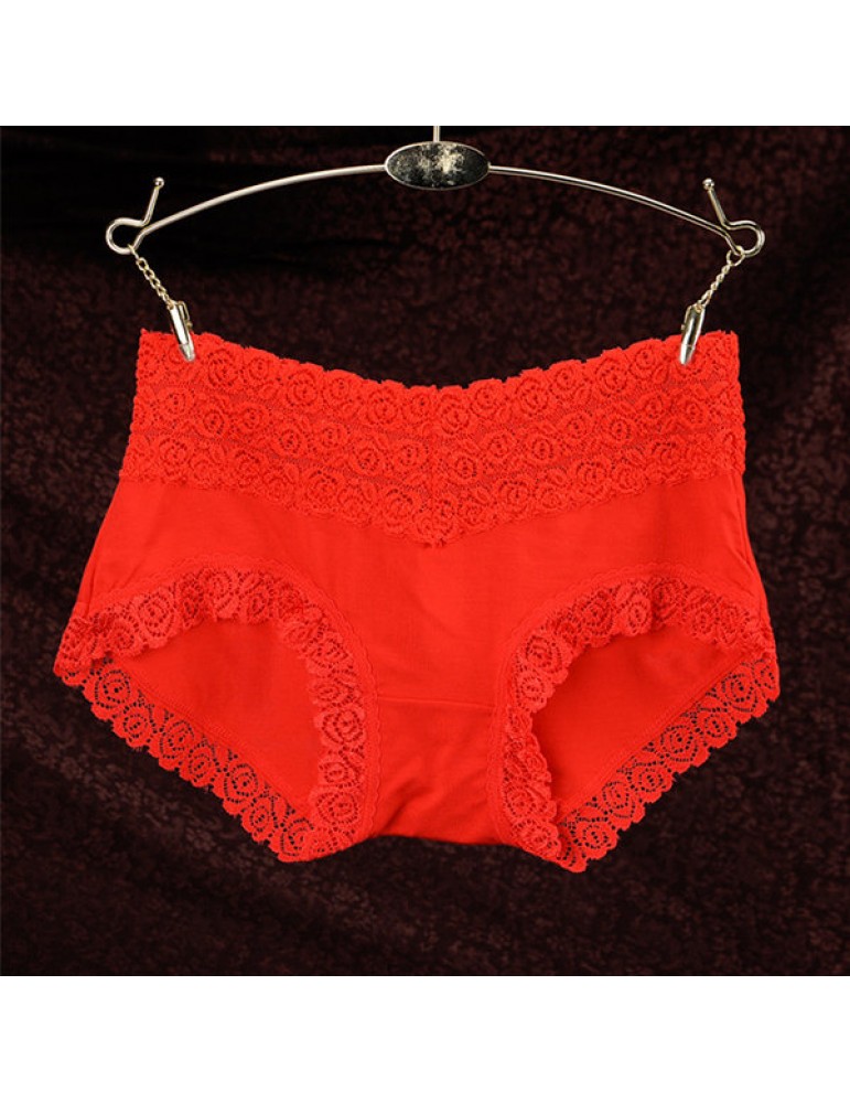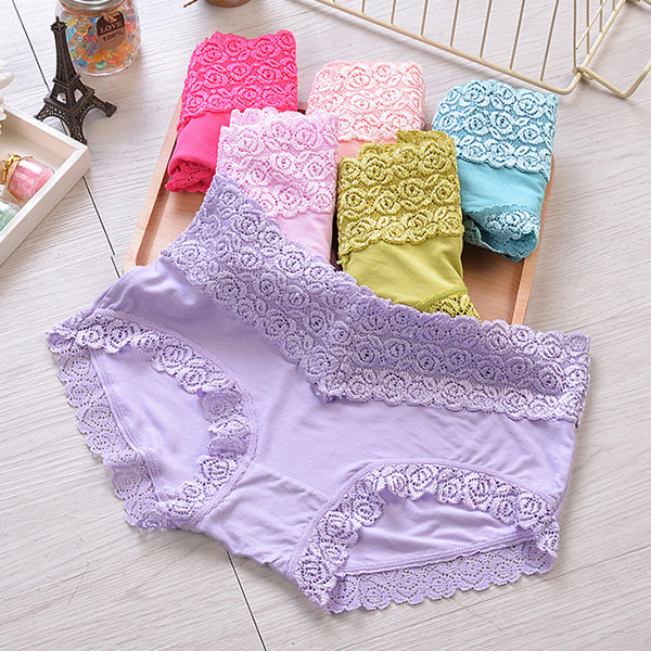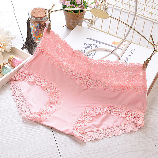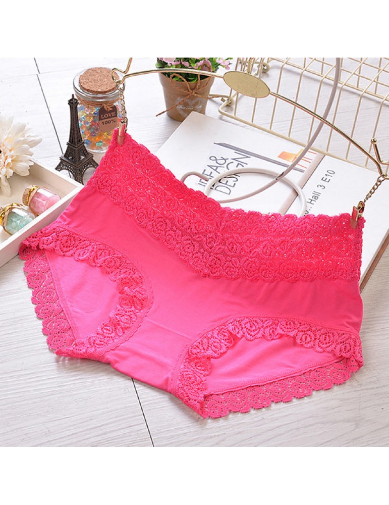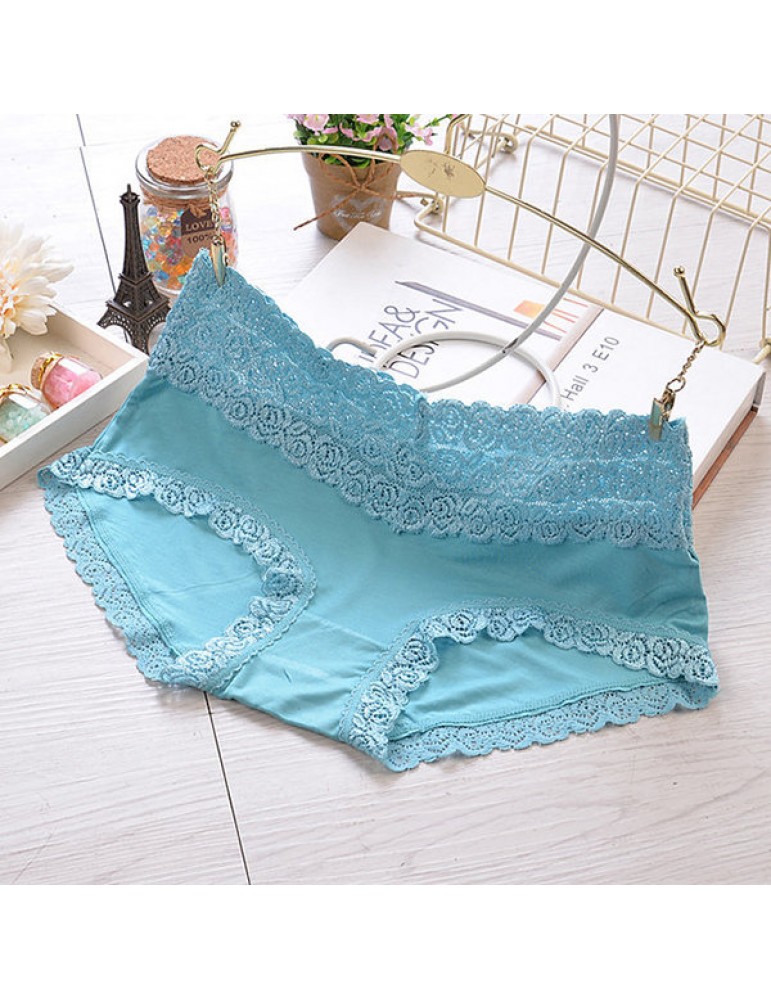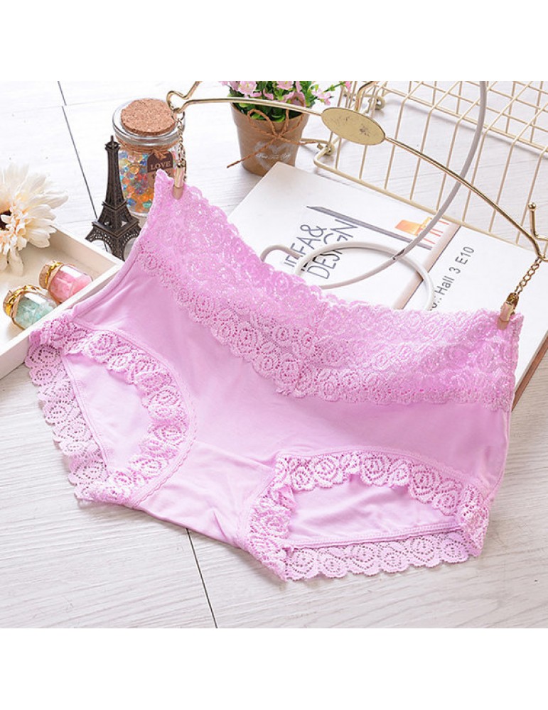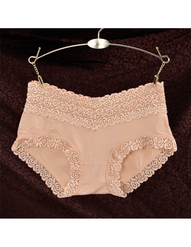 Breathable Lace-trim Hip Lifting Modal Mid Waist Panties