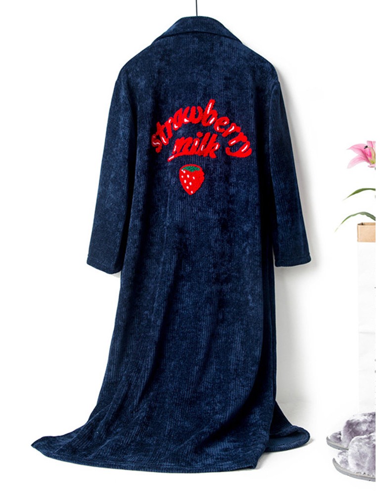 Plus Size Long Pink Robe Thickened Embroidery Front Button Winter Autumn Pajamas