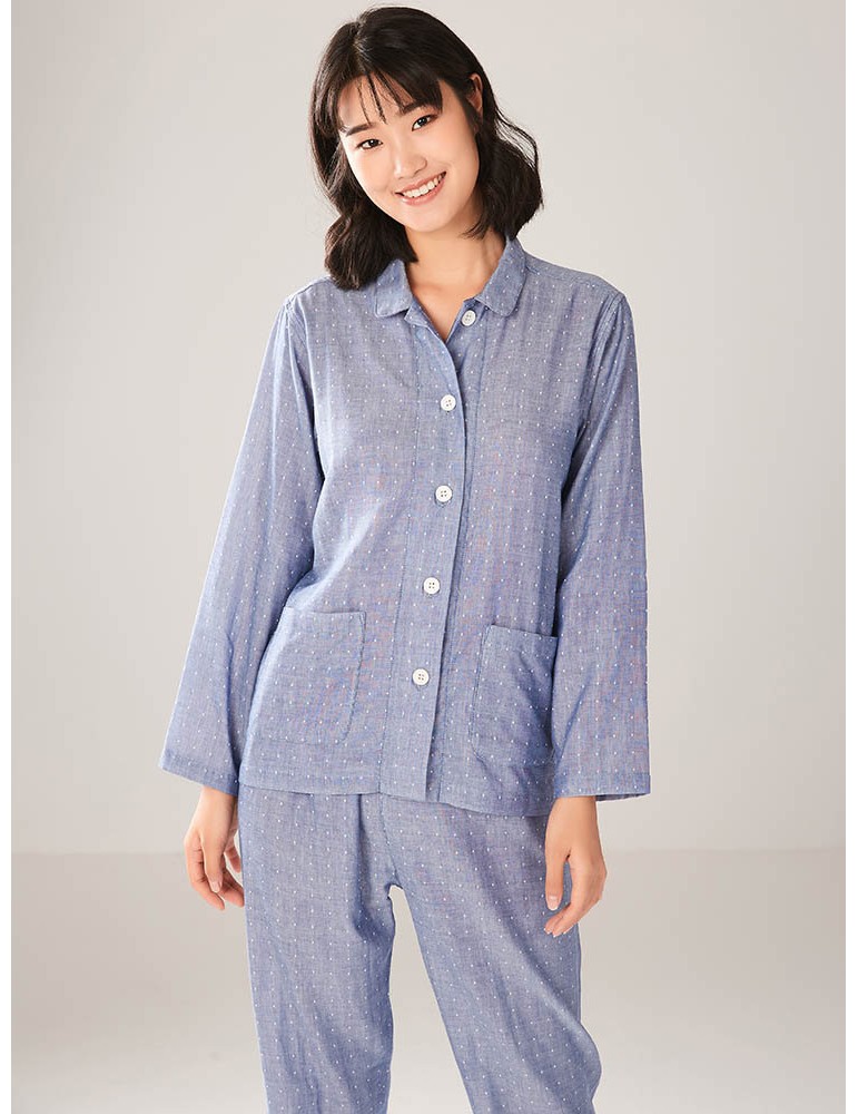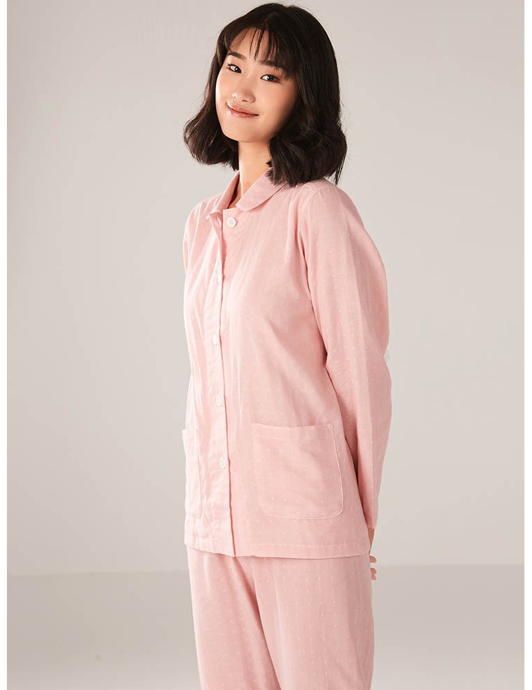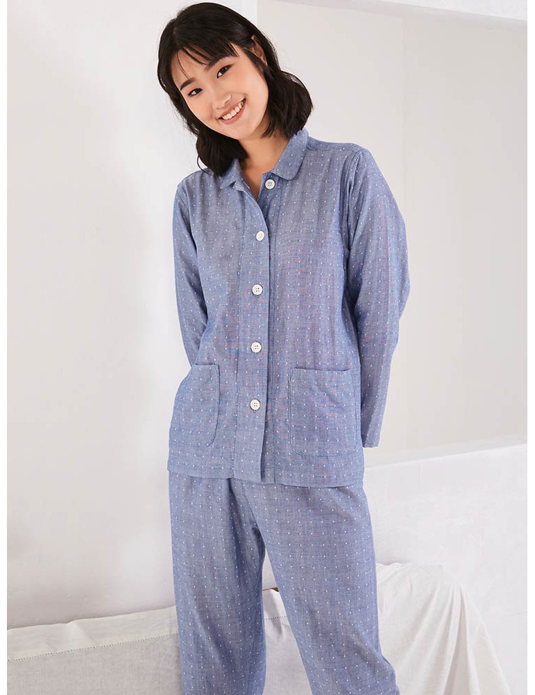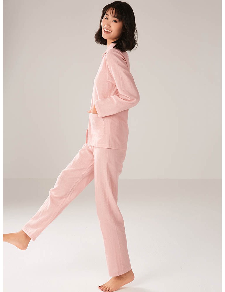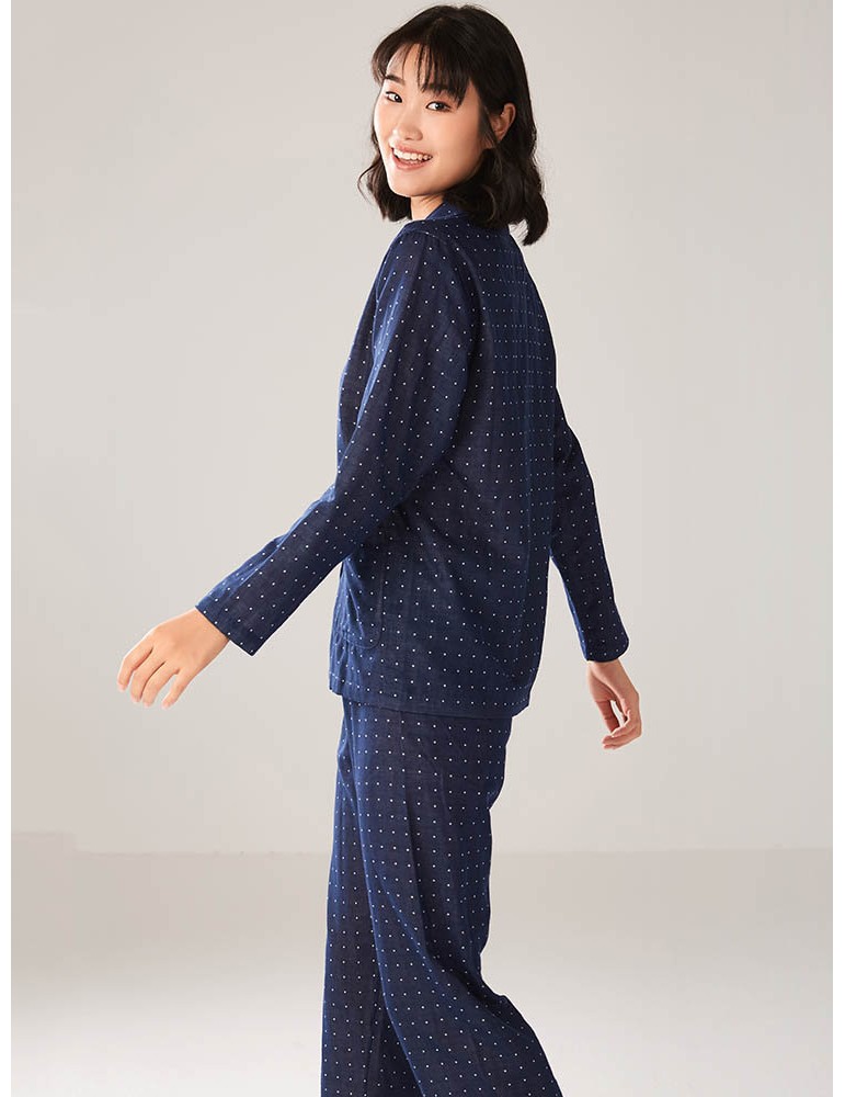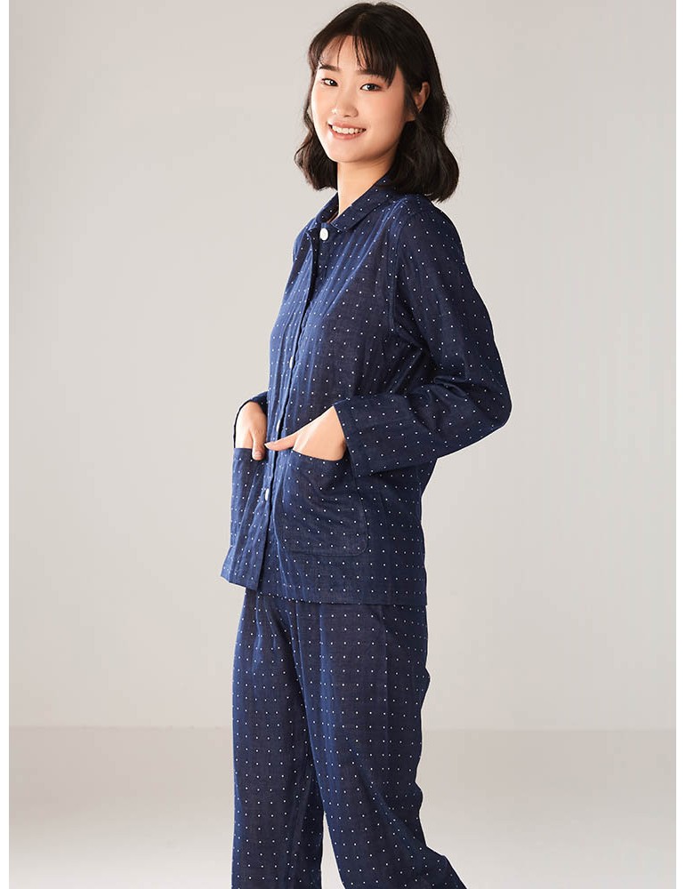 Plus Size Cotton Women Pajamas Polka Dot Button Casual Long Sleepwear Suits