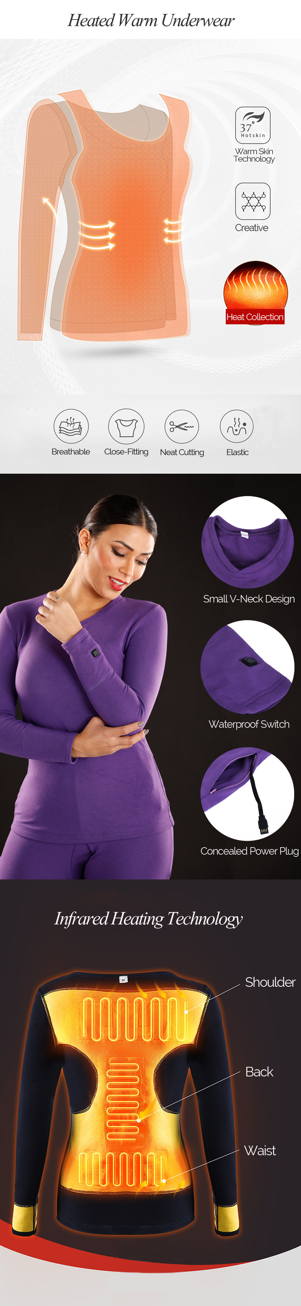Plus Size Winter Women Pajamas Long Sets USB Heated Warm Thermal Underwear