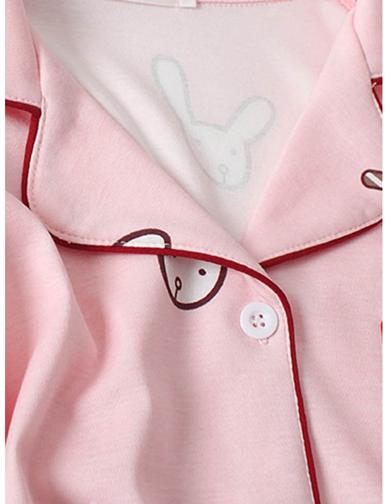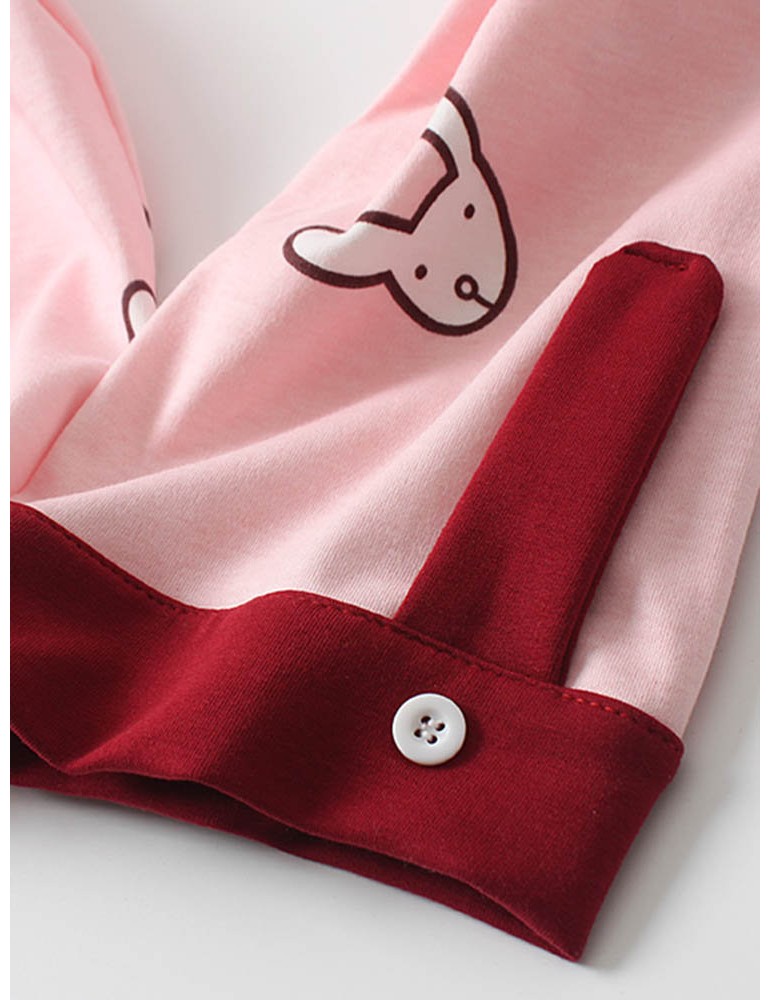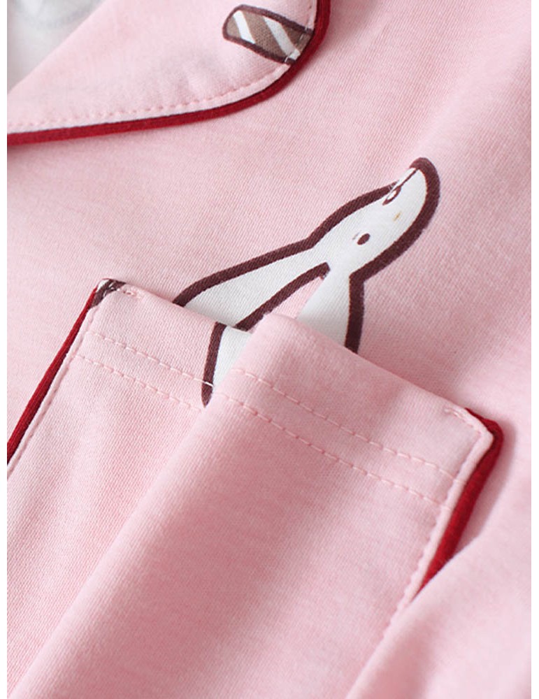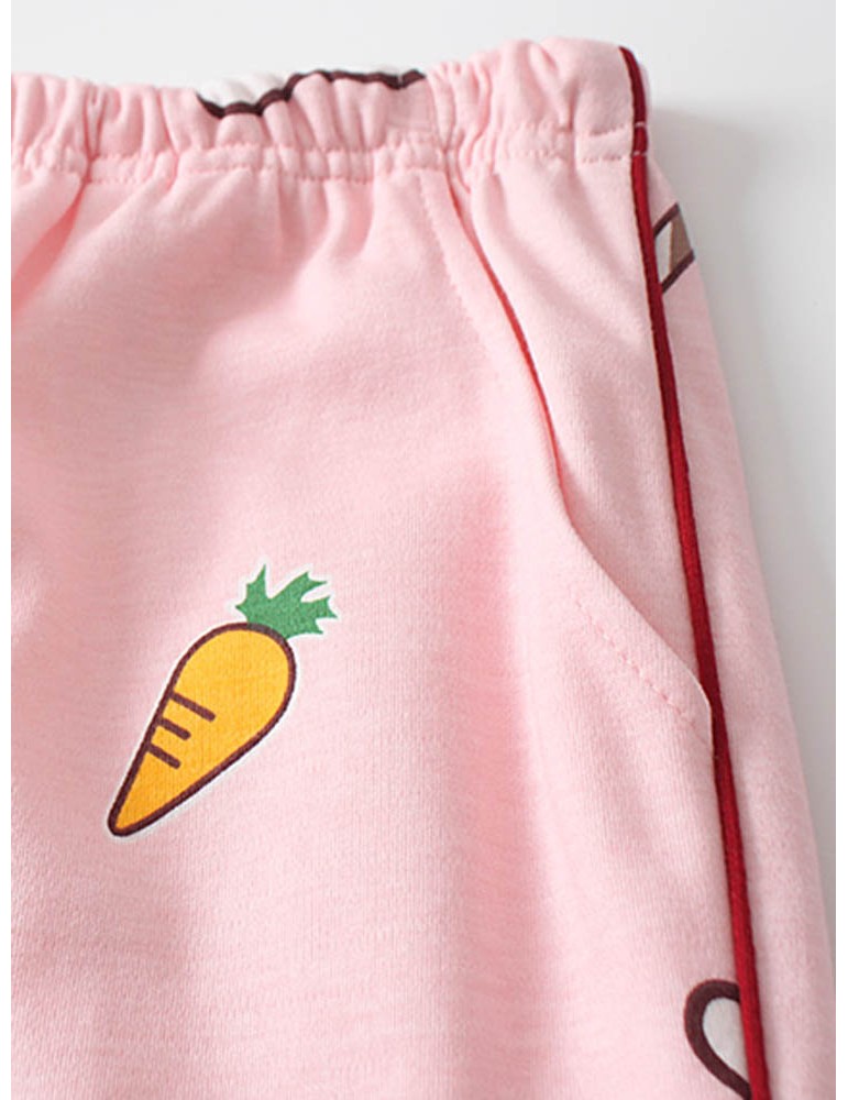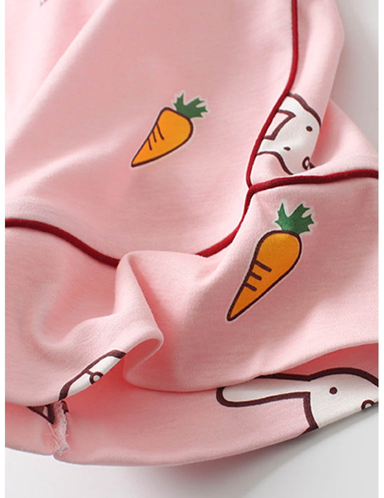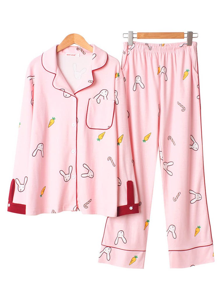 Cotton Cute Pajamas For Women Rabbit Carrot Print Sleepwear Casual Long Sets
