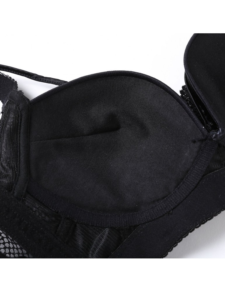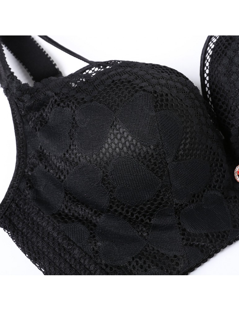 Plus Size Wireless Lace Bras Thin Breathable Adjustable Straps Black Underwear US 44D