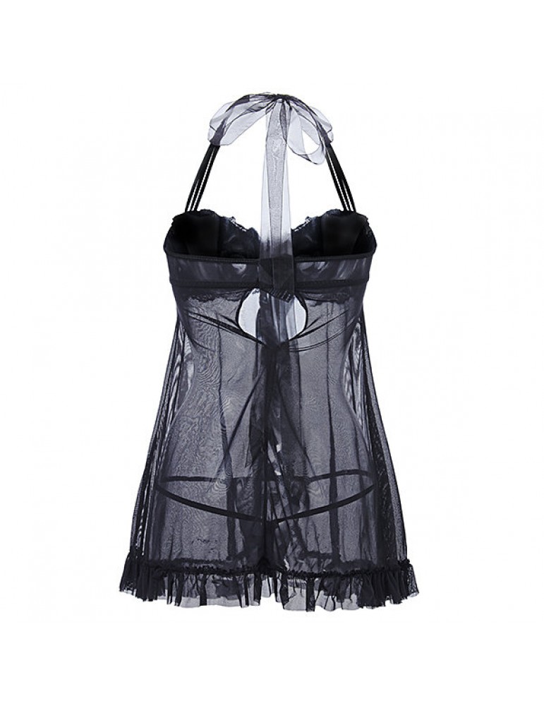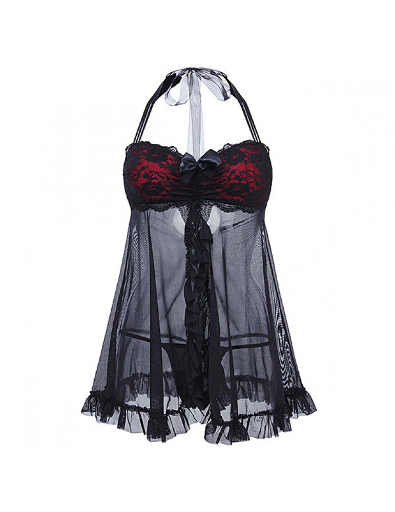 Sexy Mesh Lace See Through Halter Temptation Babydoll Dress For Women