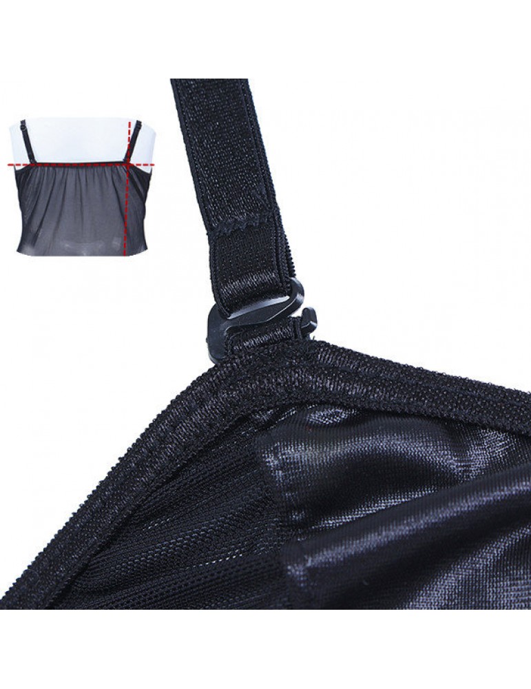 Plus Size Women Sexy PU Leather Nightdress Lace Hollow Out Sleepwear