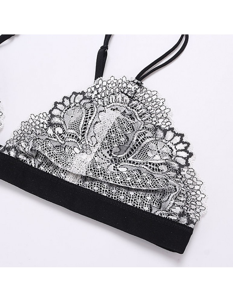 Sexy Lace Embroidered Unlined Deep Plunge Wireless Bralettes