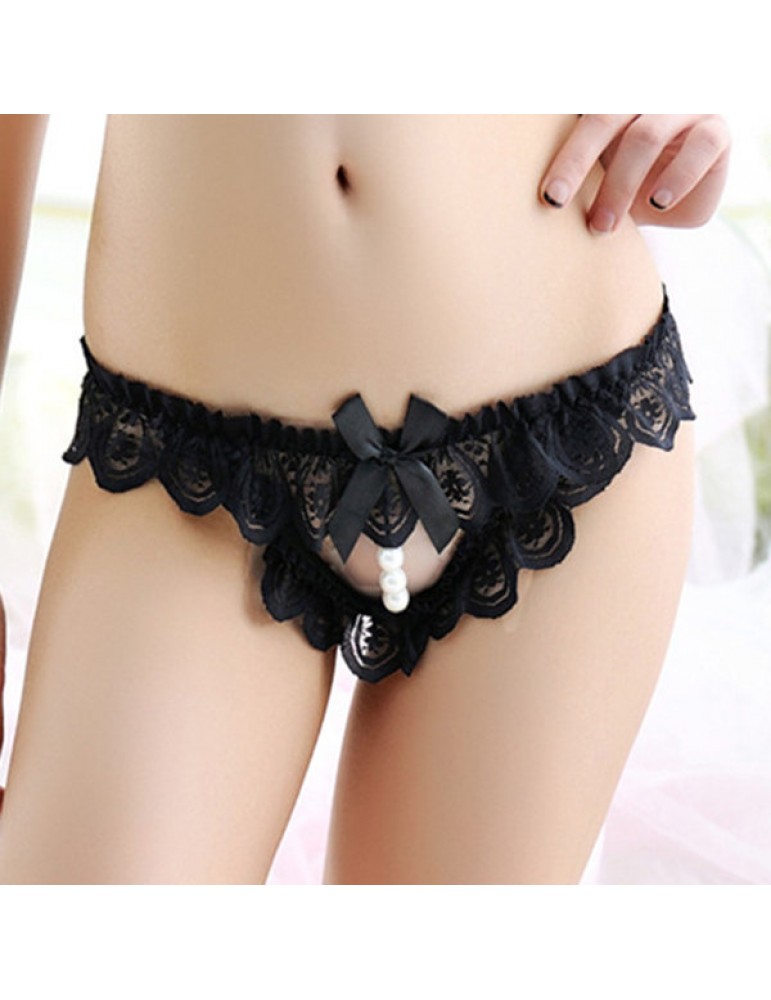 Sexy Lace Open Crotch Pearl Hollow Temptation Low Rise Thongs For Women