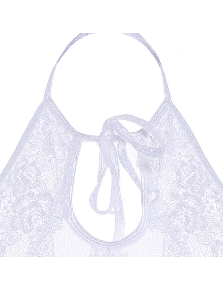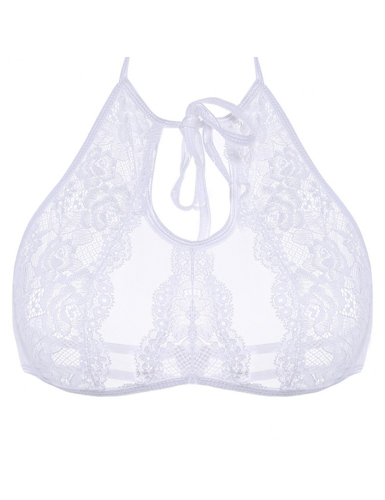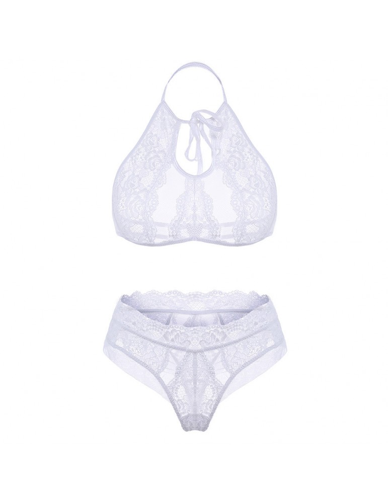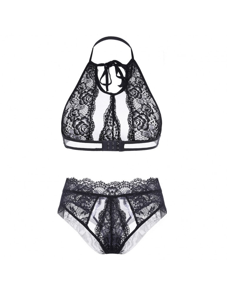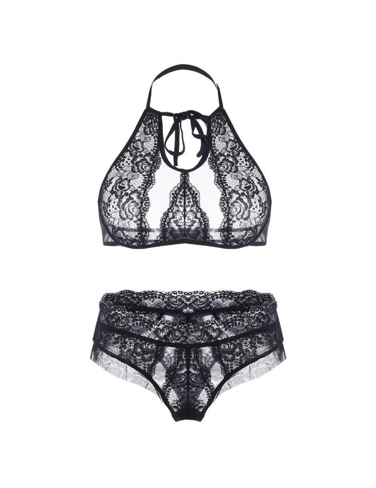 Hollow Out Translucence Lace Halter Bra And Panty Set