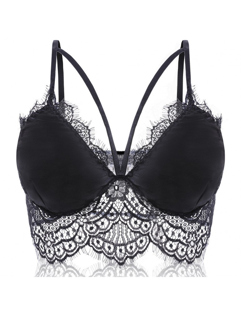 Embroidery Women Floral Strap Lace Wireless Bra Sexy Lingerie