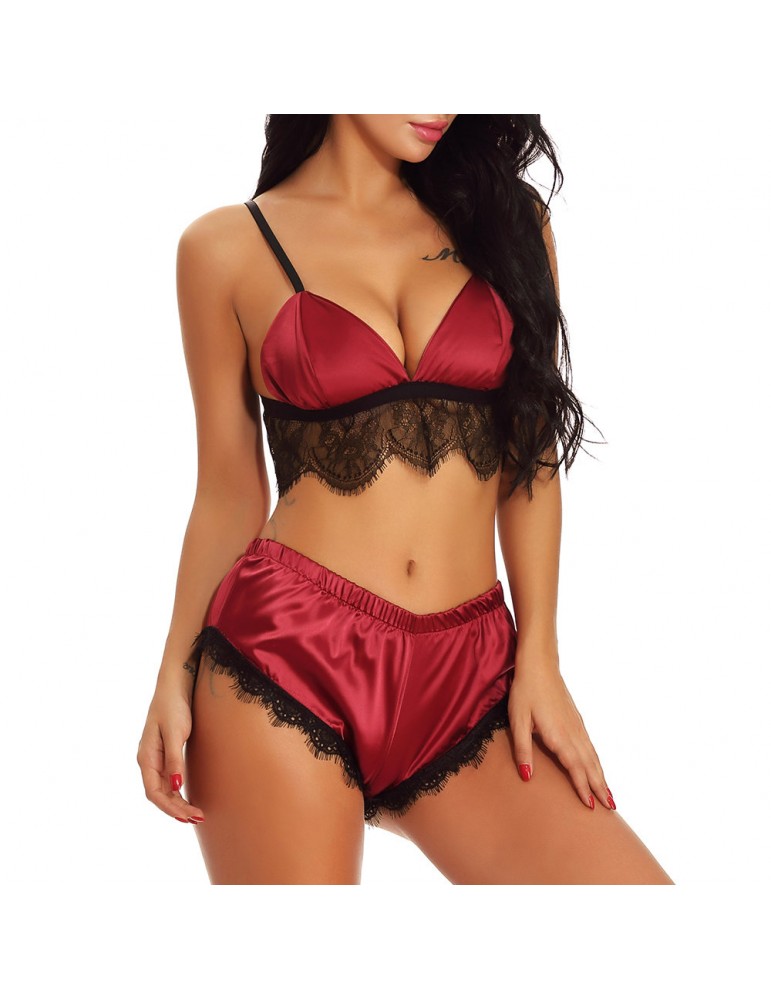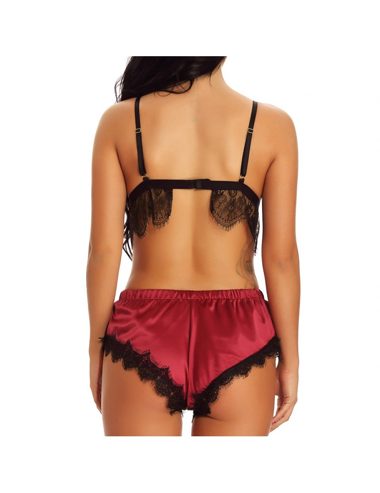 Sexy Eyelash Lace Red Lingerie Sets Christmas Pajamas