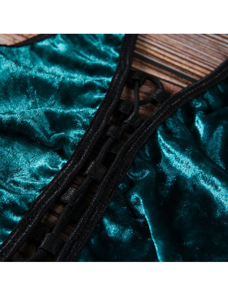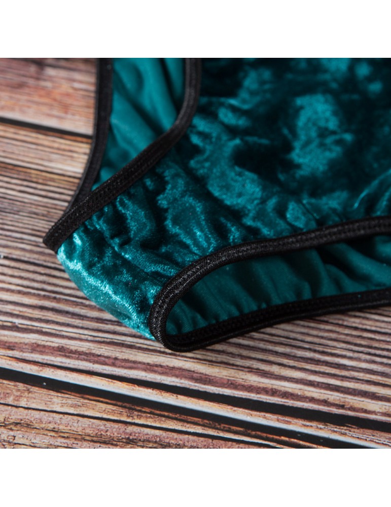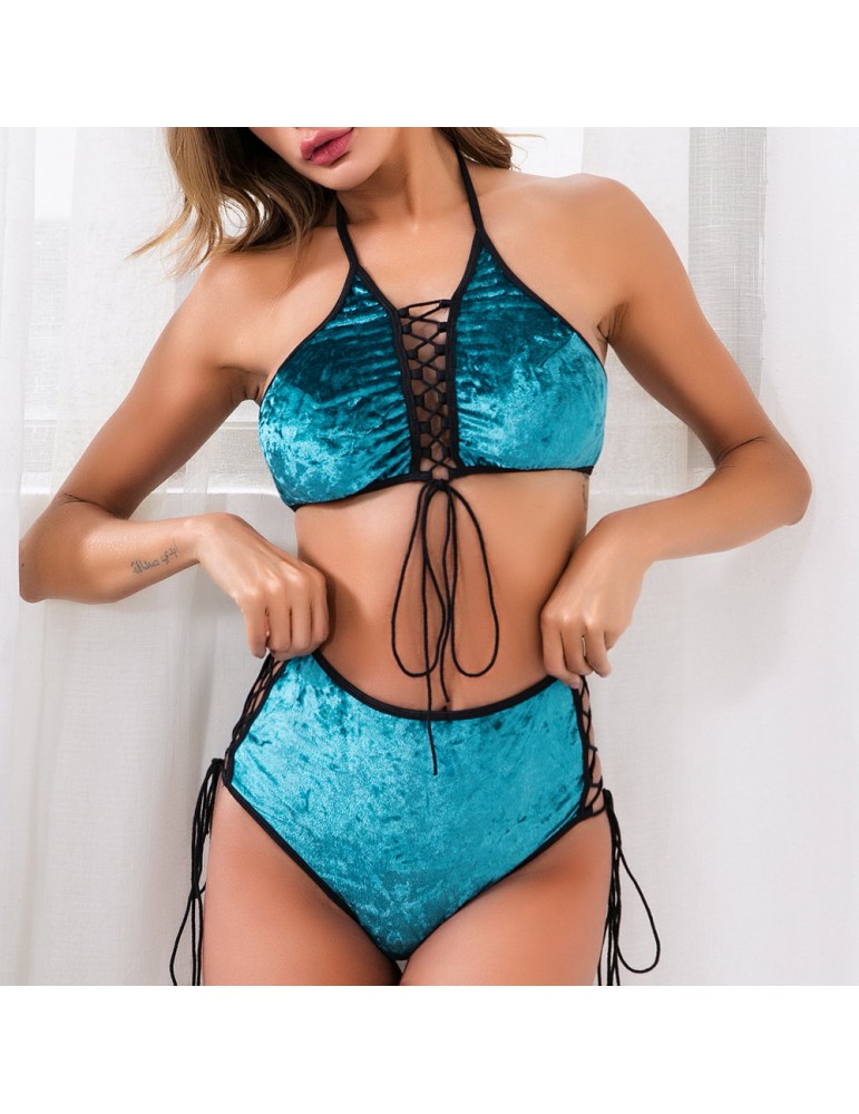 Halter Criss Cross String Velvet Sexy Lingerie Bra And Panty Sets Christmas