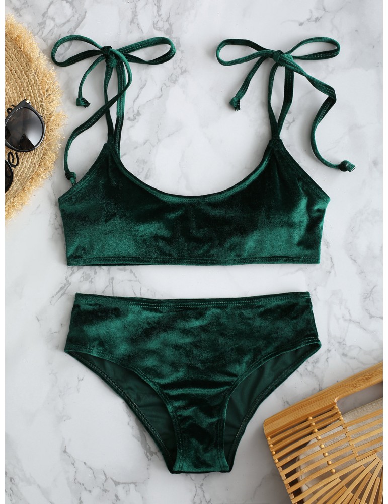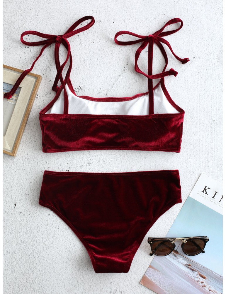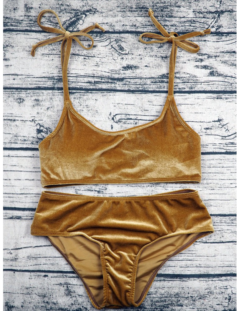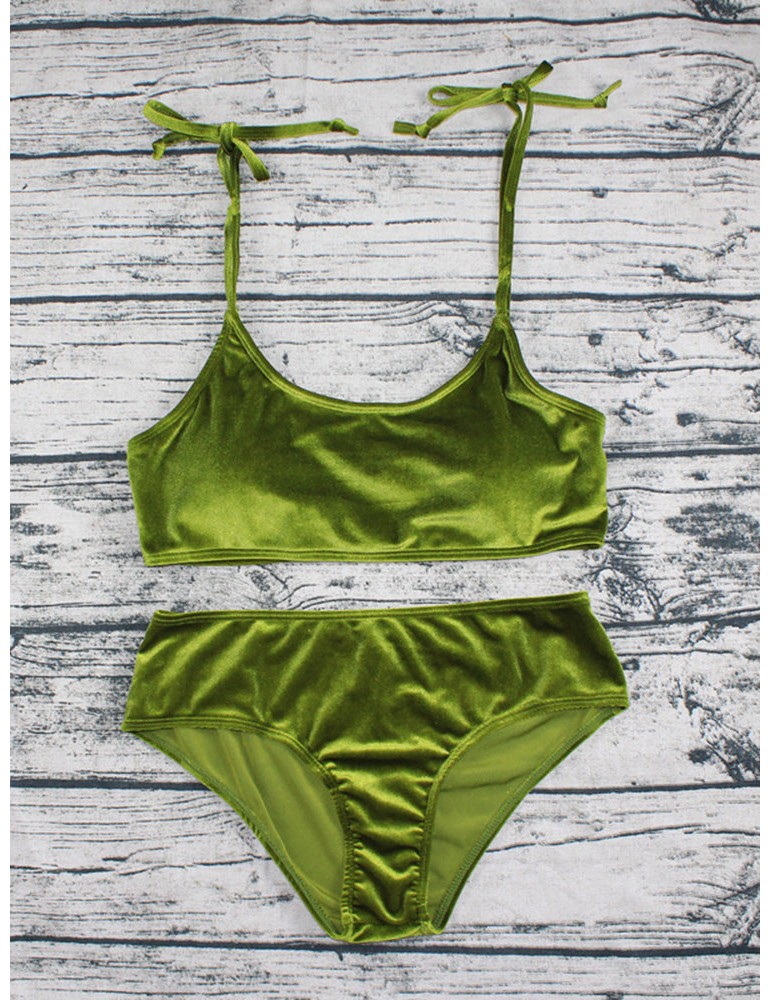 Velvet Sexy Bikinis Women Swimsuits String Straps Backless Swimwear