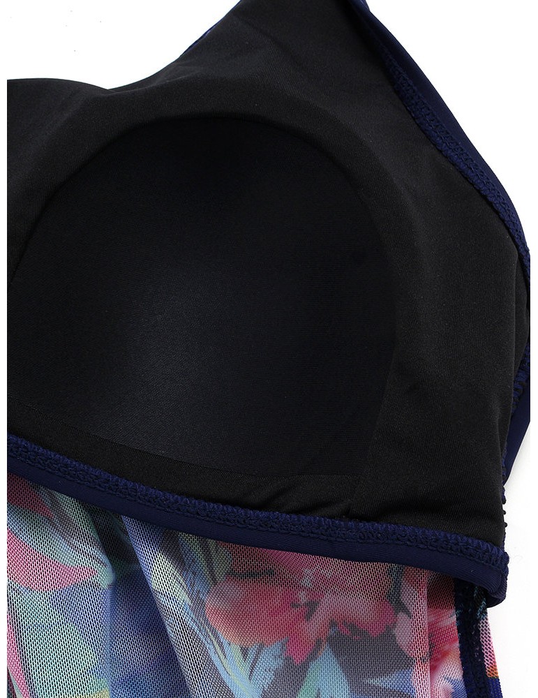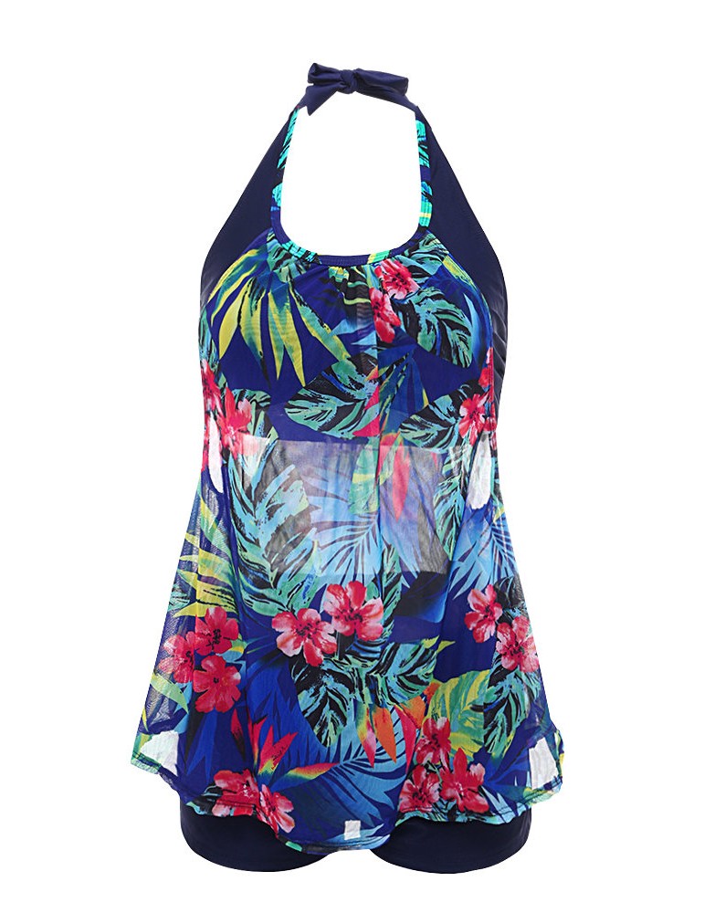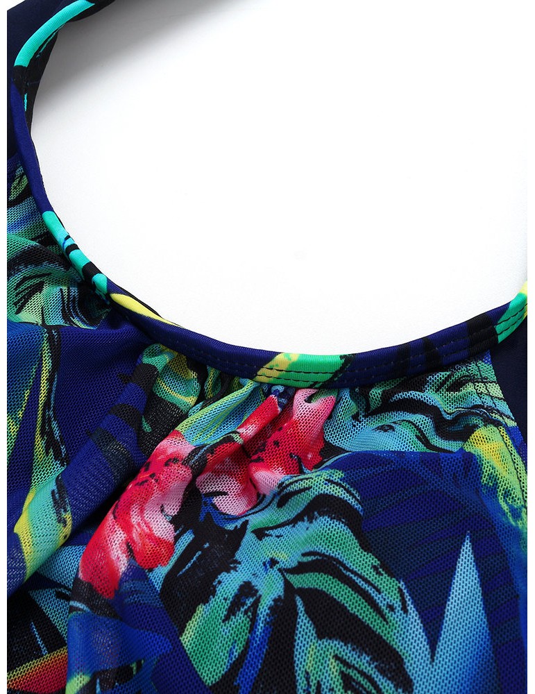 Plus Size Women Halter See Through Printed Backless Sexy Comfort Swimdresses