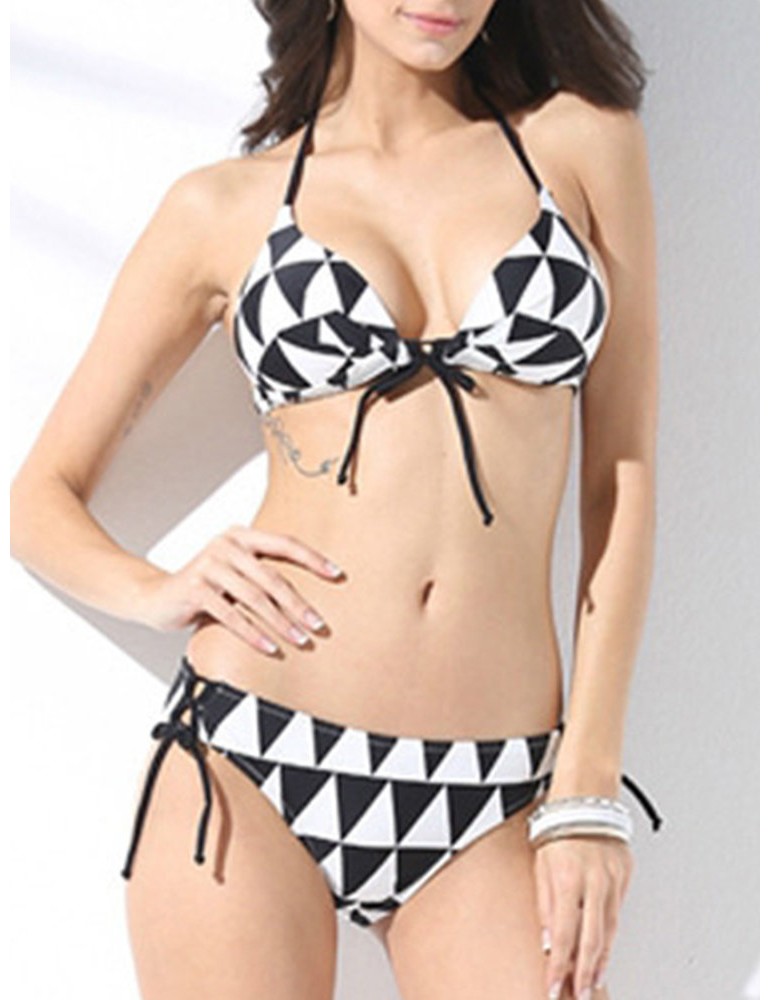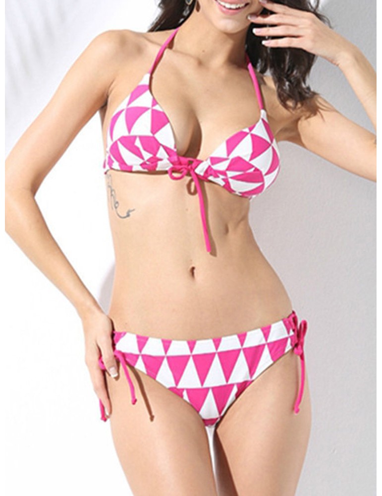 Women Sexy Halter Wireless Bikini Set Triangle Geometry Backless Swimwear