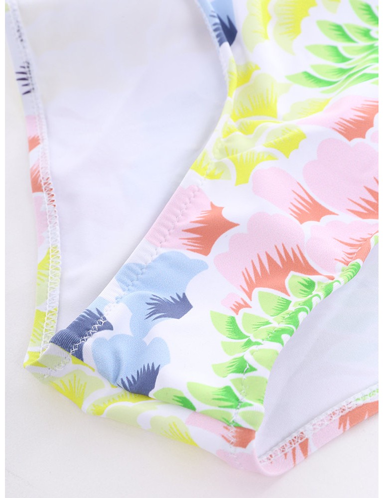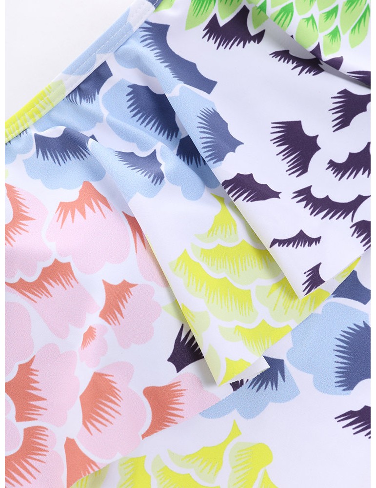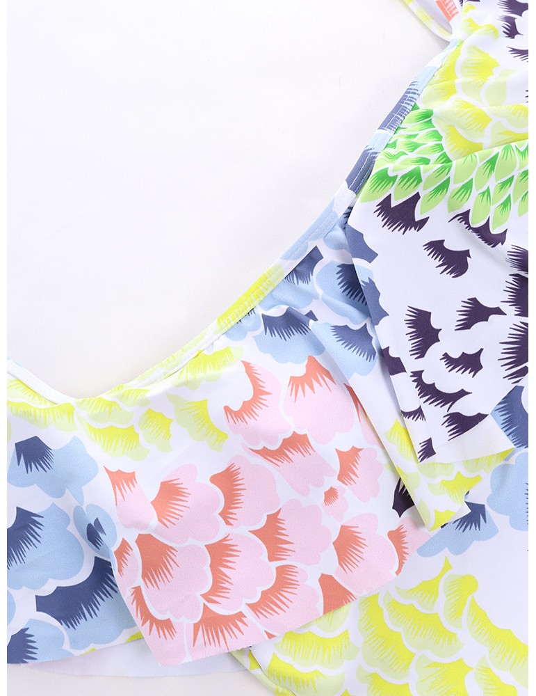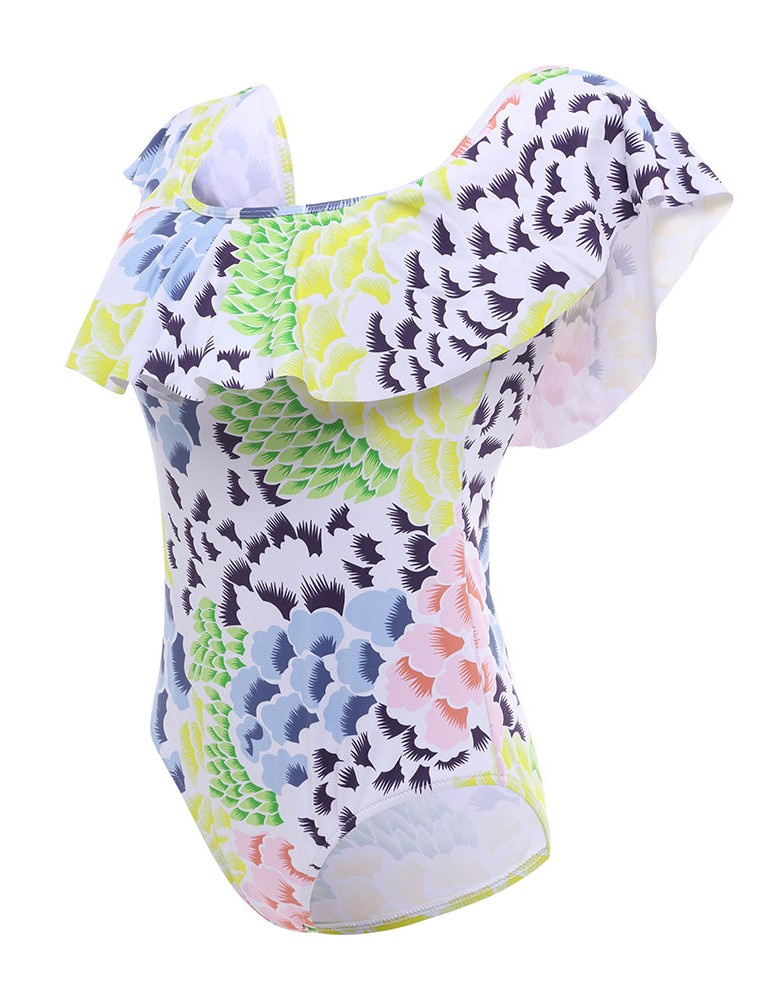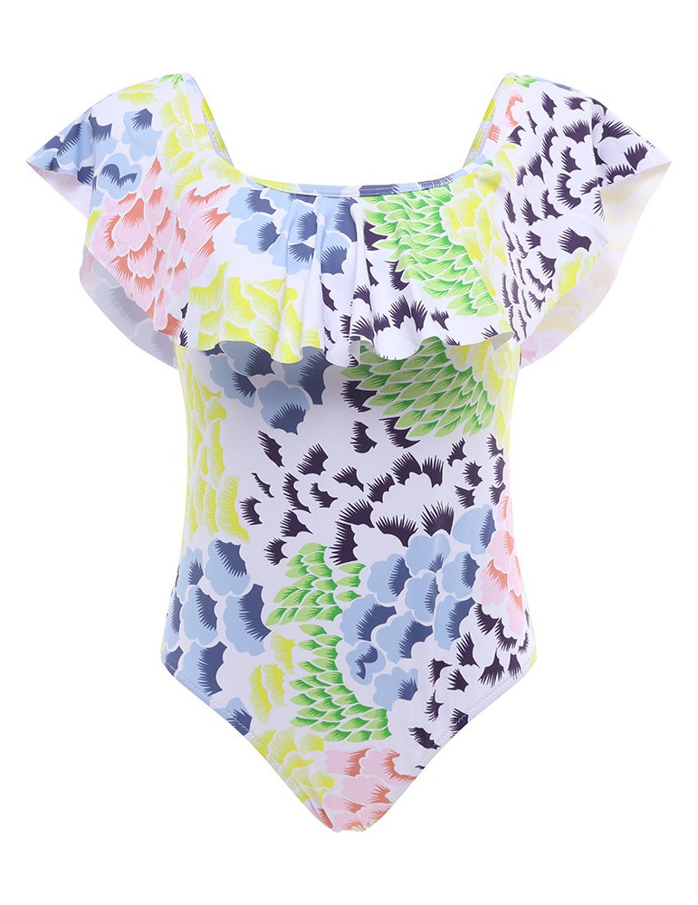 Floral Printed Lotus Leaf Word Shoulder One Piece Swimwear Swimsuit For Women