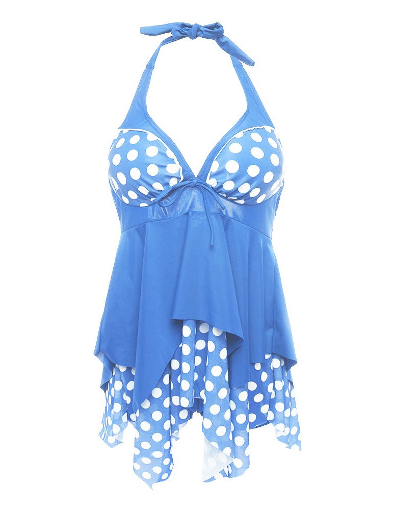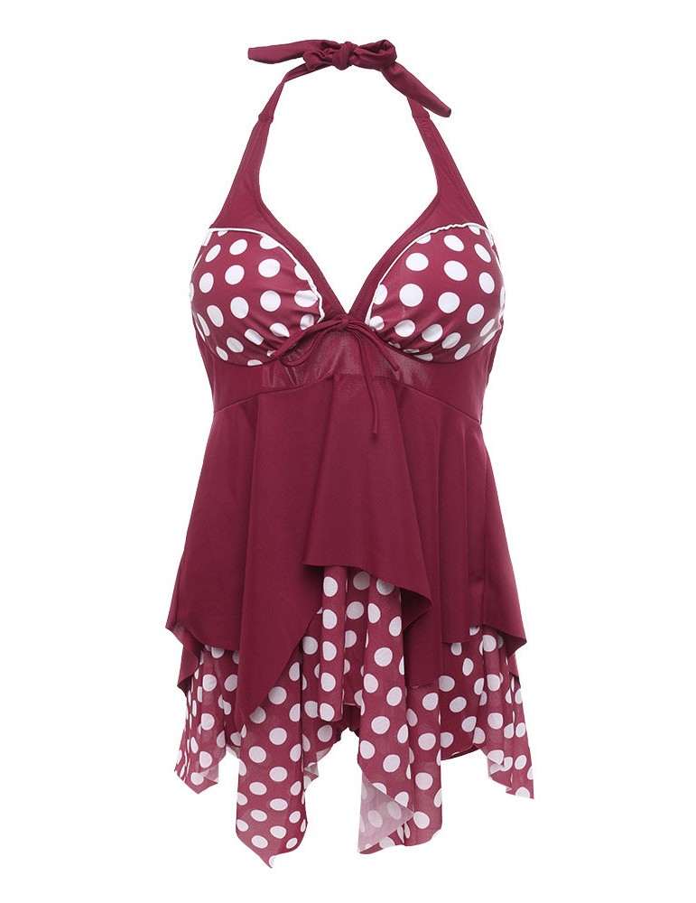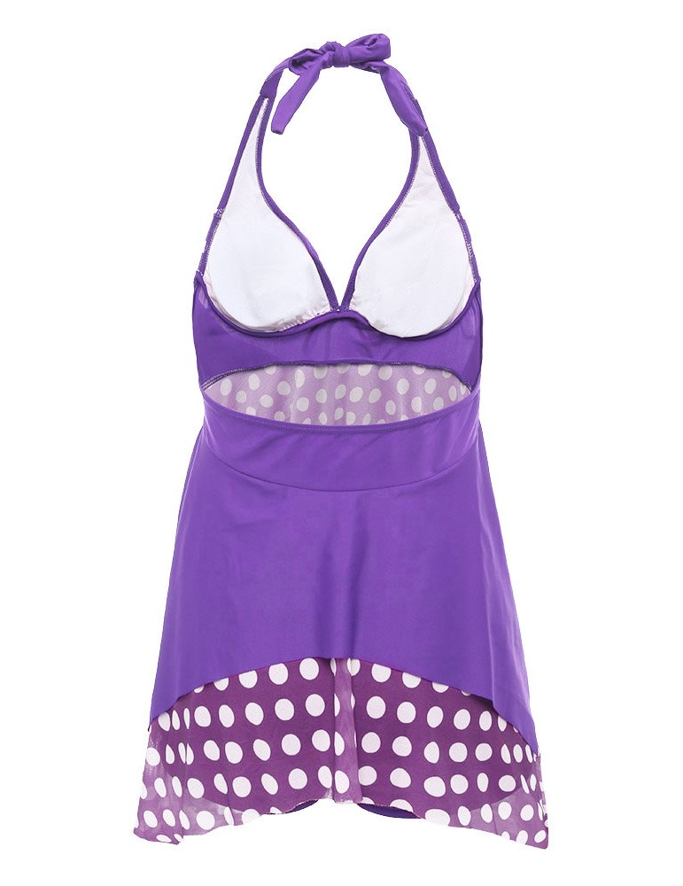 Plus Size Halter Polka Dot Irregular Backless Swimdresses For Women