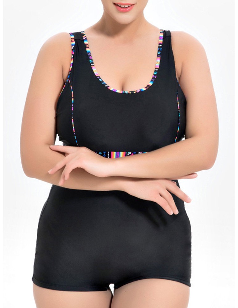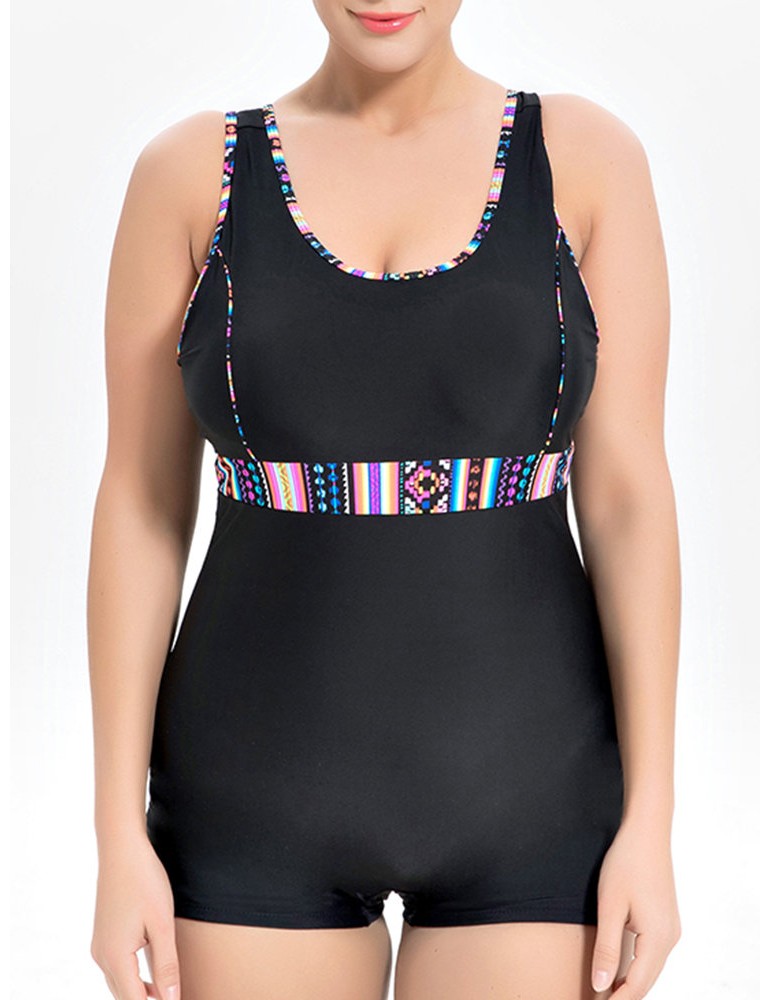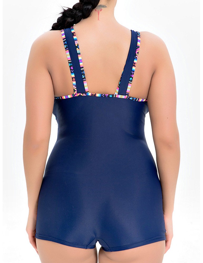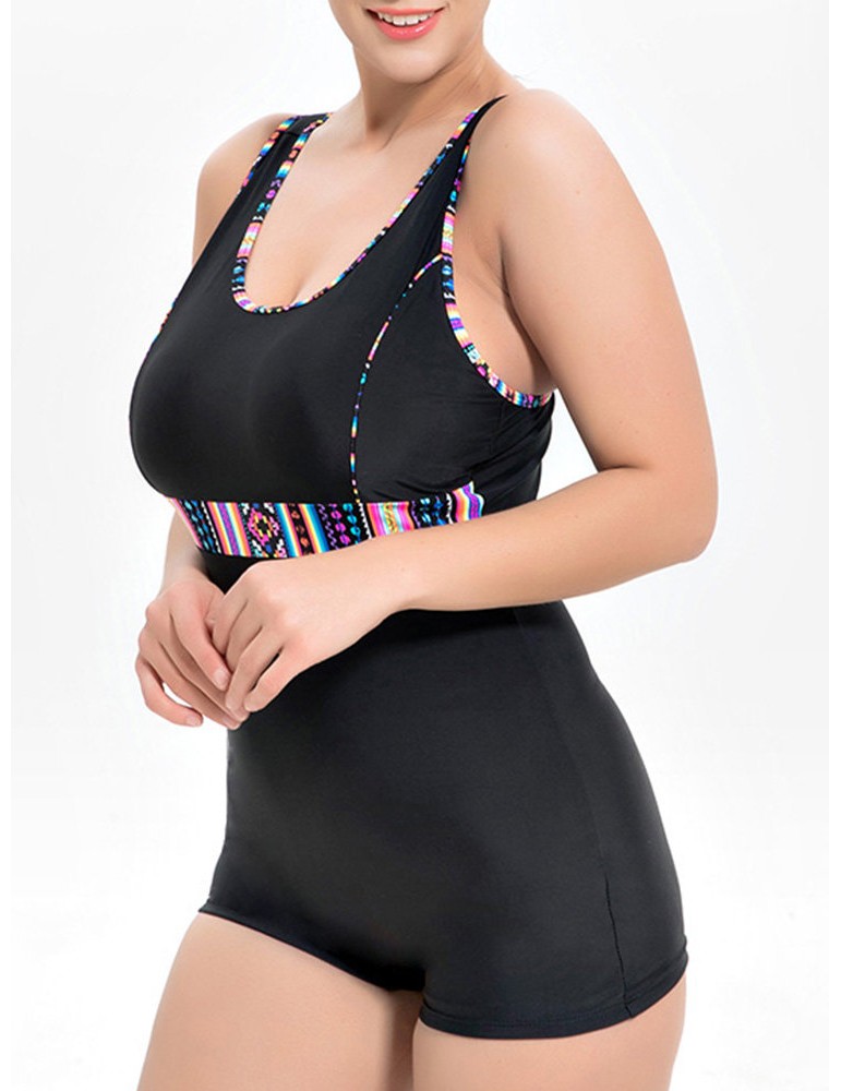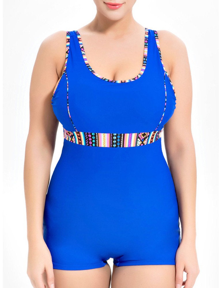 Plus Size Splicing Belt One Piece Swimwuit Swimwear For Women