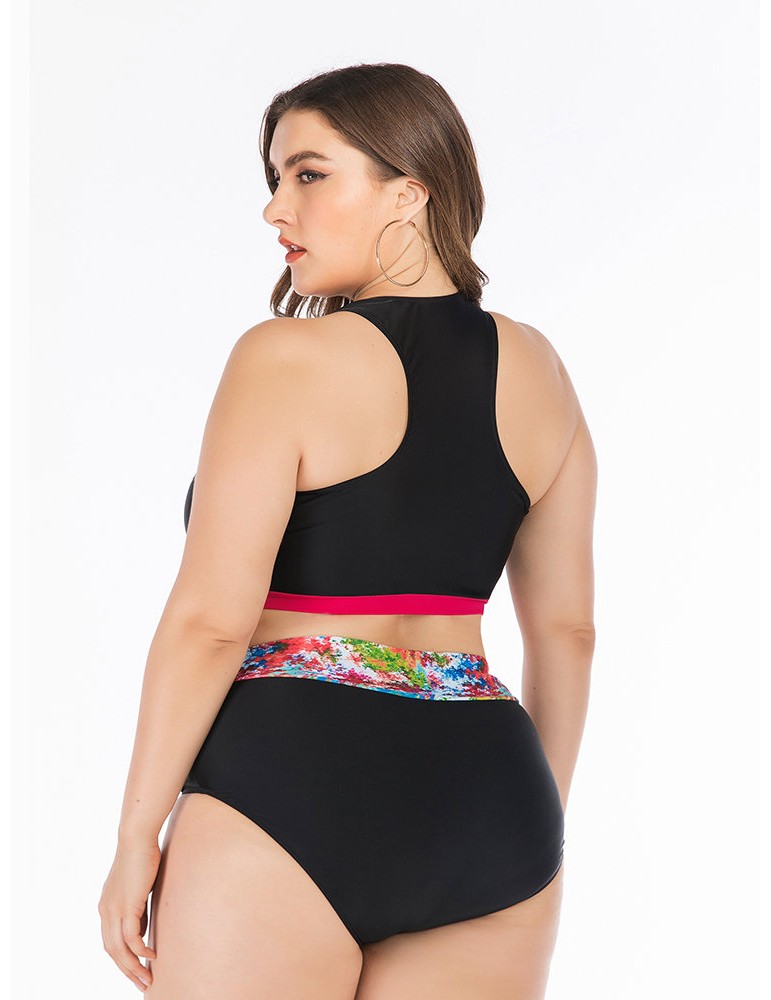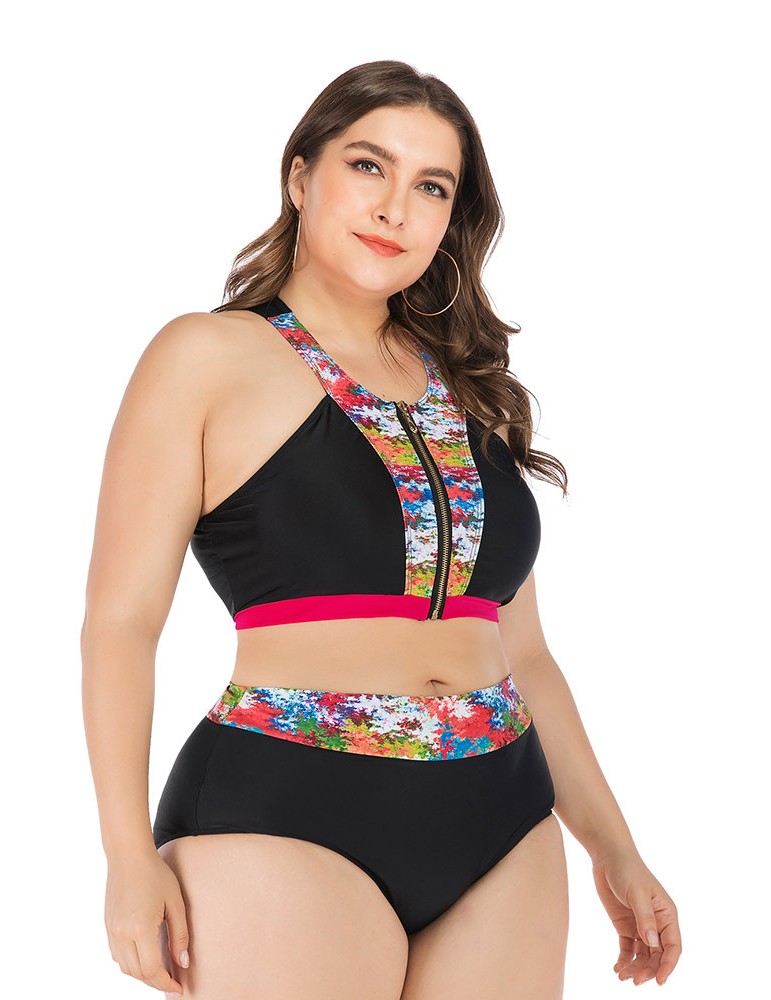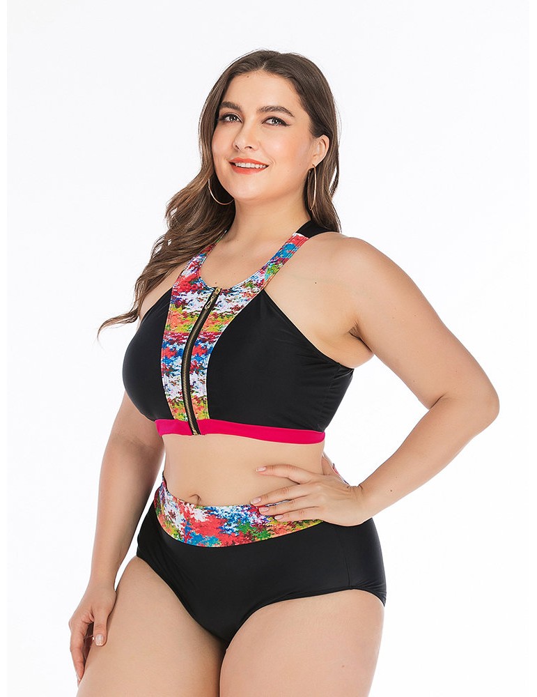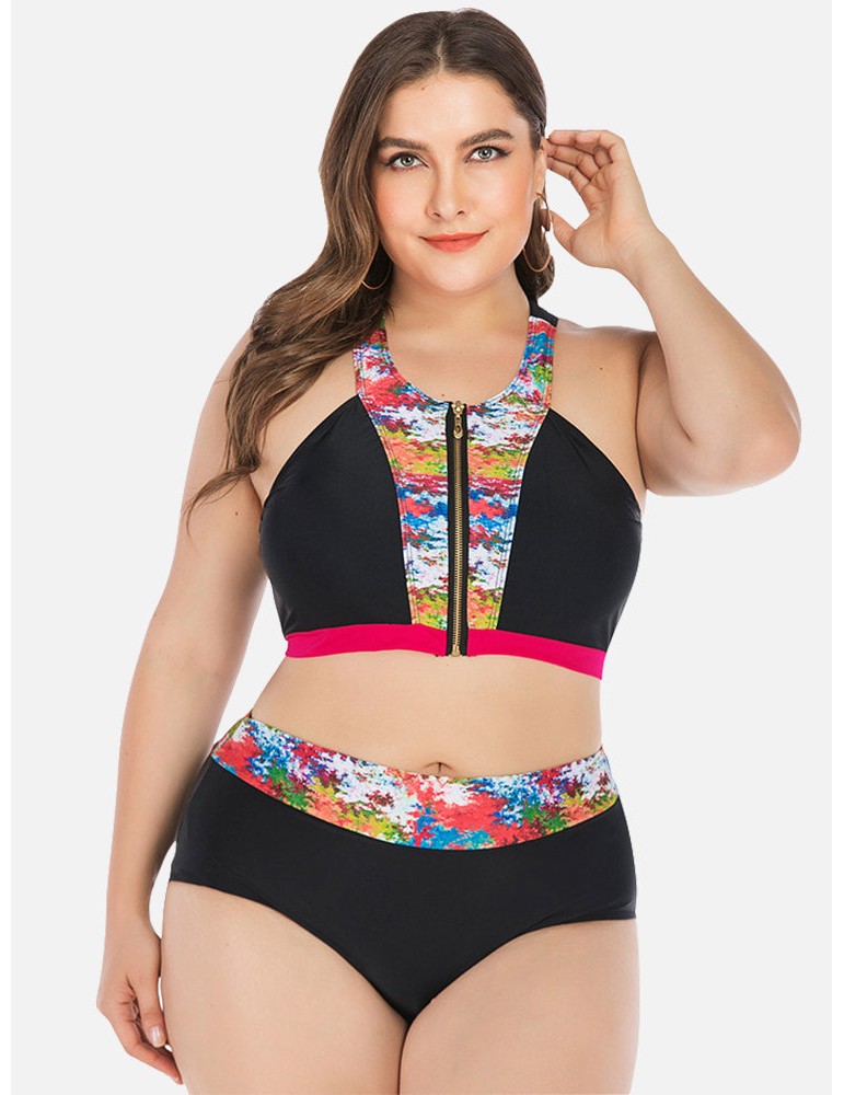 Plus Size High Waist Bikinis Women Swimsuits Zip Front Print Beachwear