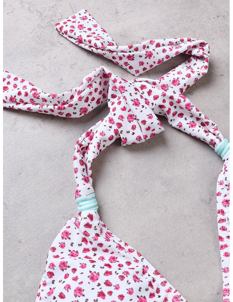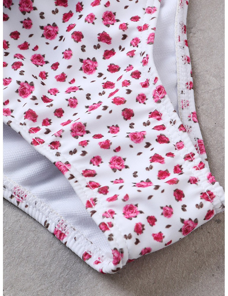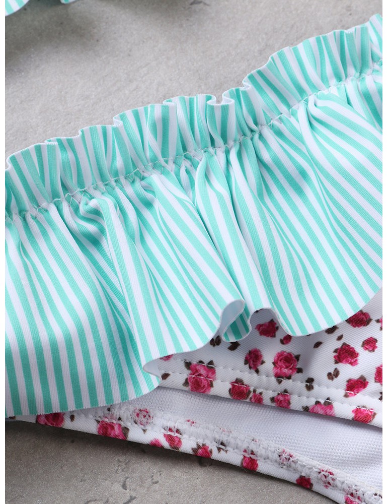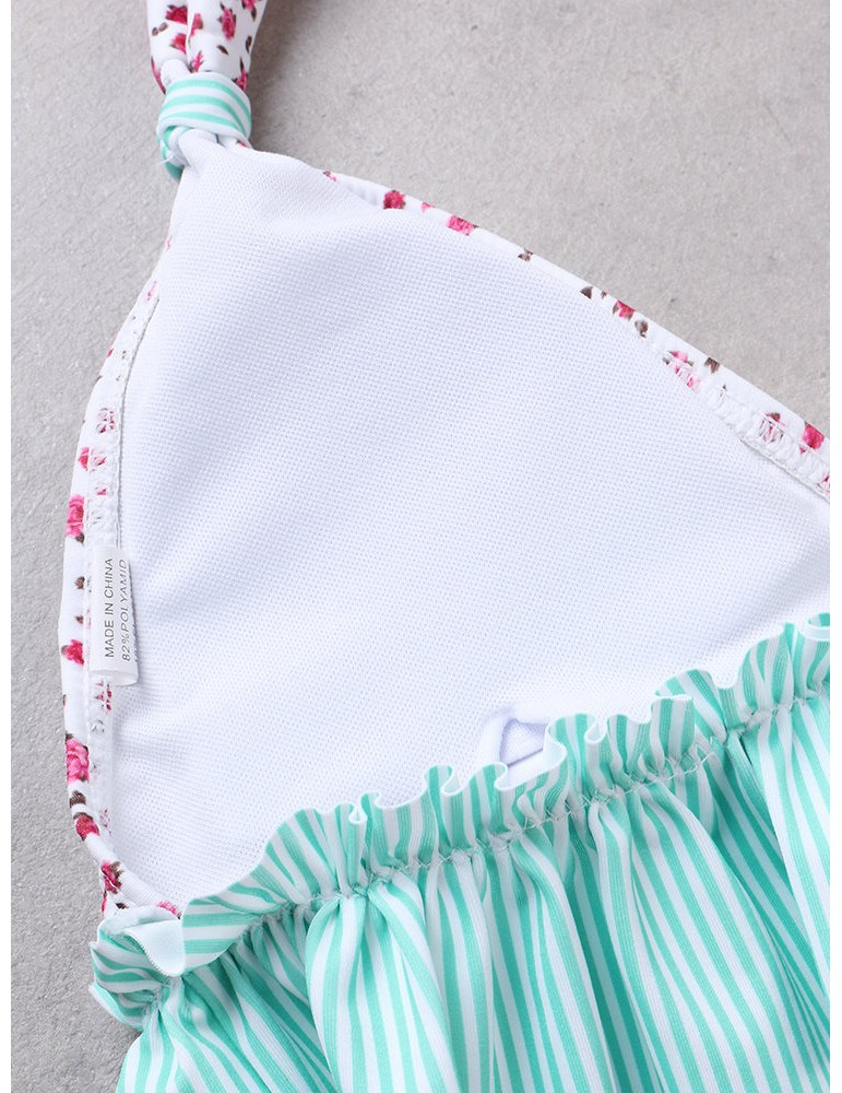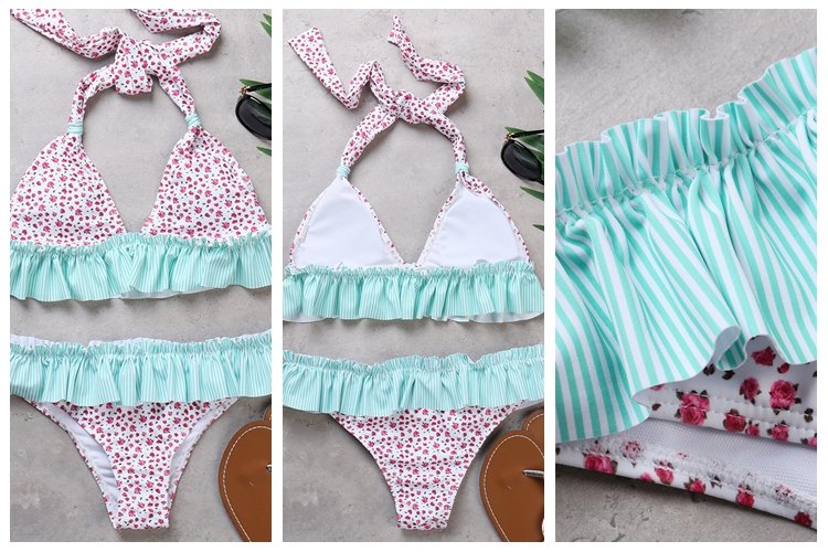 Plus Size Sexy Flounce Printed Halter String Backless Bikinis Swimsuits For Women