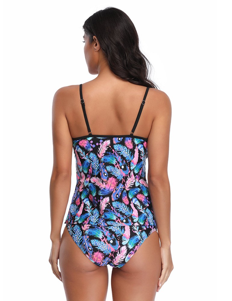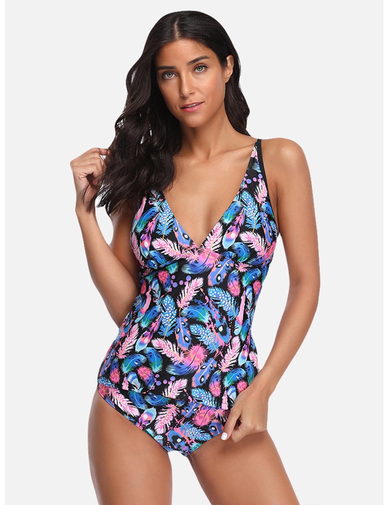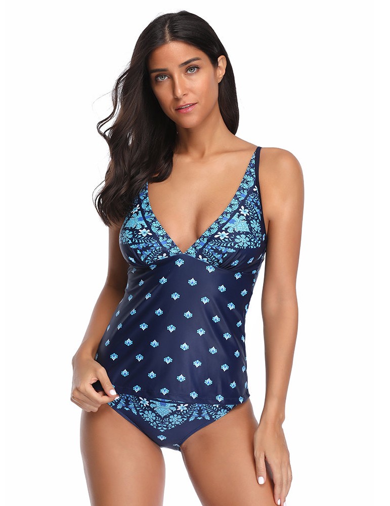Plus Size Print V Neck Tankinis Cover Belly Sling Women Swimsuits By Newchic