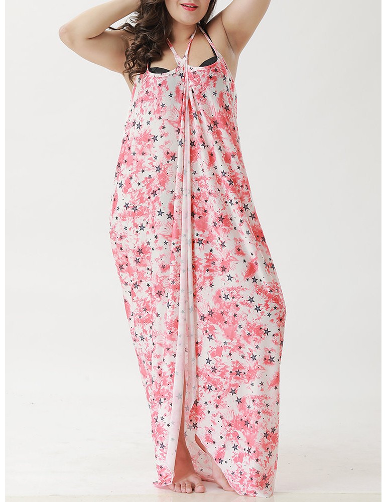 Plus Size Printed Multi-way Wear Shawl Beach Dress Cover-Ups Swimwear