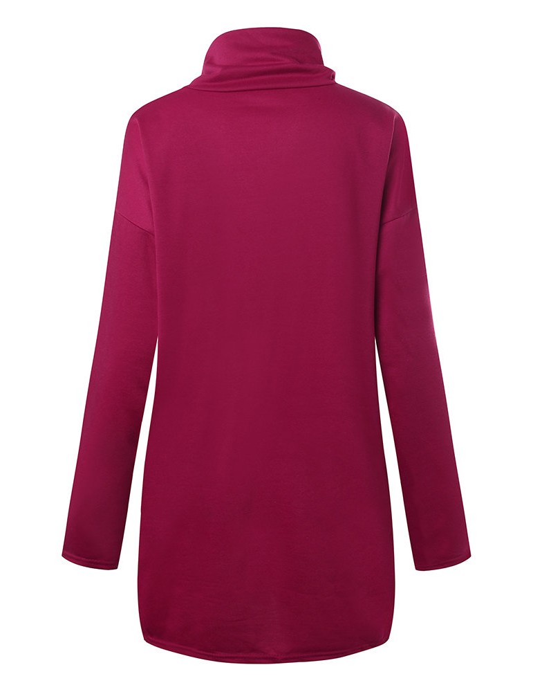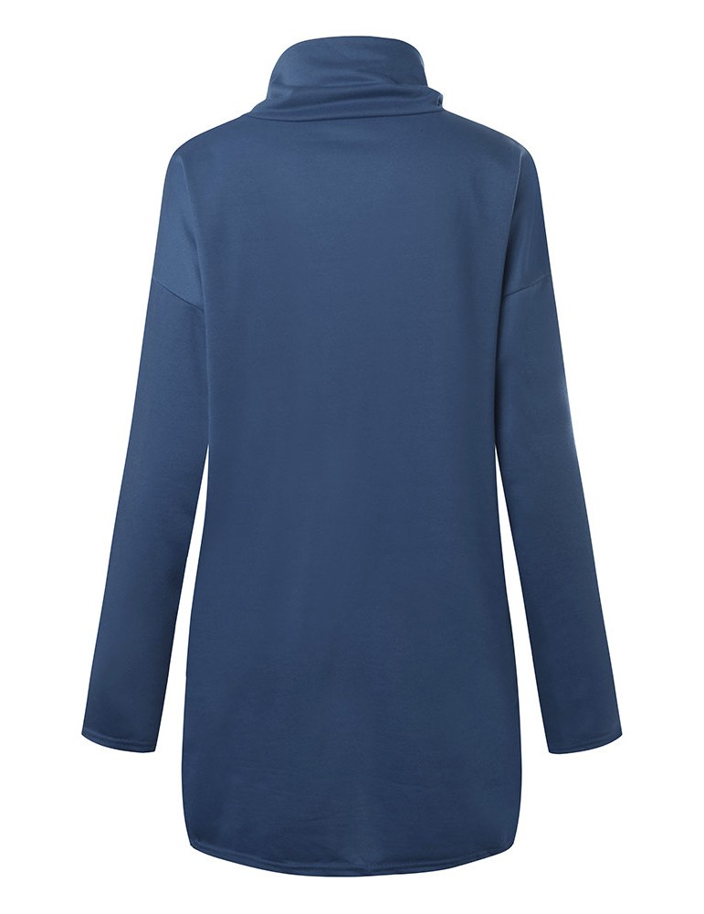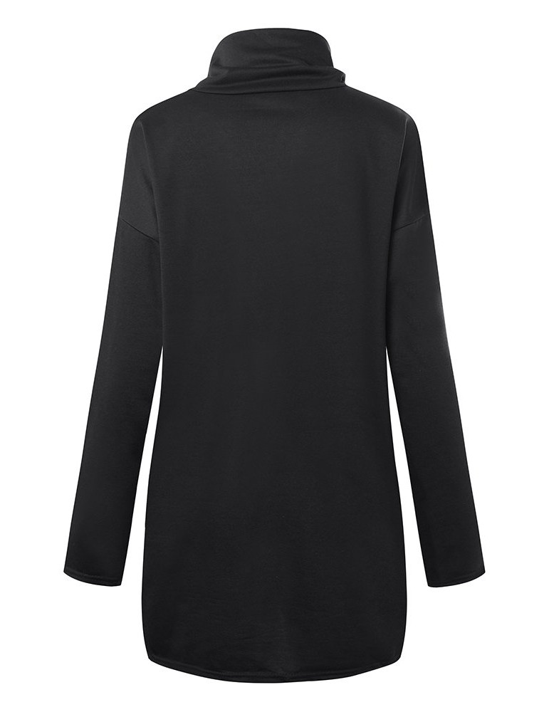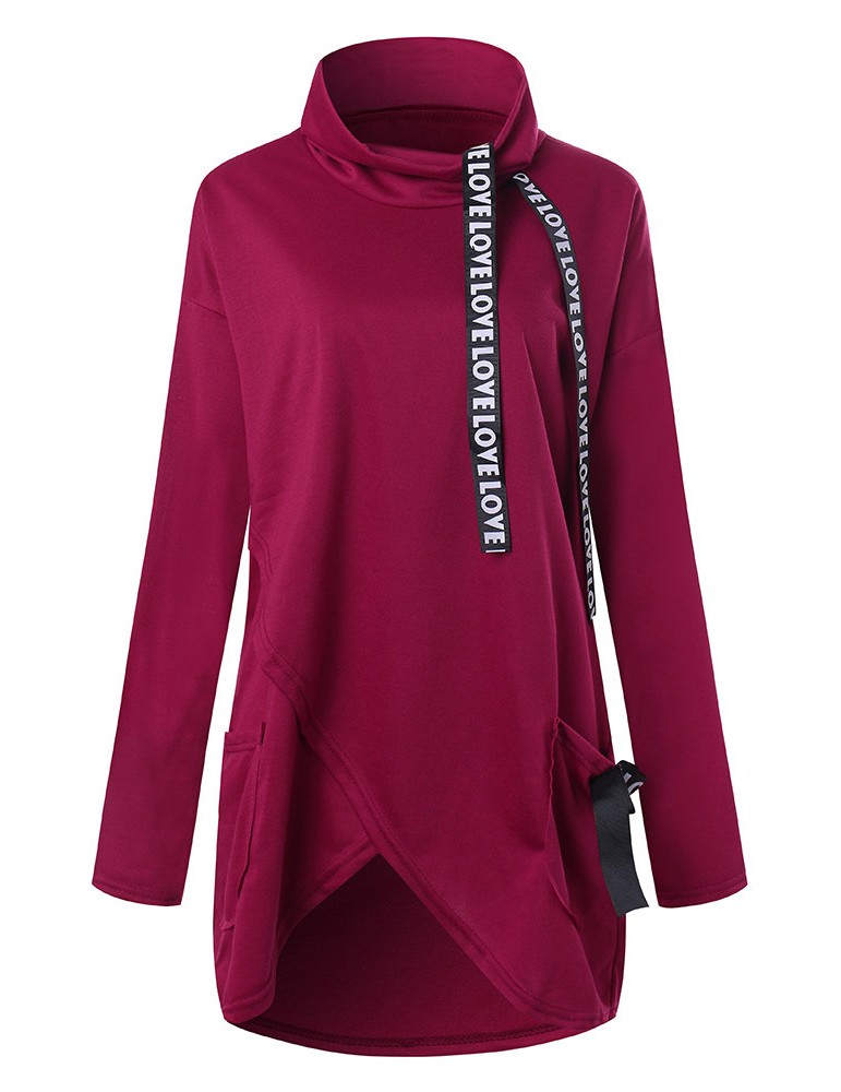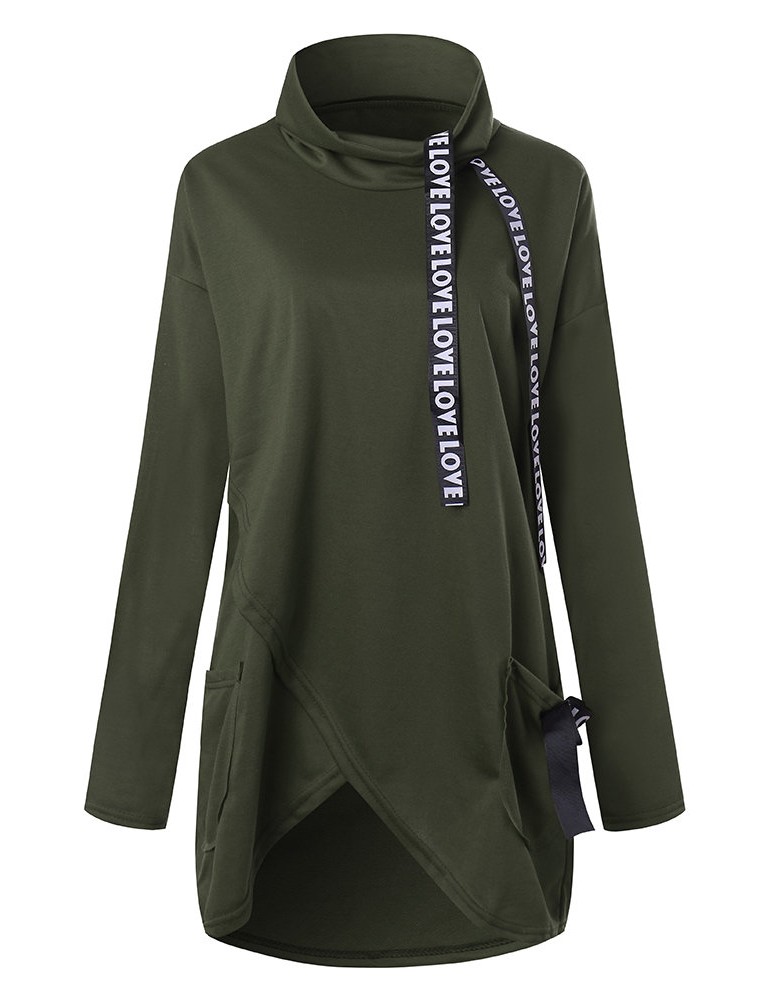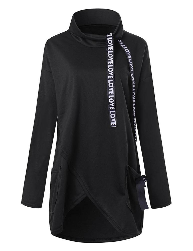 Casual Women Turtleneck Letters Print Irregular Sweatshirts
