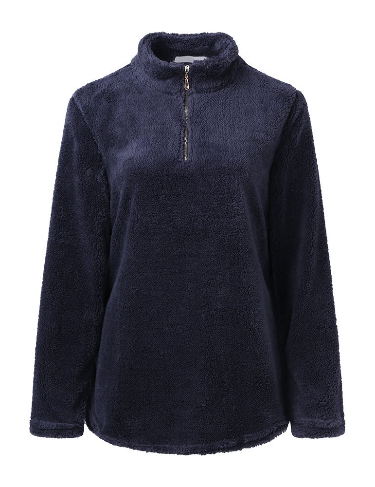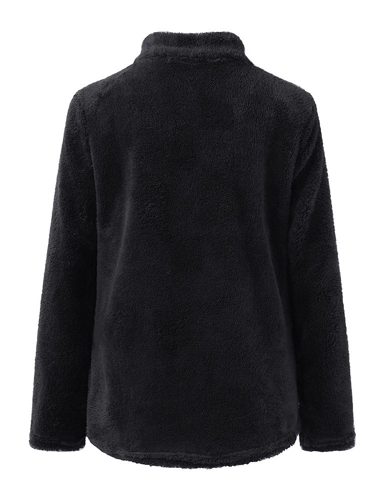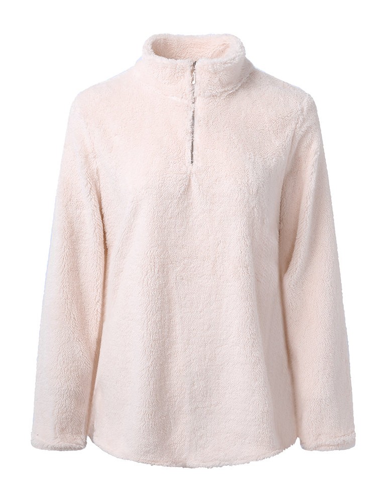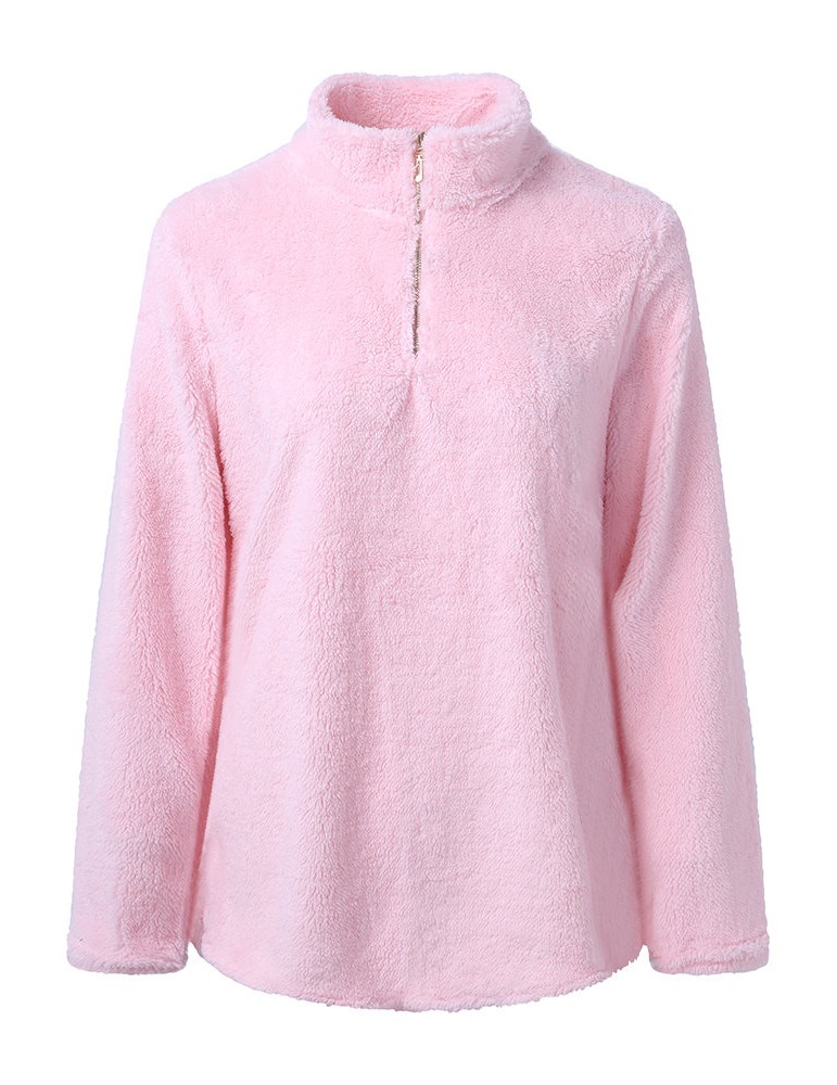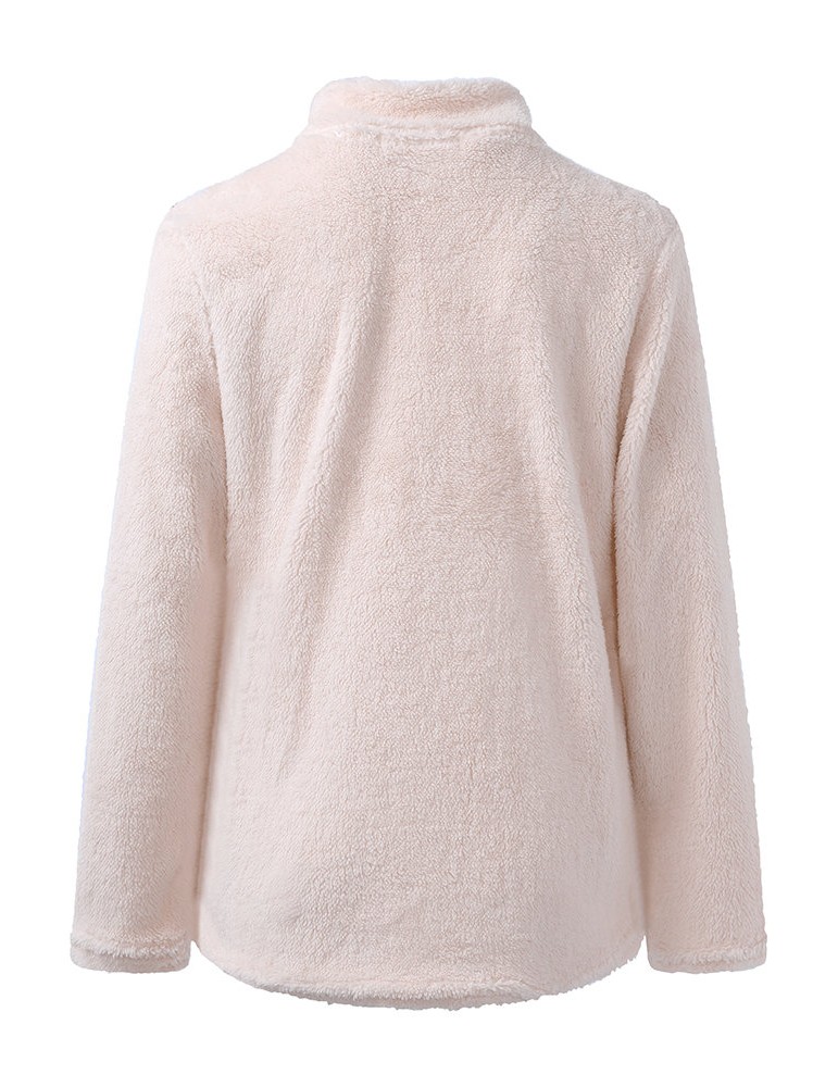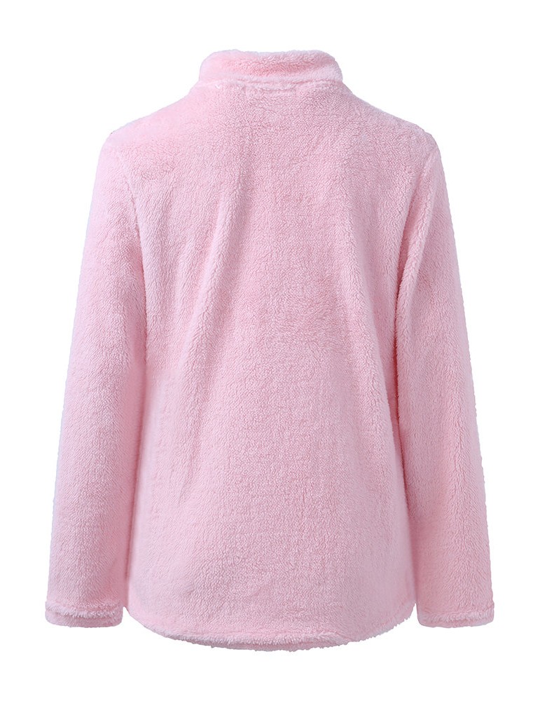 Casual Basic Women High Collar Fleece Sweatshirts