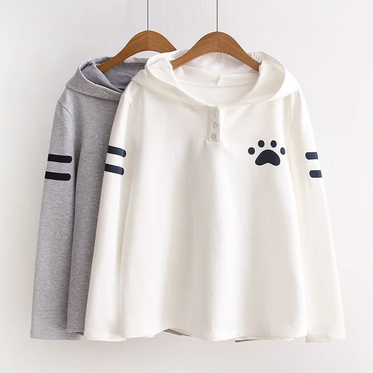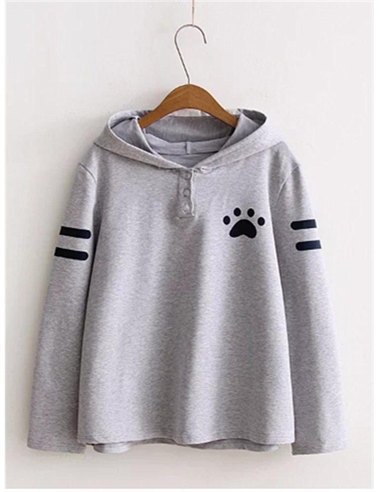 Casual Cute Hooded Dog Footprint Women Hoodies