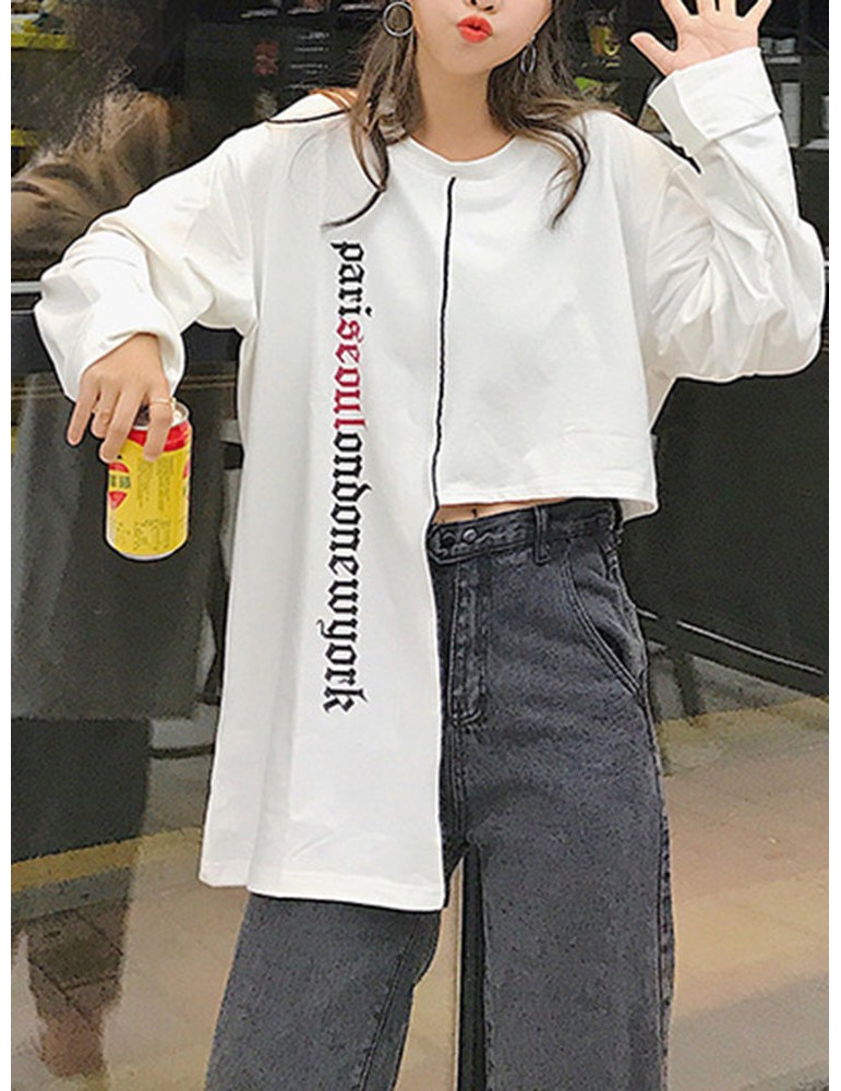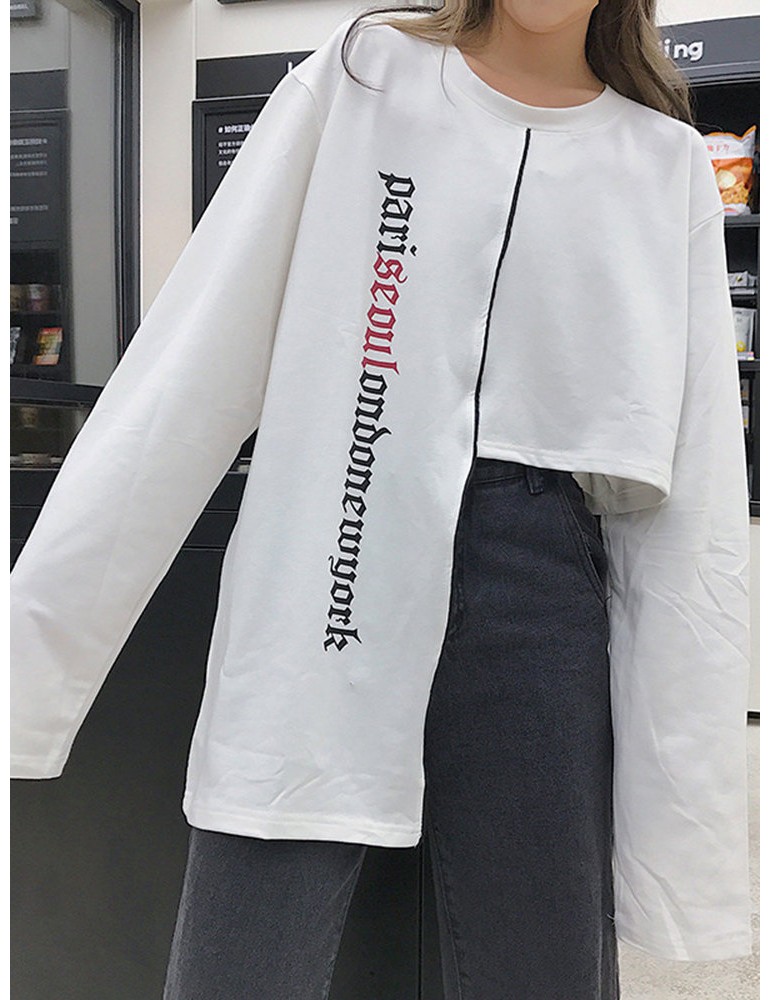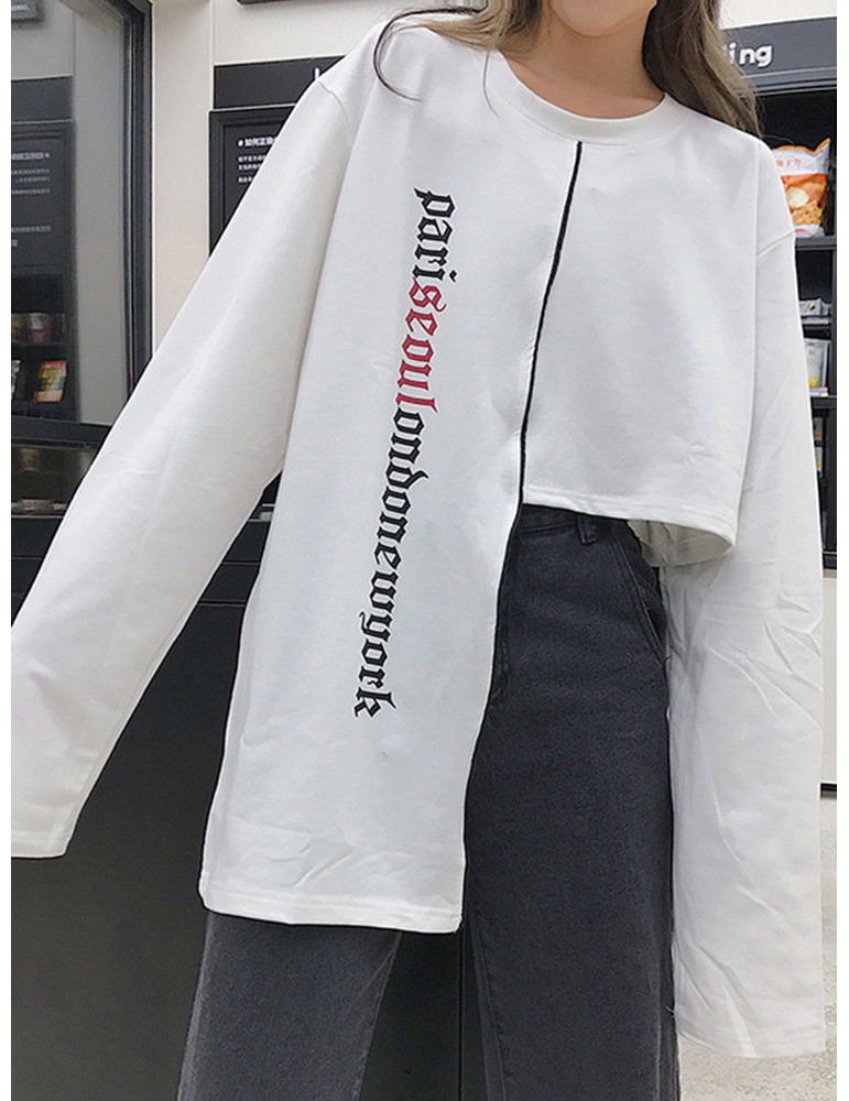 Irregular Letters Printed Long Sleeve Sweatshirt