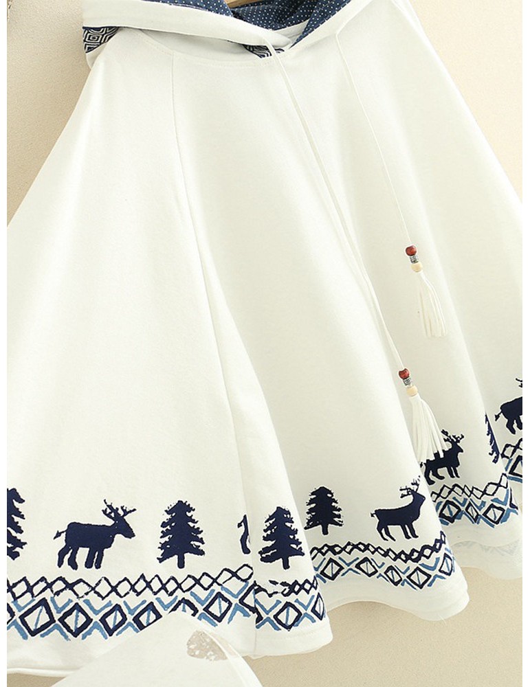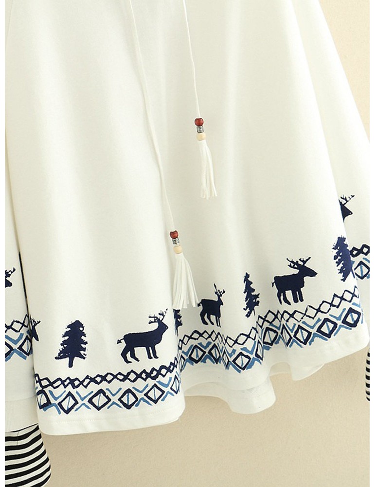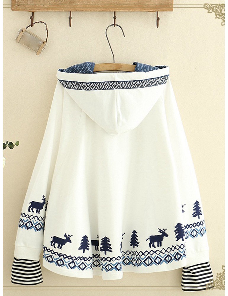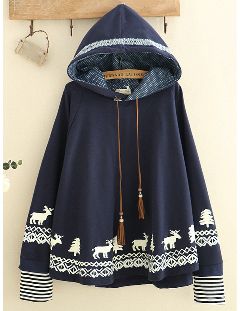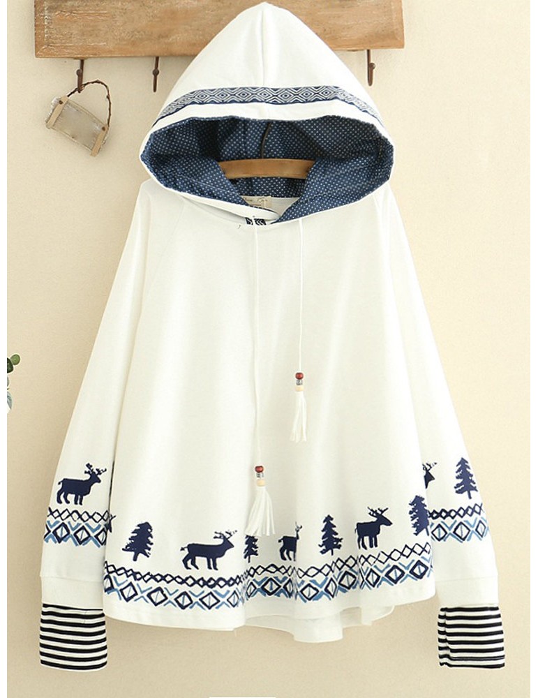 Women Deer Printed Hooded Long Sleeve Cute Sweatshirts