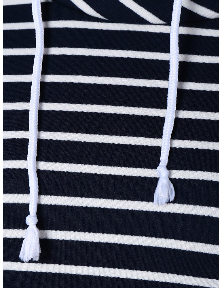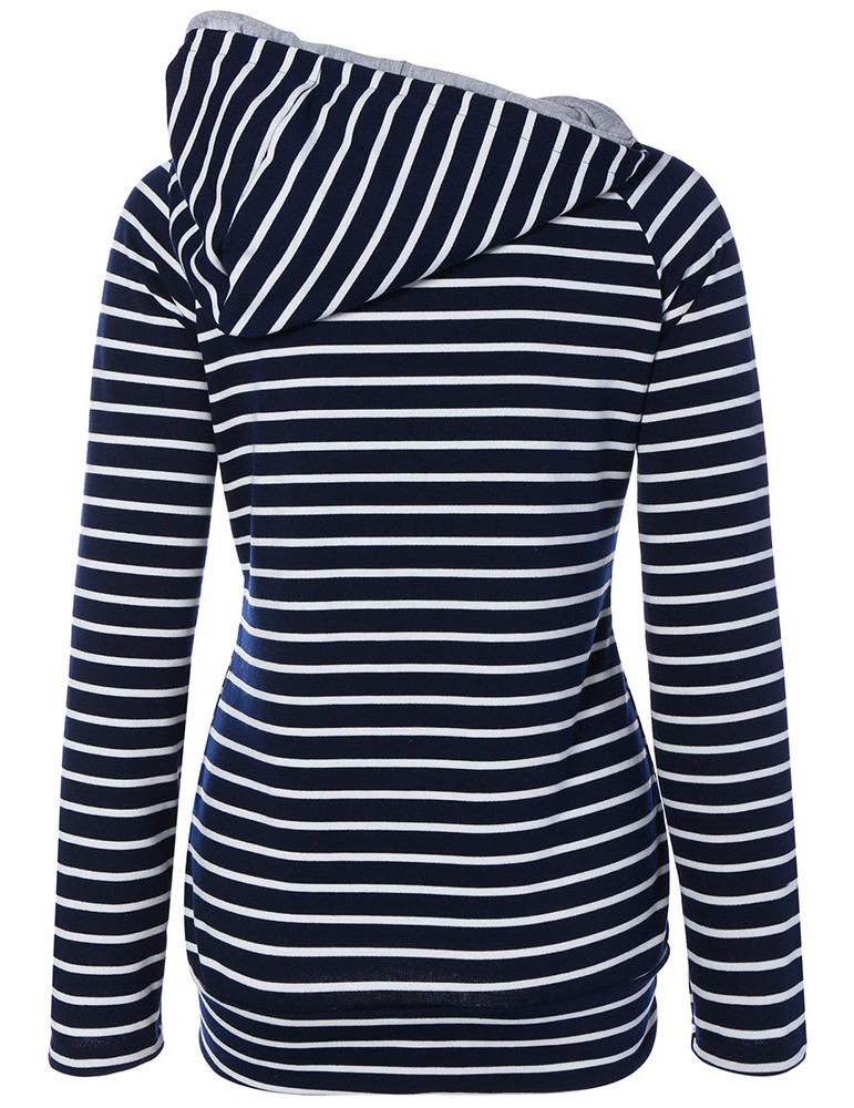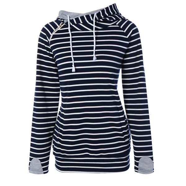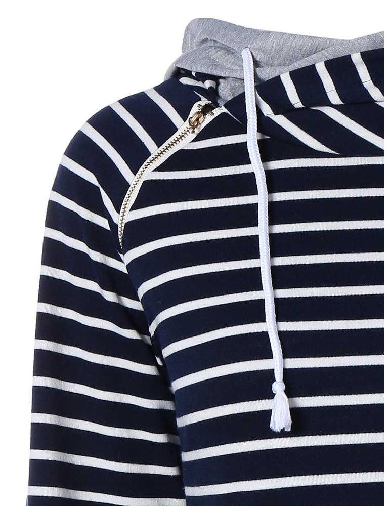 Casual Stripe Patchwork Zipper Hooded Long Sleeve Women Hoodies