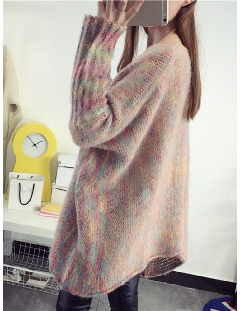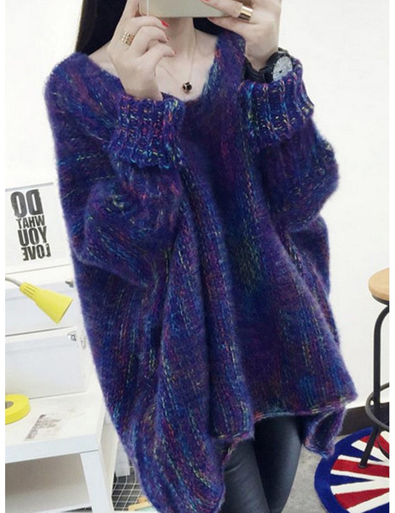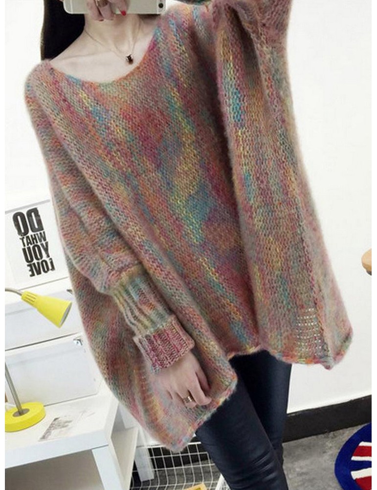 Multi-color Long Sleeve Loose Casual Sweater