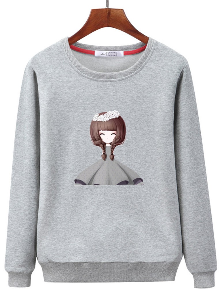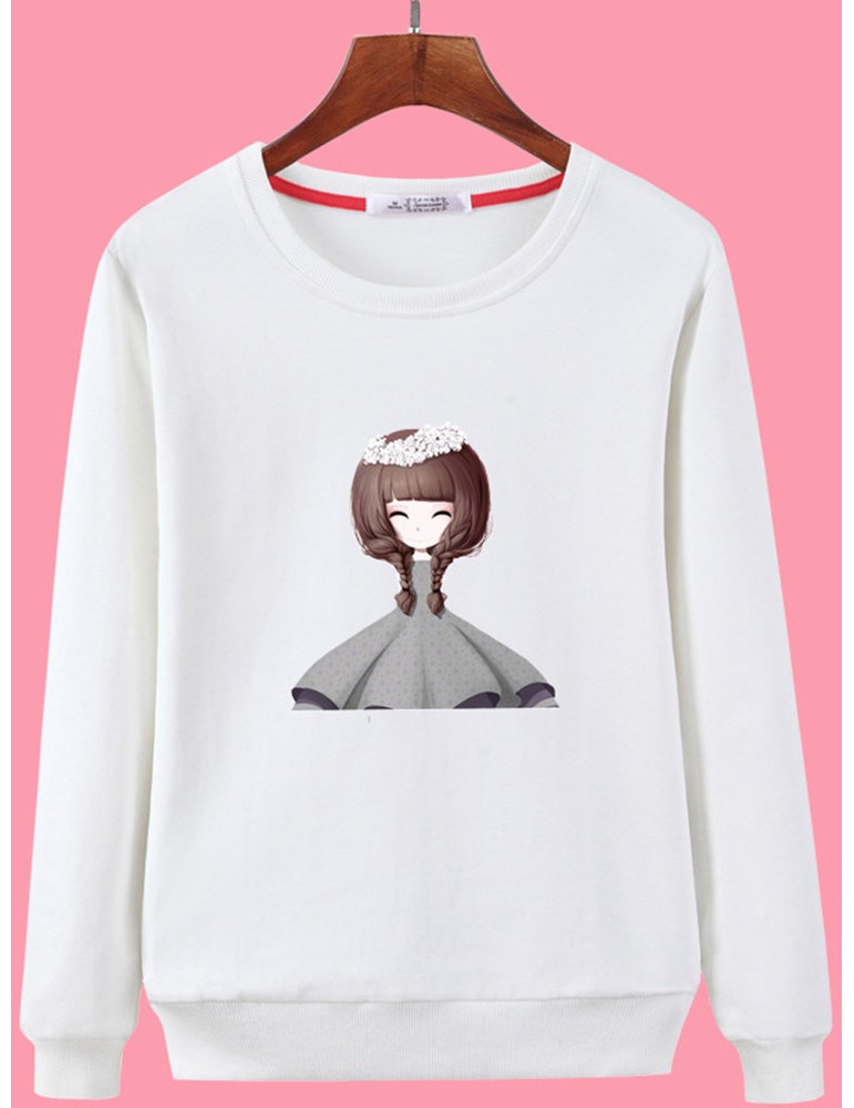 Print Girls Long Sleeve Crew Neck Sweatshirt