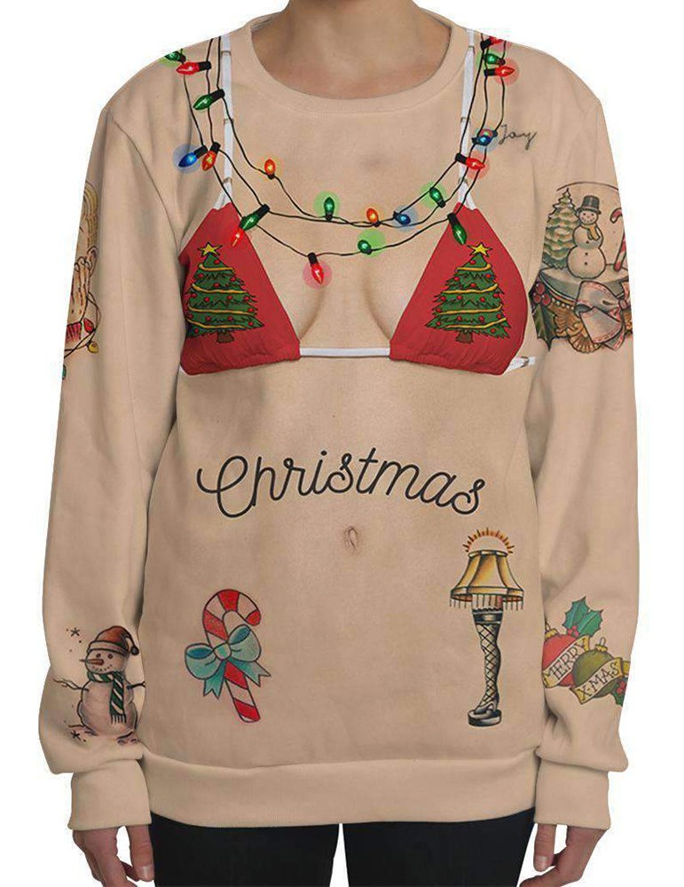Casual Christmas Cartoon Print Long Sleeve Sweatshirt