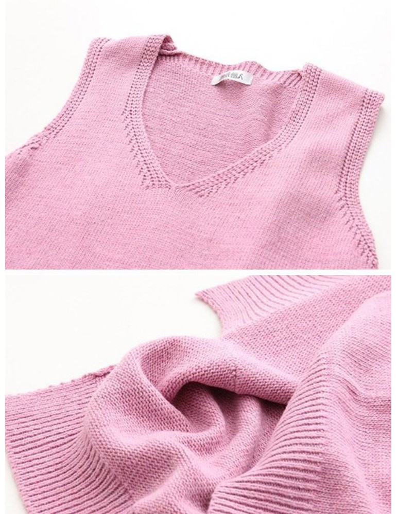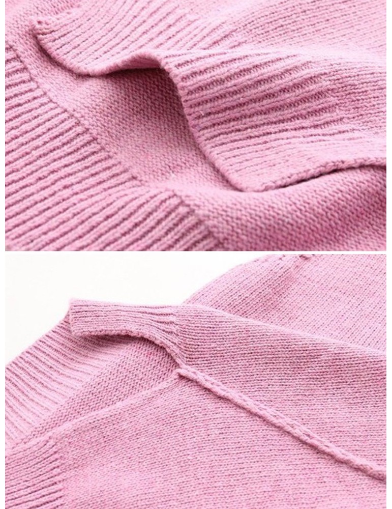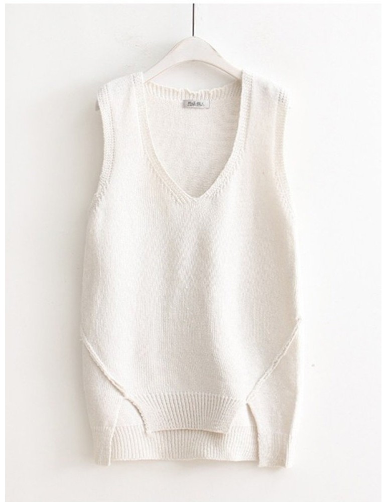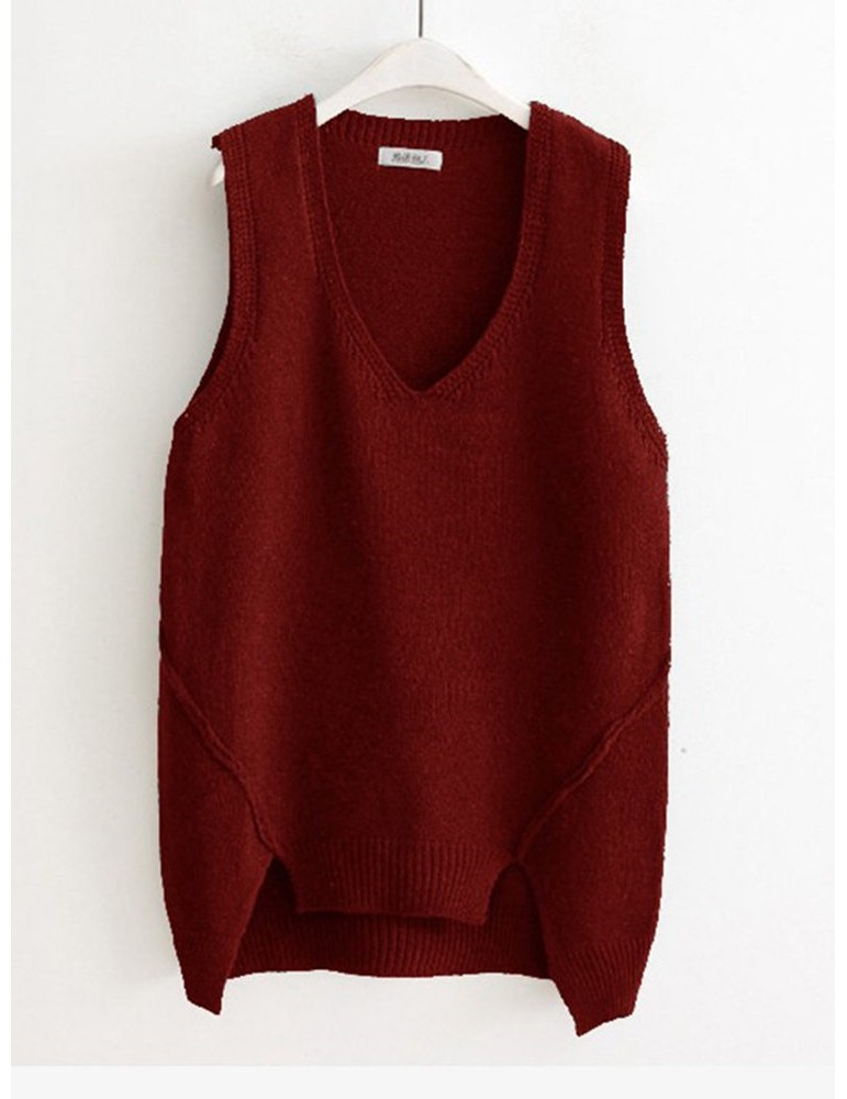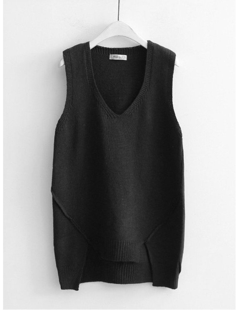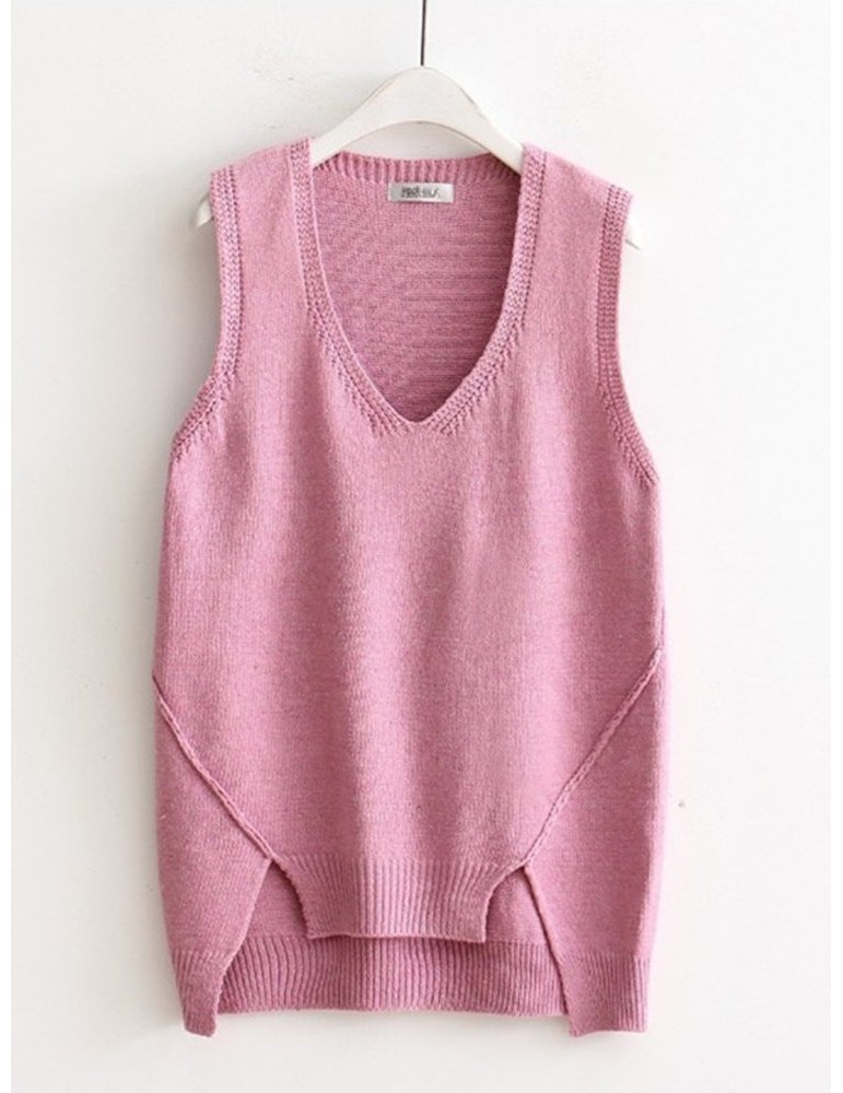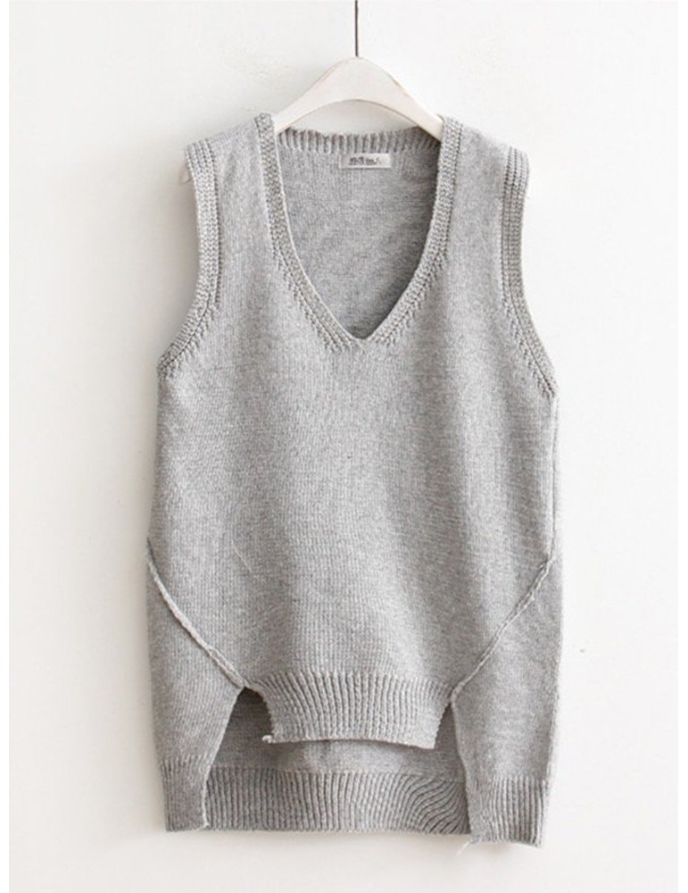 Women Casual Knit Solid Color V-neck Irregular Hem Sweater