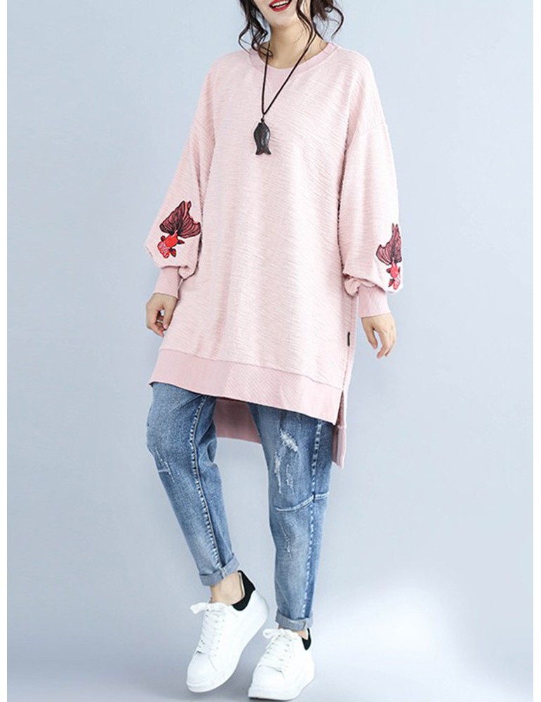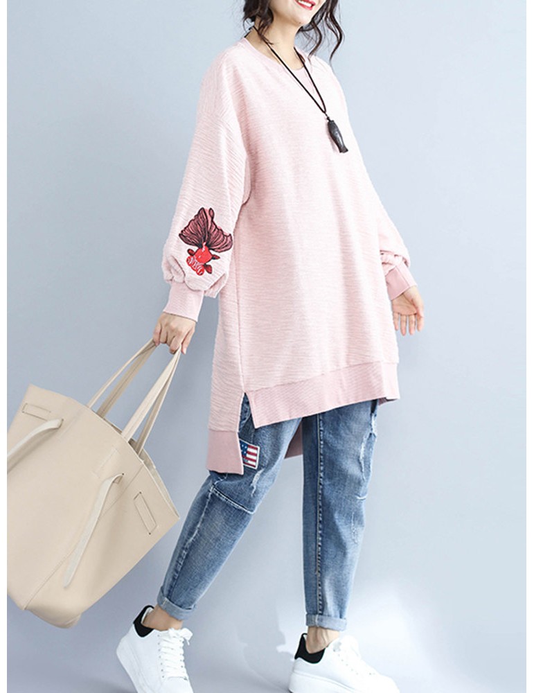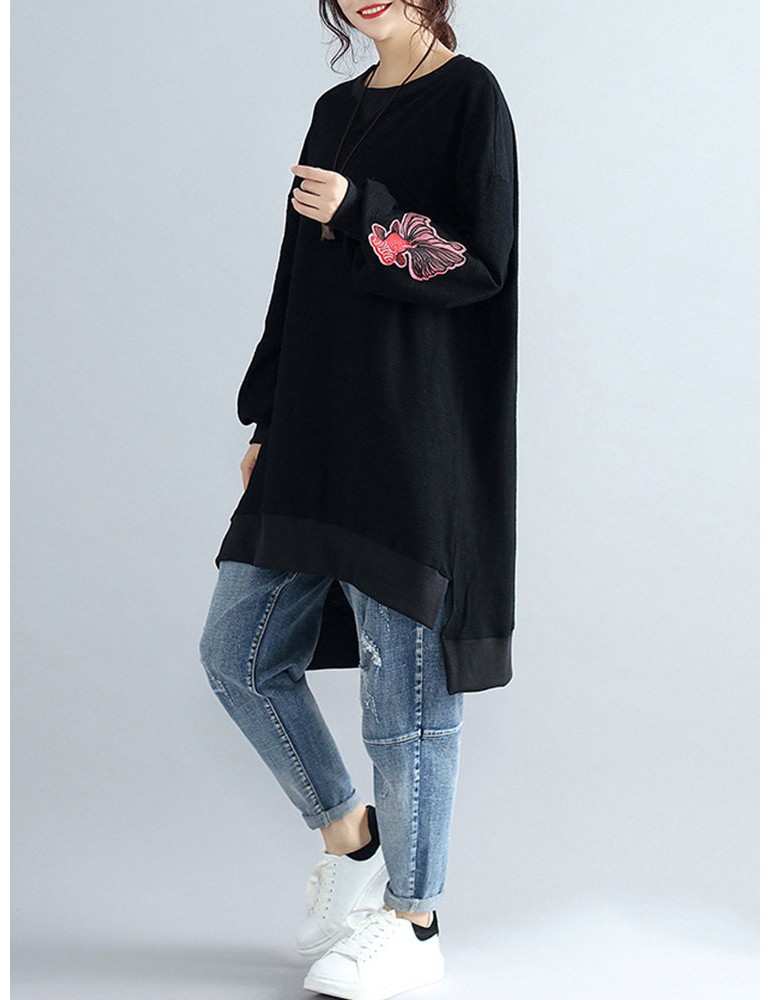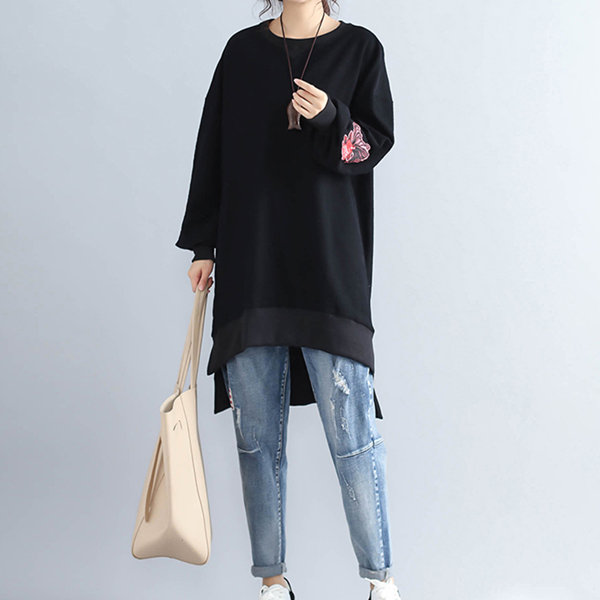 Casual Women Long Sleeve Embroidery Sweatshirts