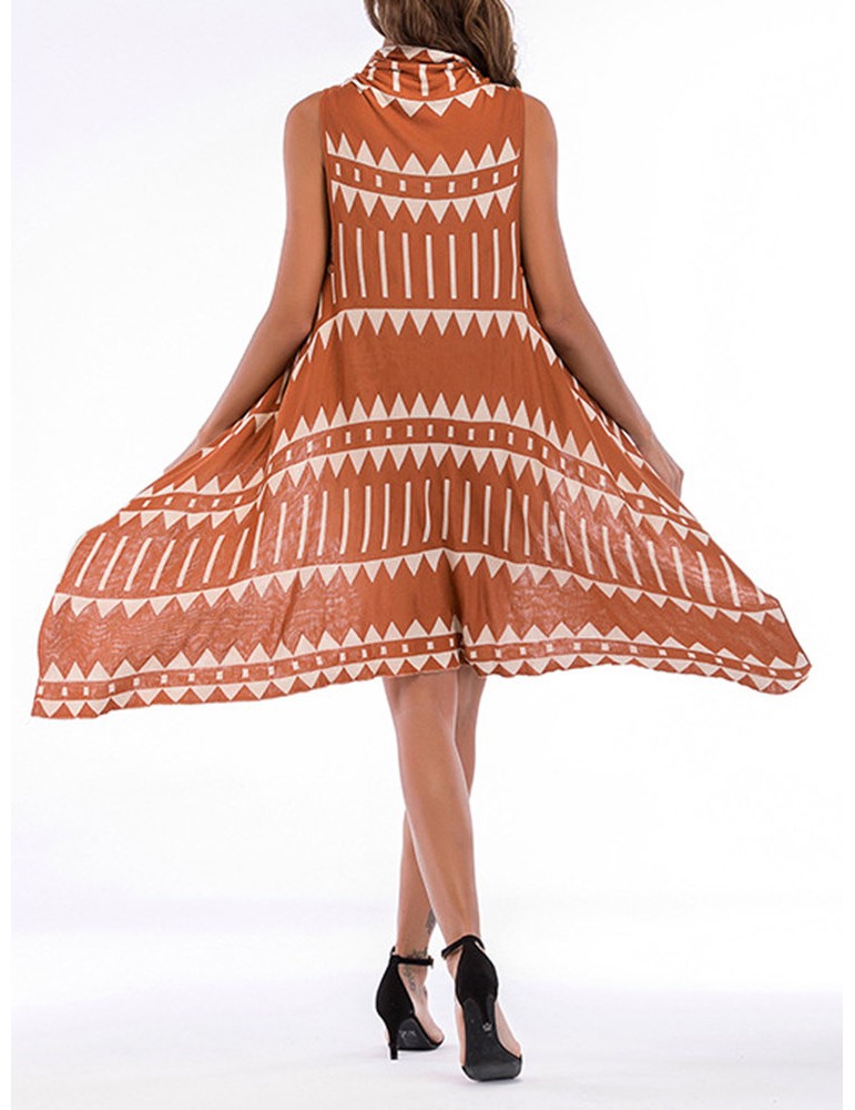 Printed Geometry Knitted Irregular Sleeveless Loose Cardigans