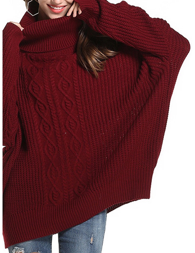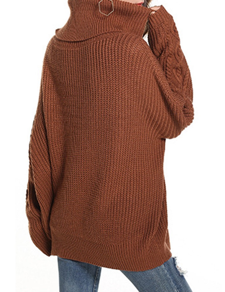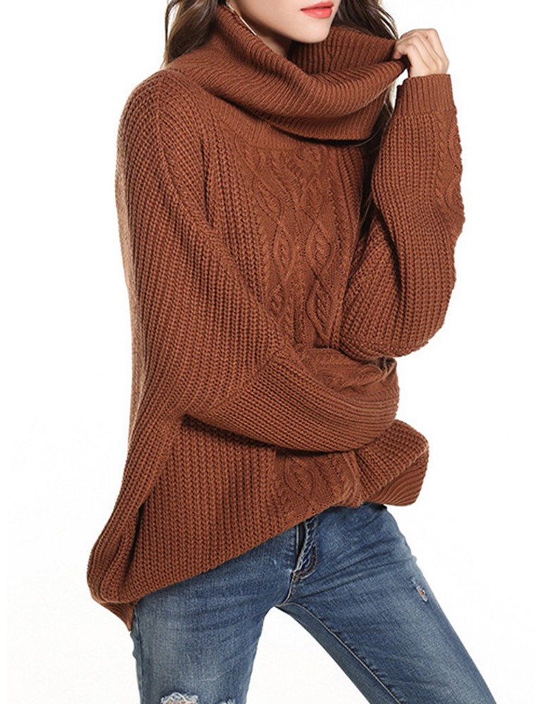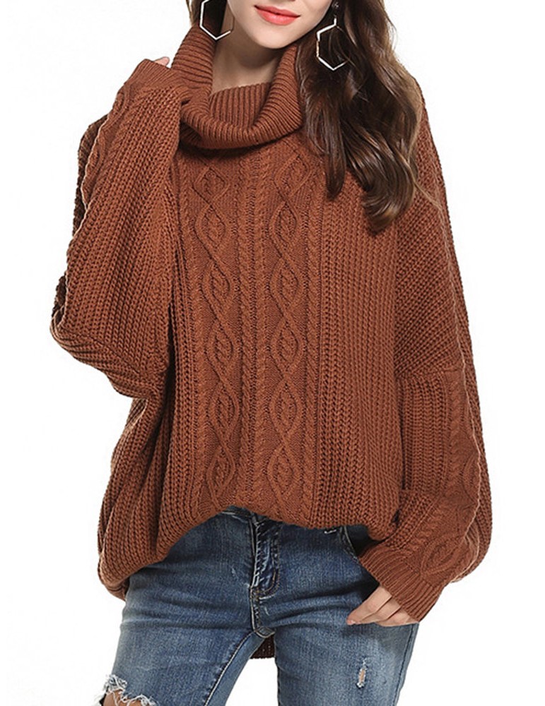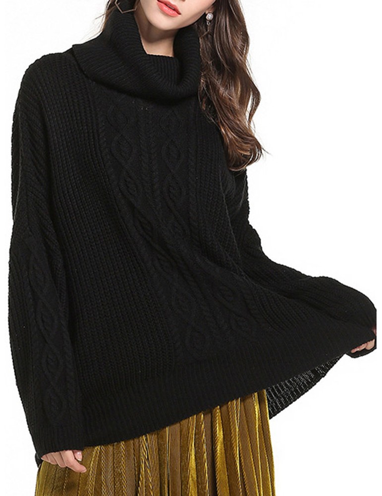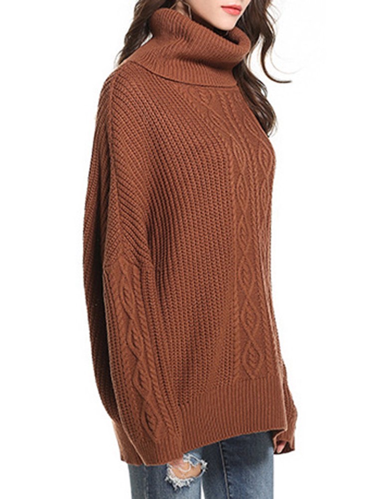 Twist Weave Solid Color Turtleneck Loose Casual Sweaters