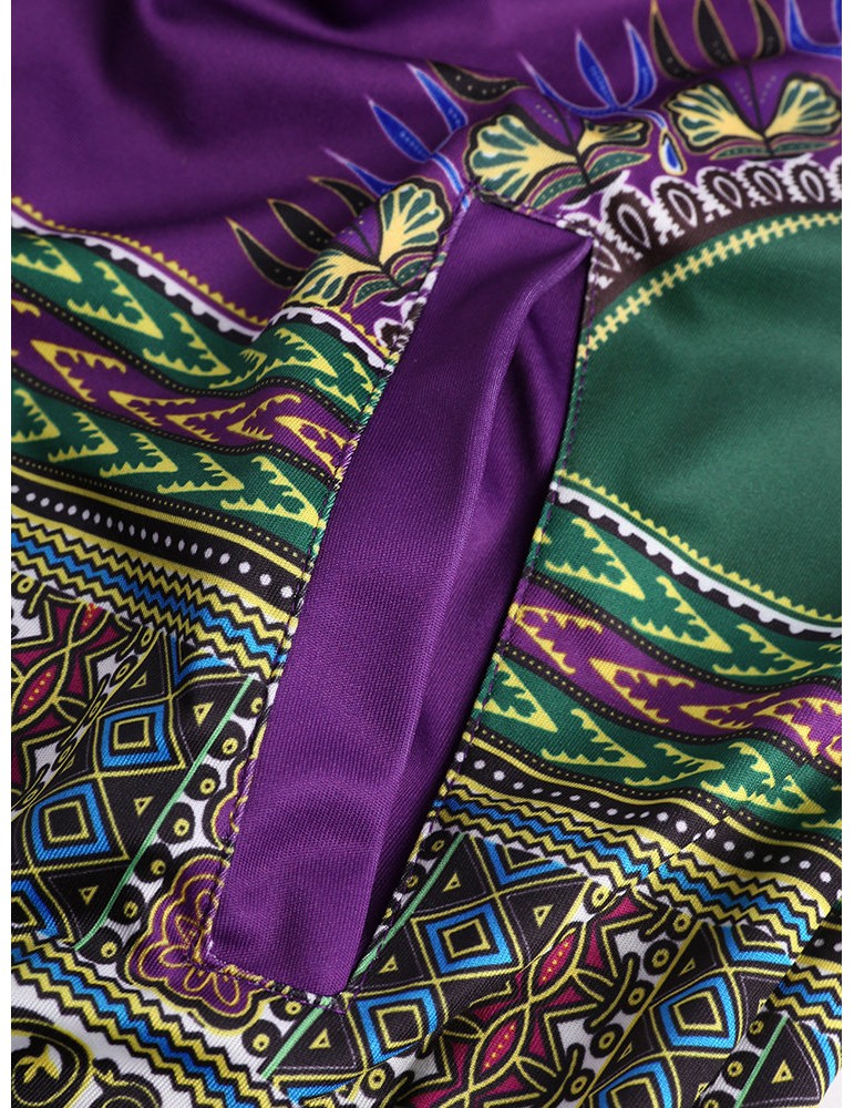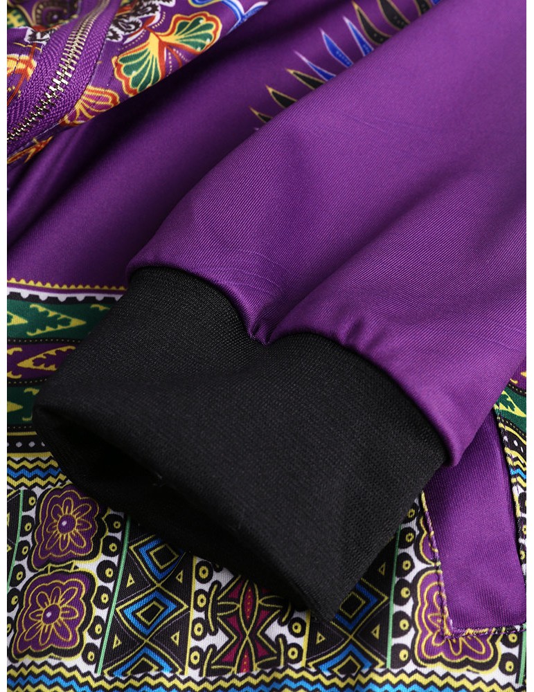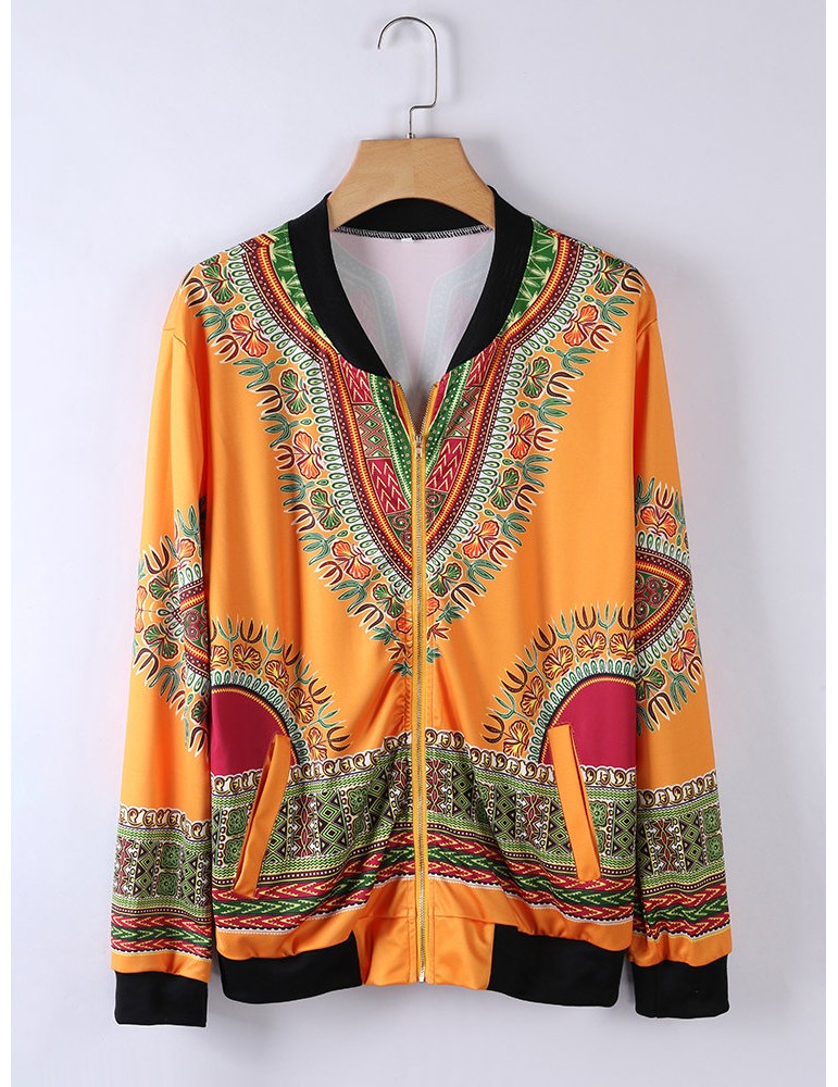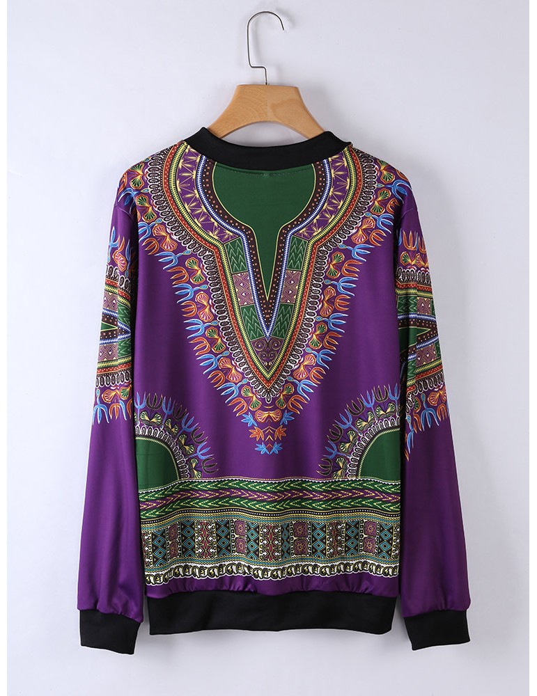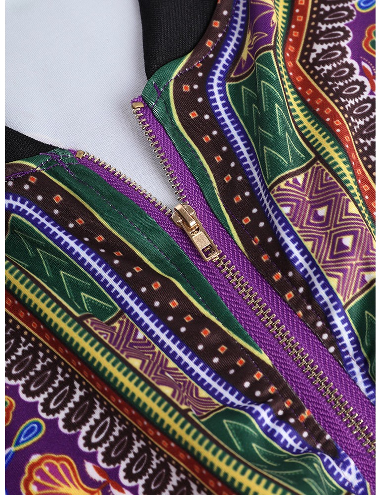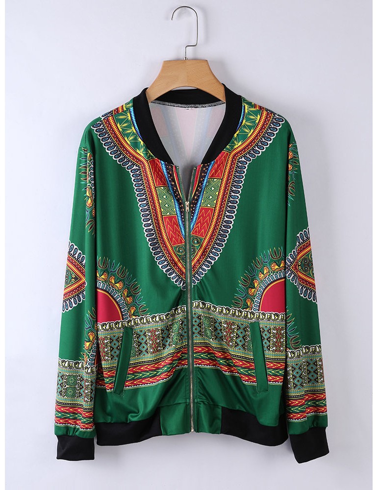 Ethnic Printed Long Sleeve Zipper Fly Thin Jackets