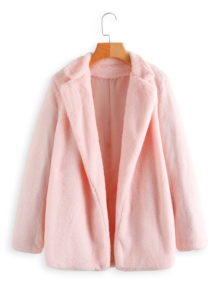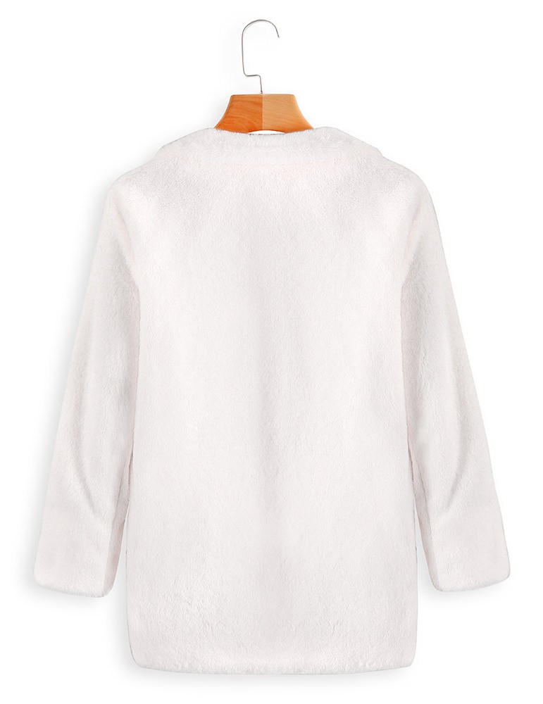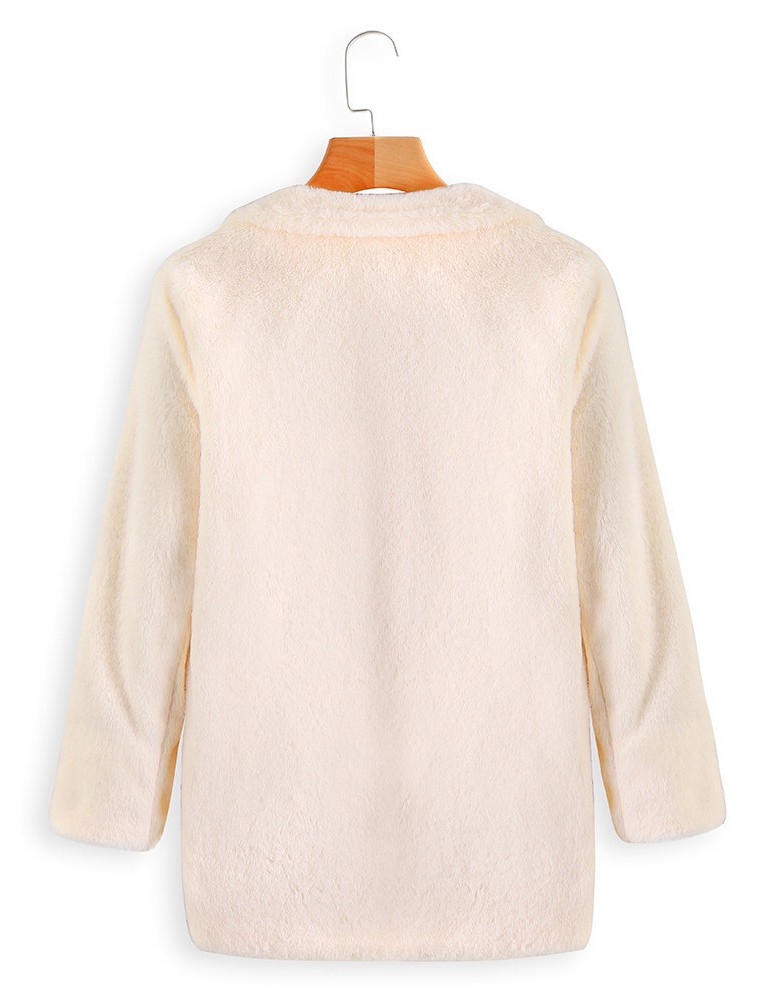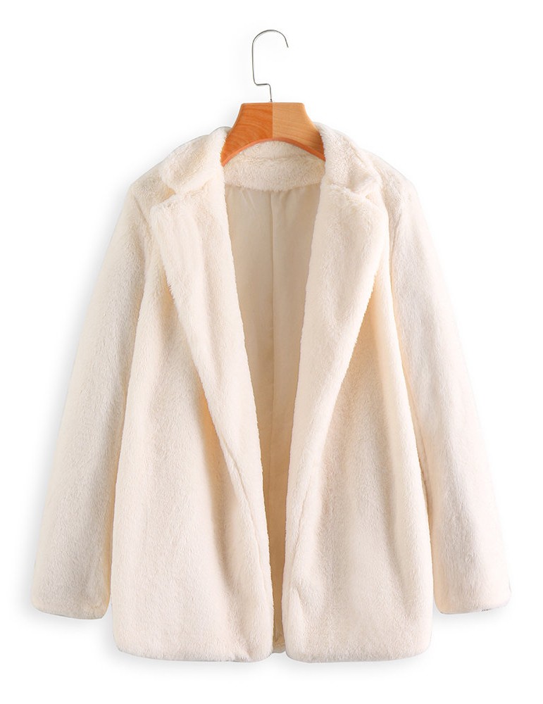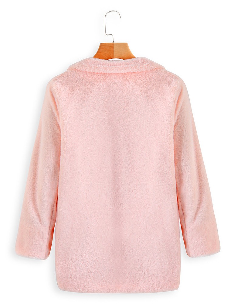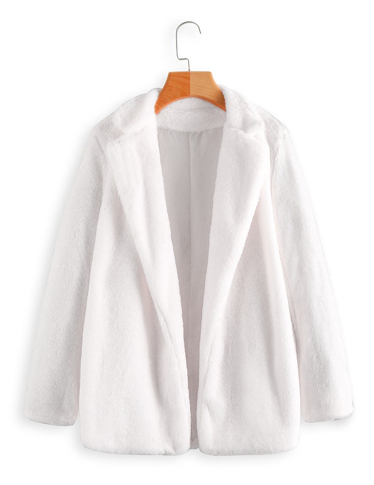 Faux Fur Stand Collar Solid Color Long Sleeve Casual Coat