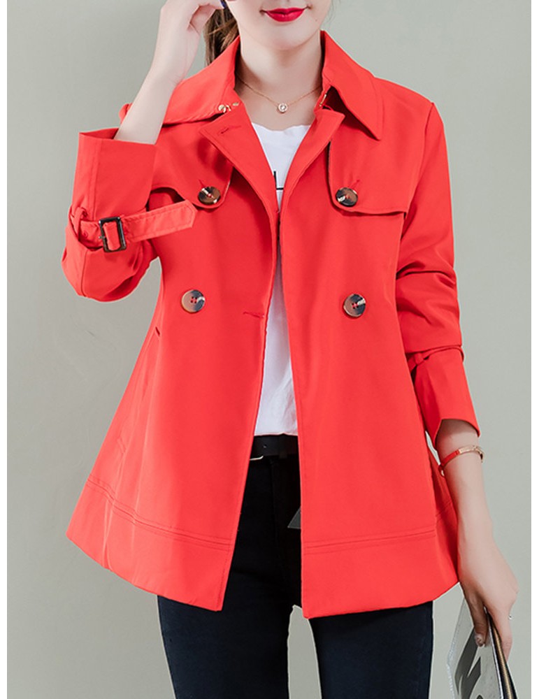 Button Solid Color Long Sleeve Lapel Casual Jacket