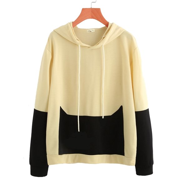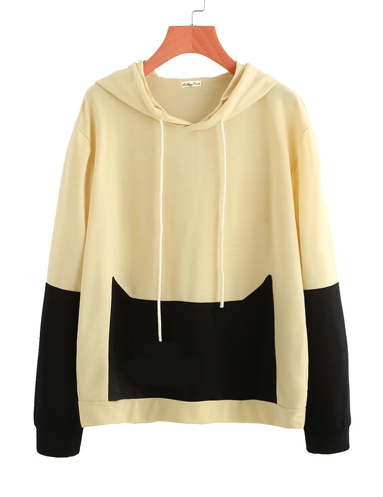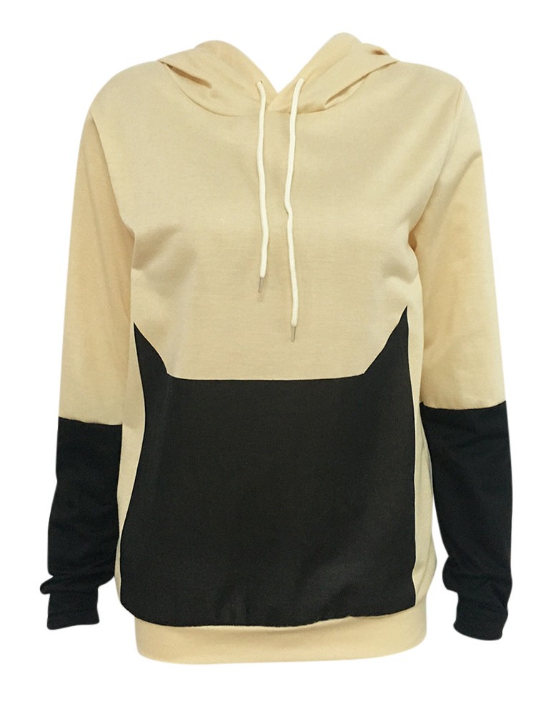 Casual Print Patchwork Hooded Long Sleeve Women Hoodies