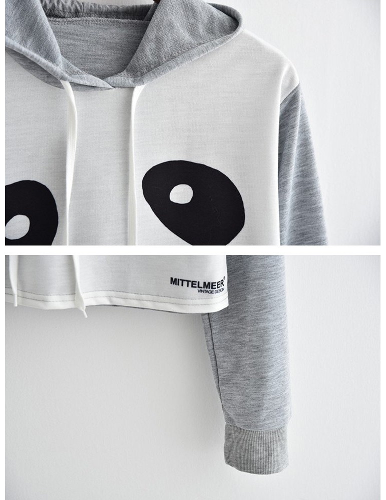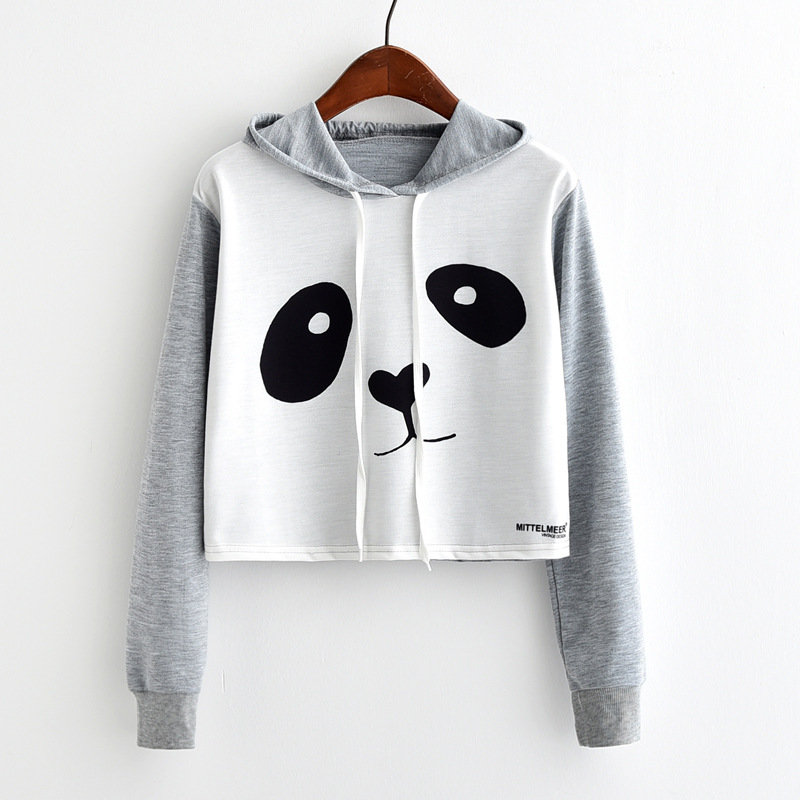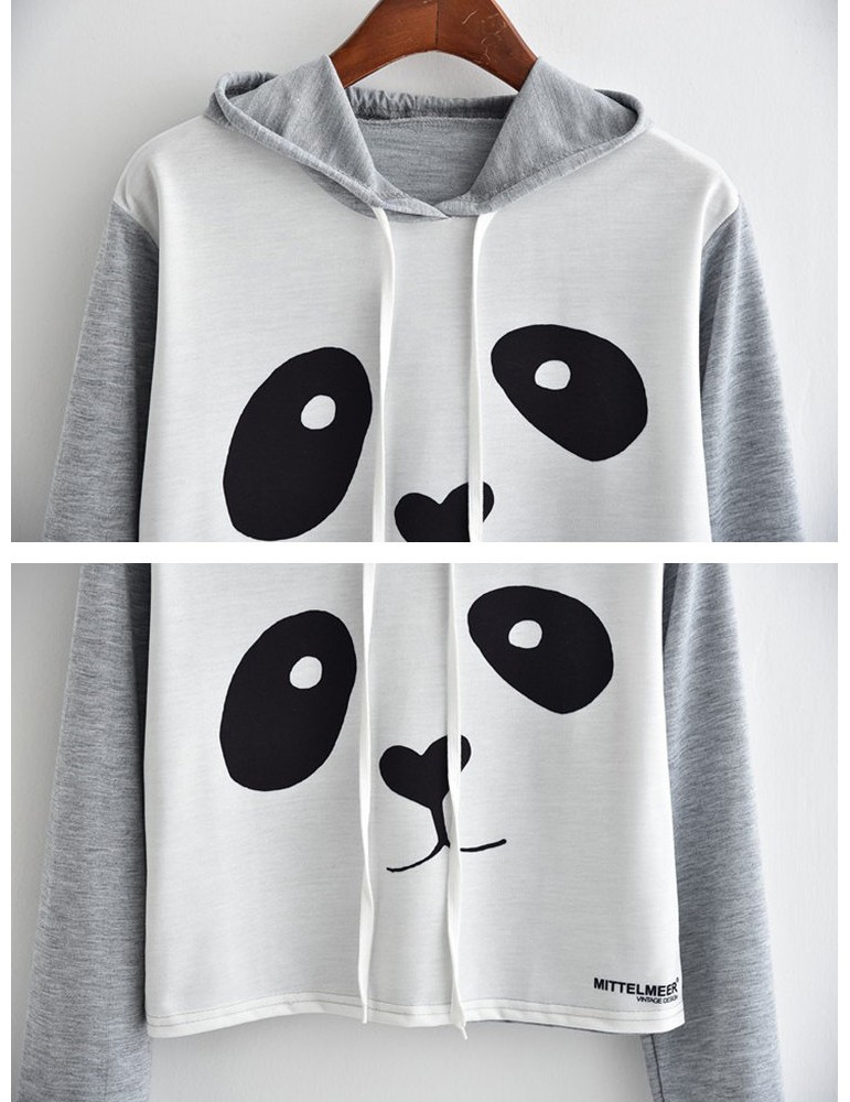 Casual Panda Pattern Patchwork Hooded Long Sleeve Women Hoodies