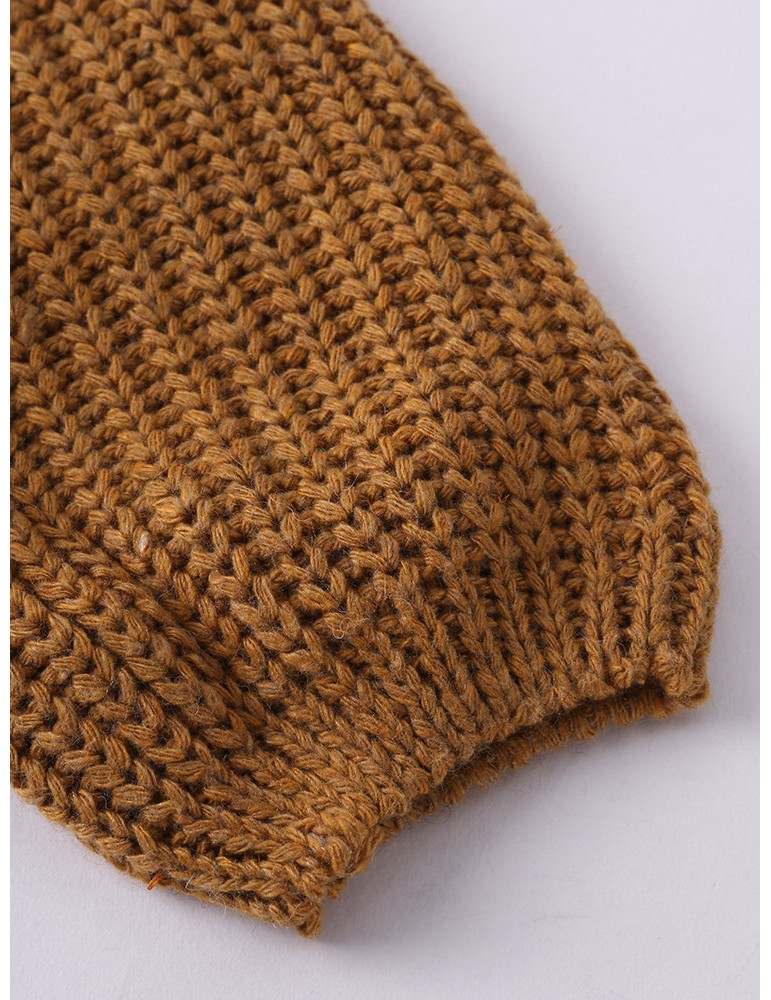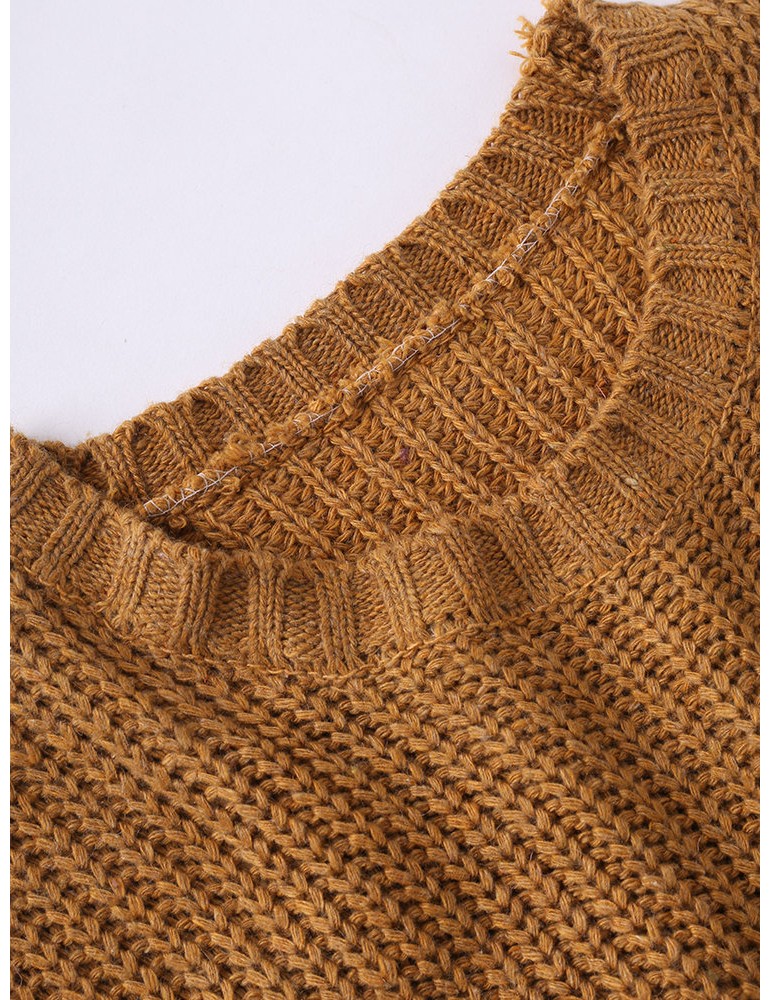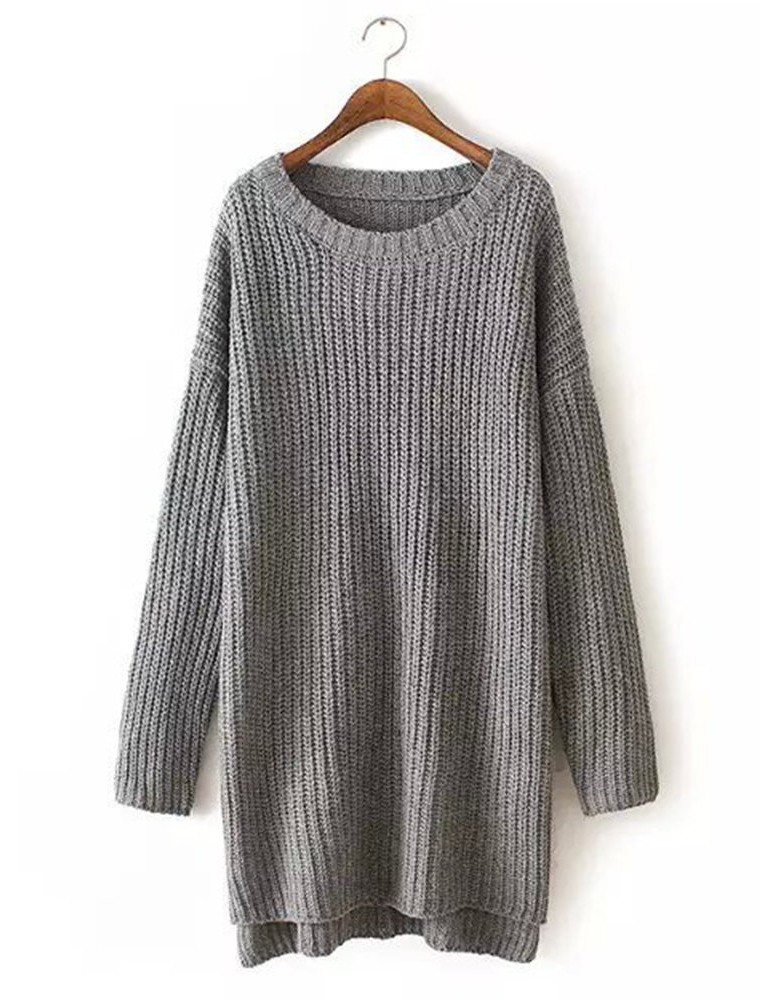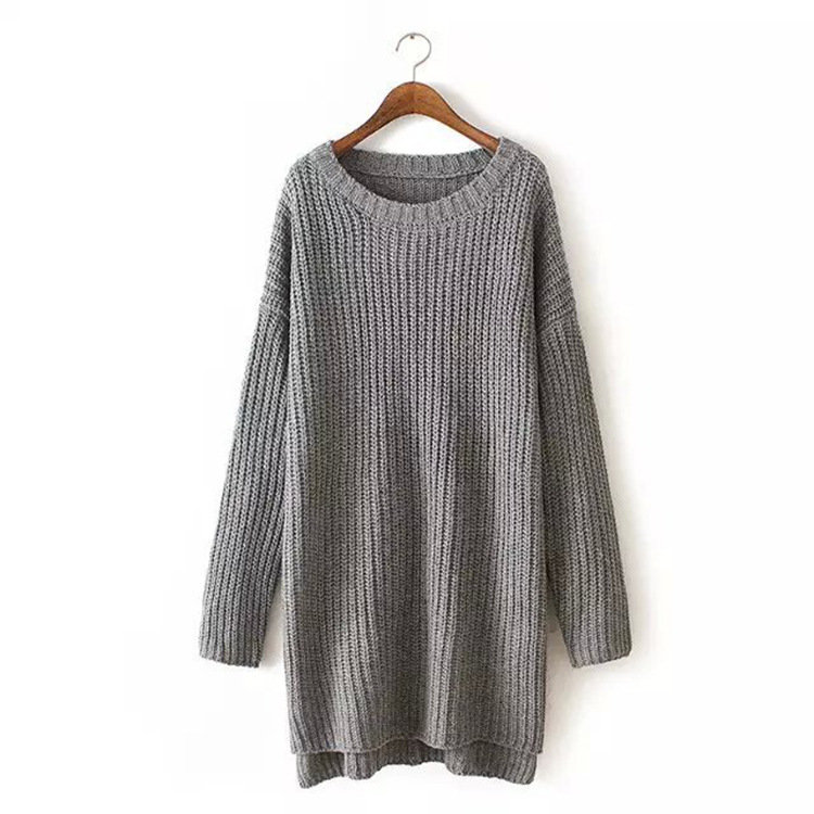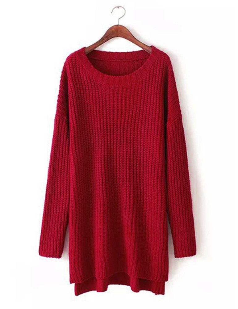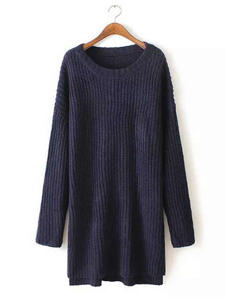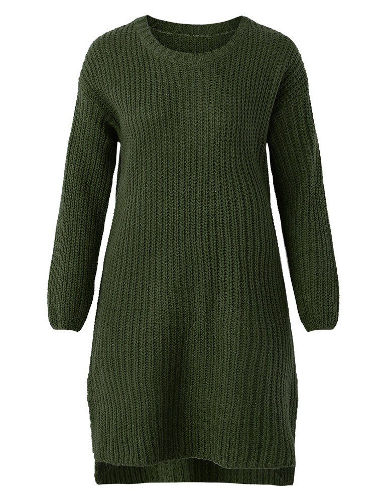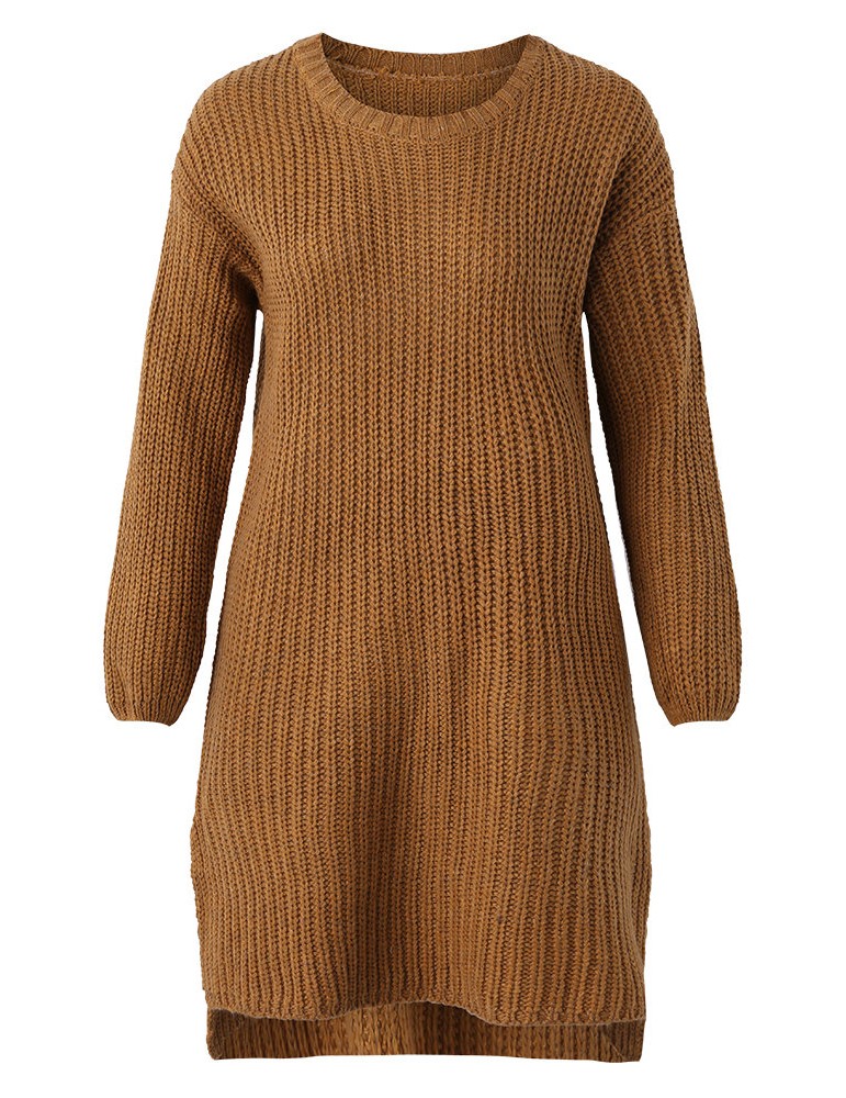 Casual Solid Color Irregular Splited Long Sleeve O-neck Women Sweaters